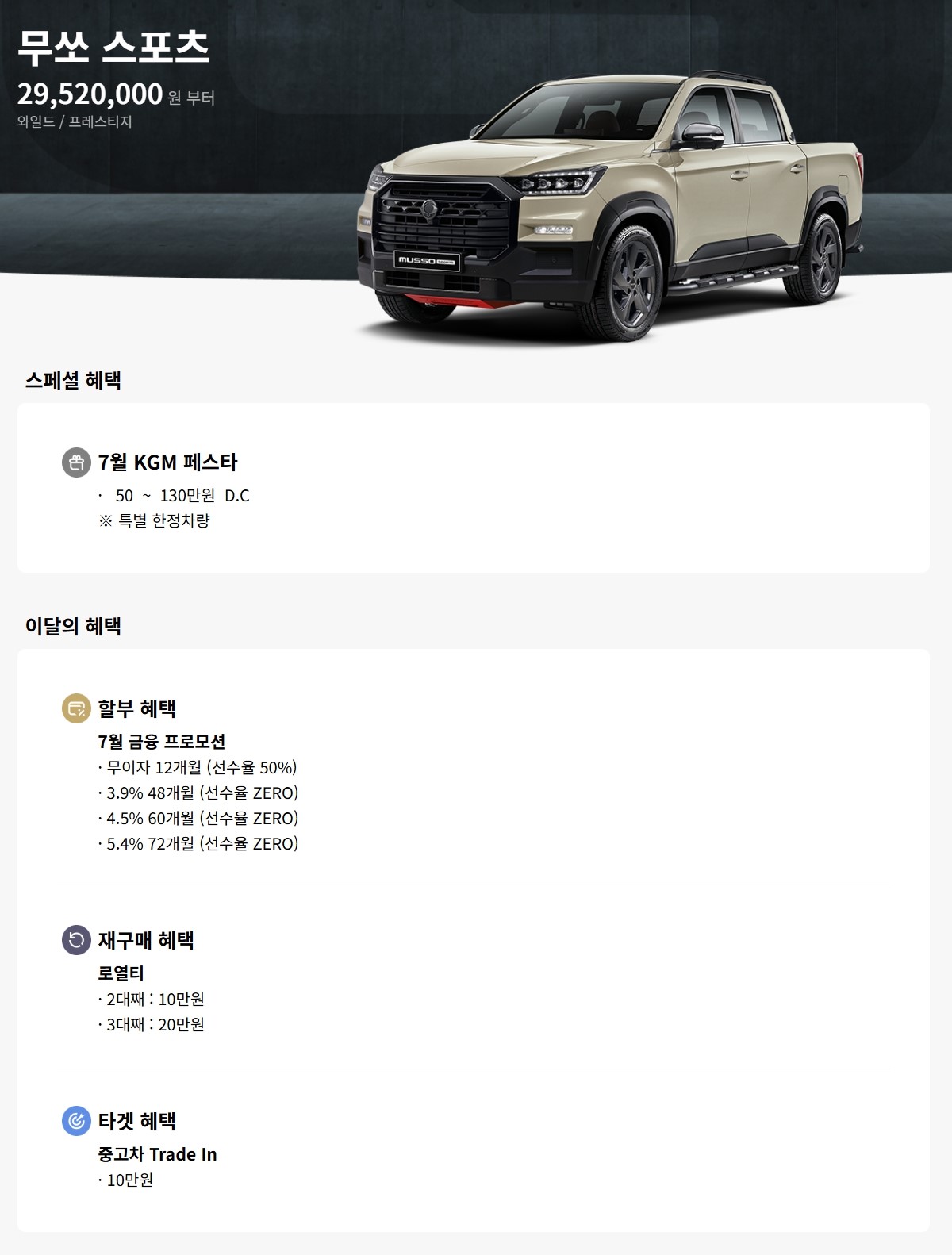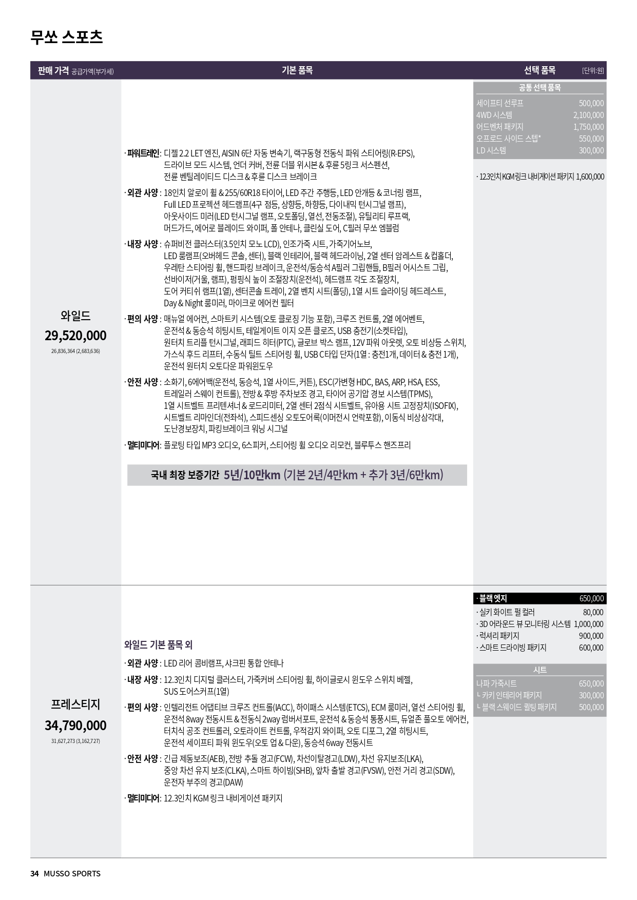 무쏘 스포츠 할인 및 가격표