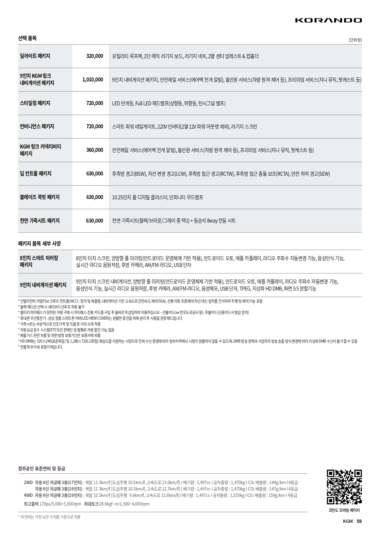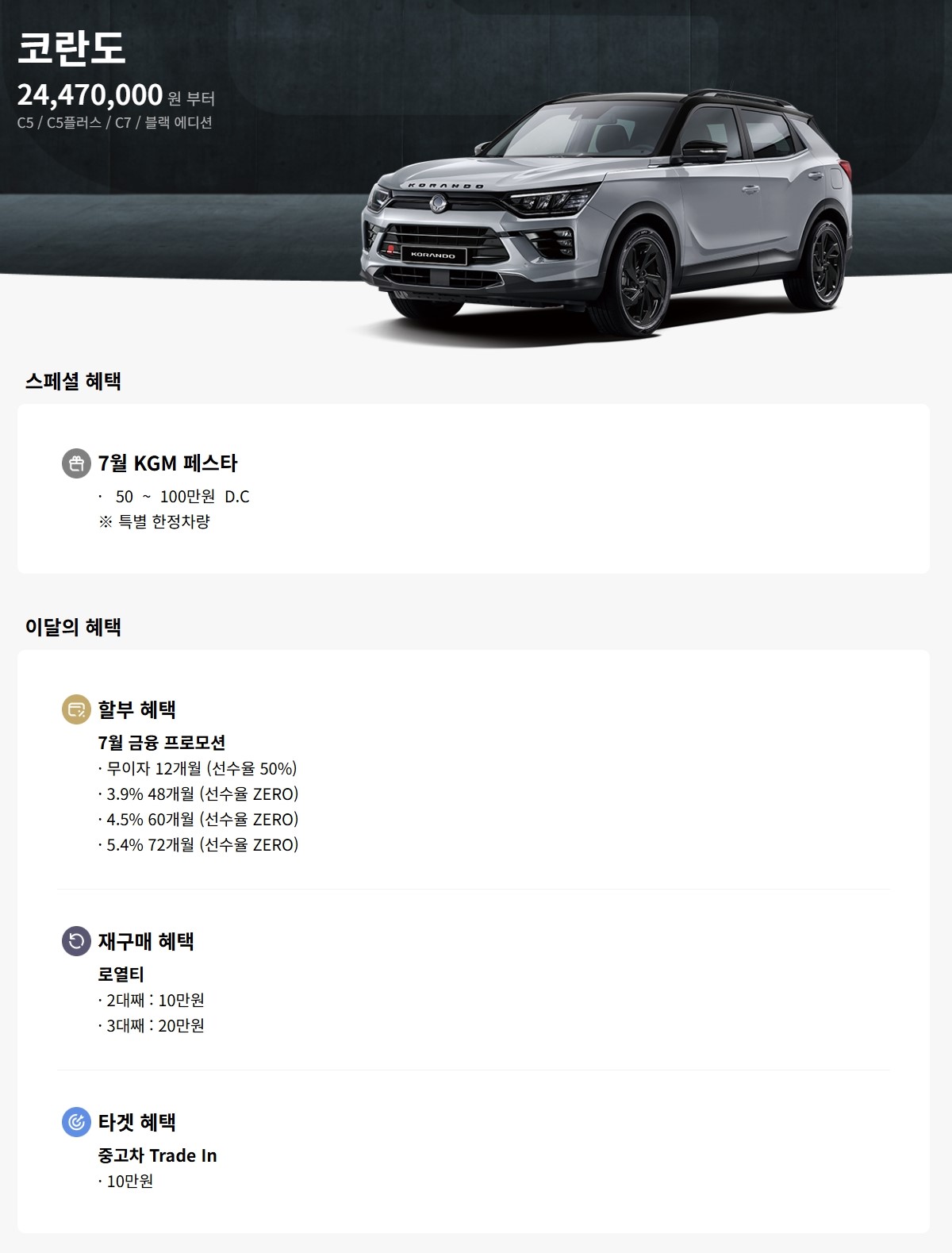 코란도 할인 및 가격표