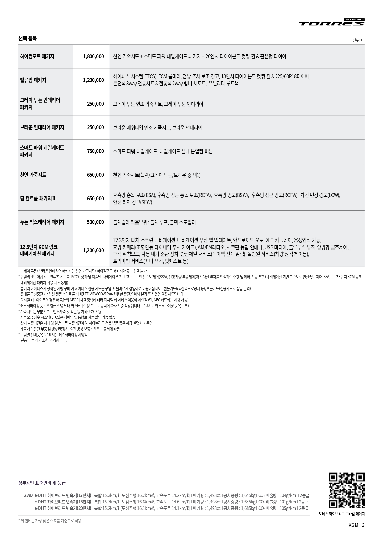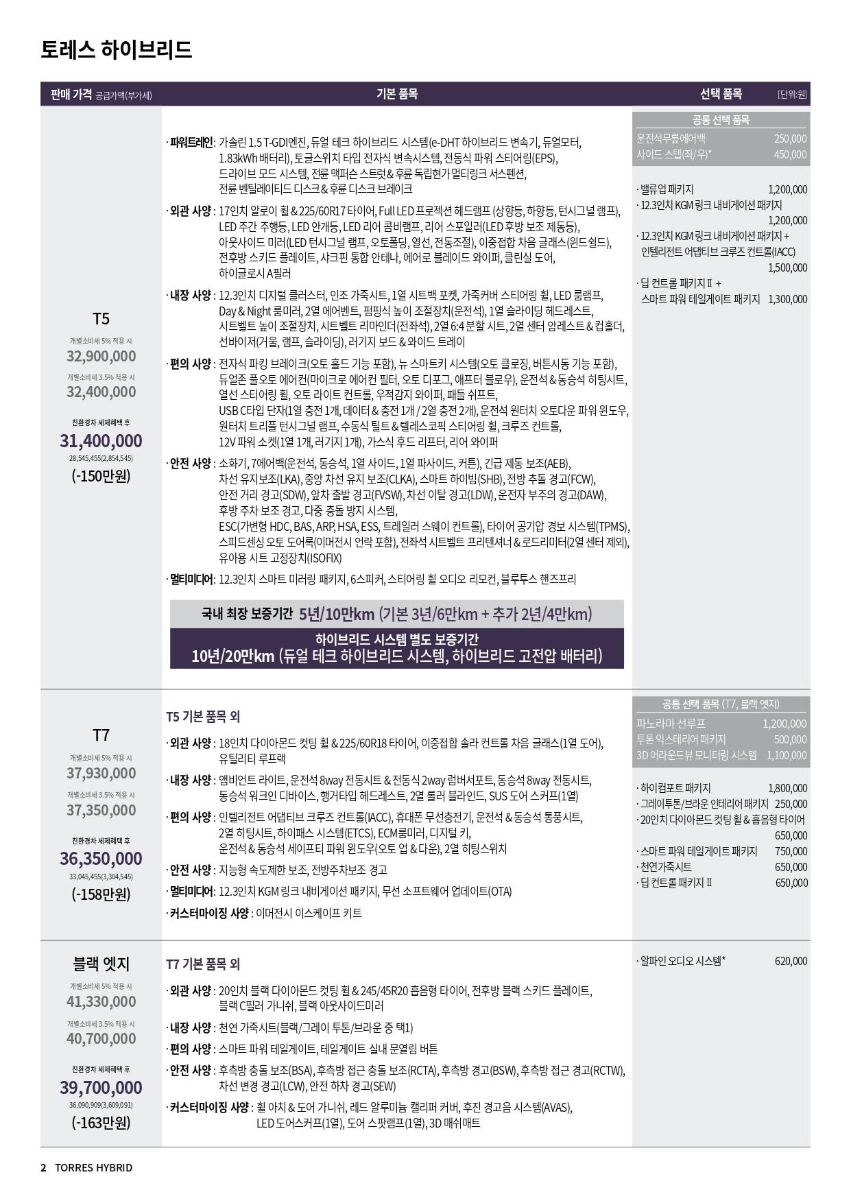 토레스 하이브리드 할인 및 가격표