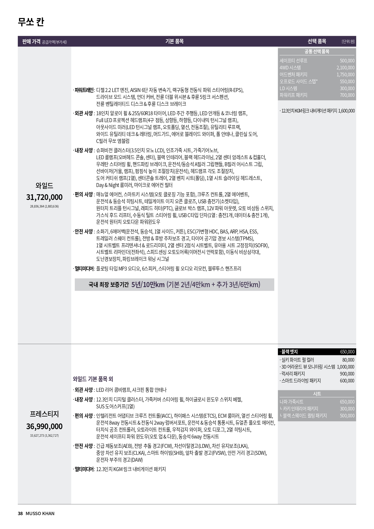 무쏘 칸 할인 및 가격표
