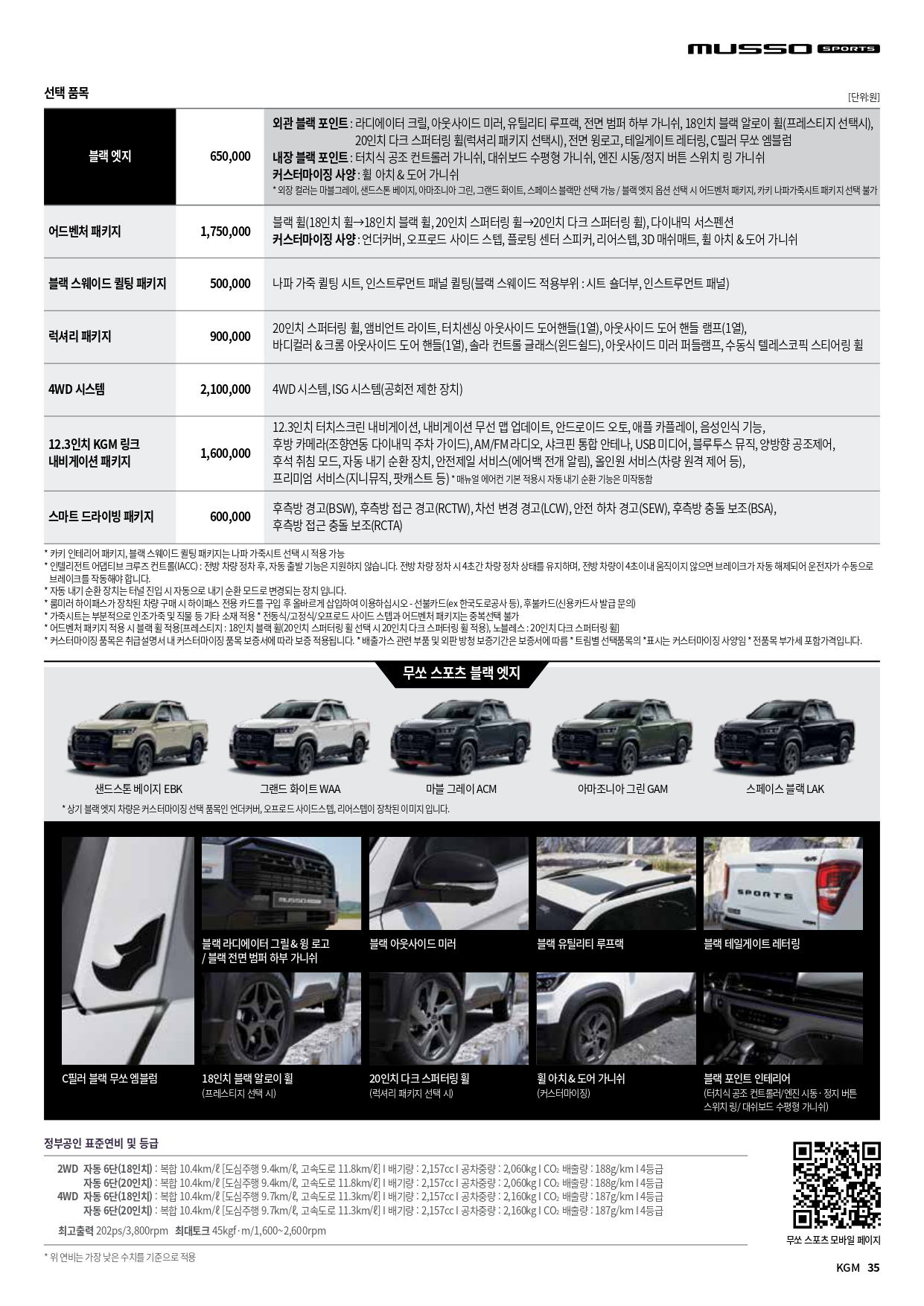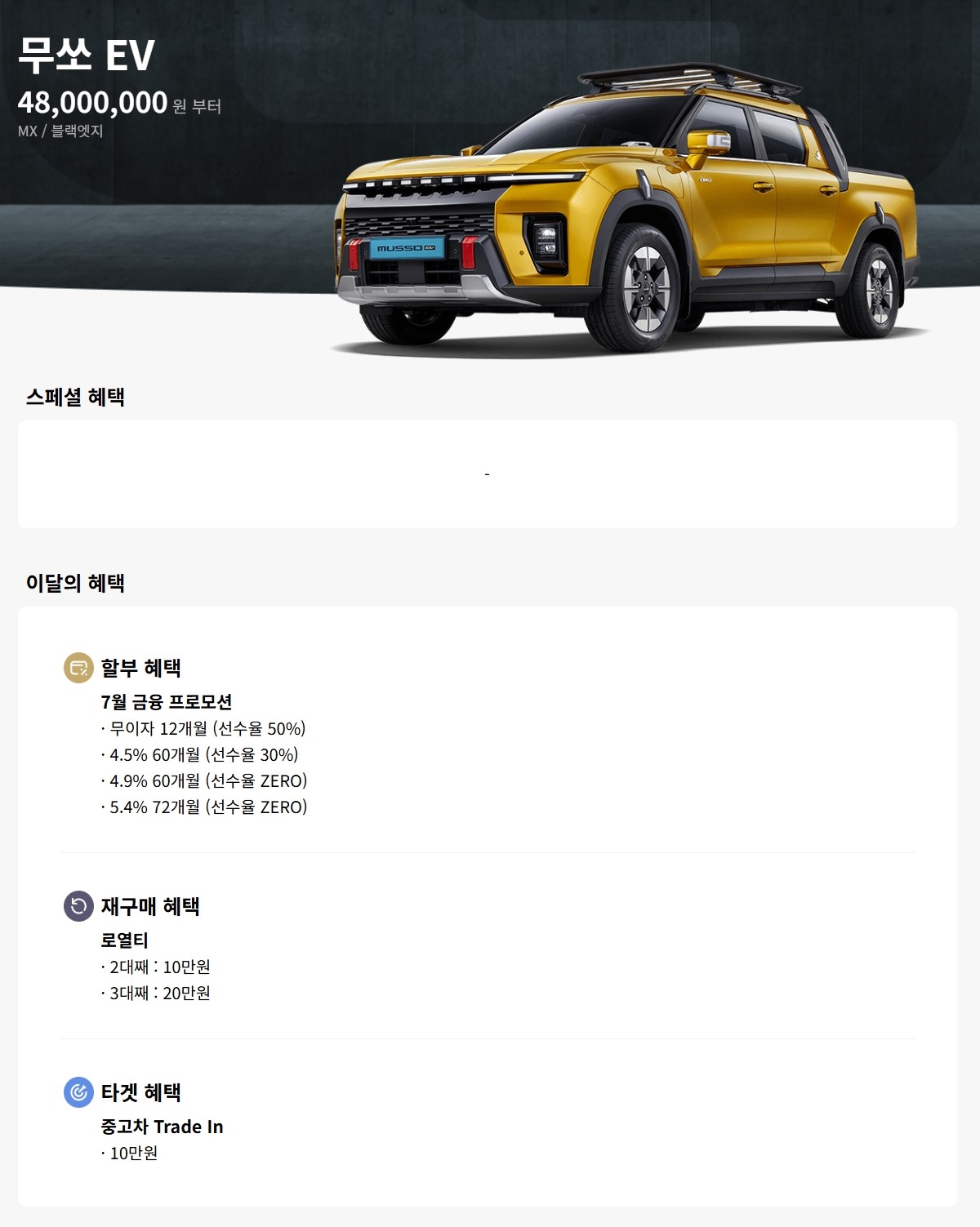 무쏘 EV 할인 및 가격표