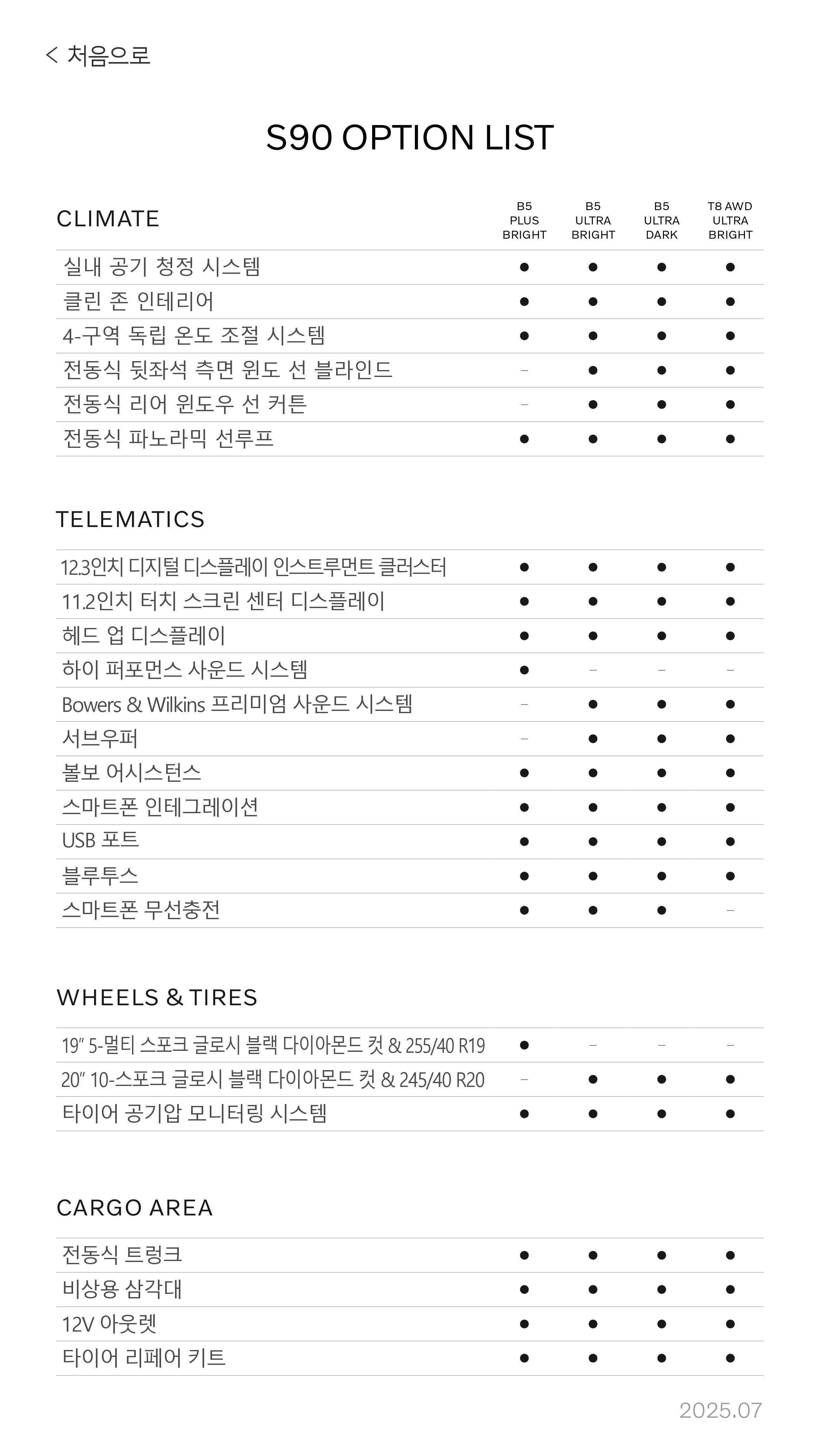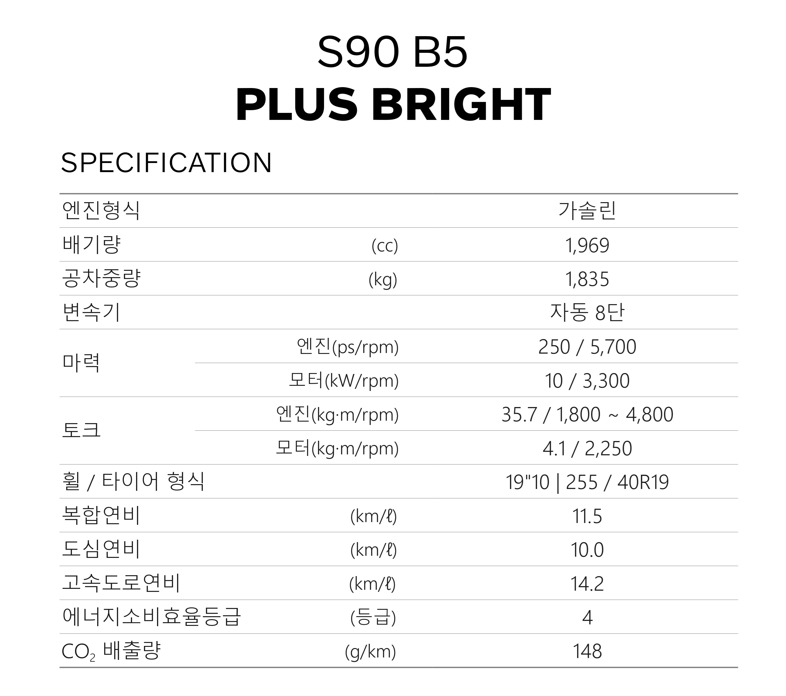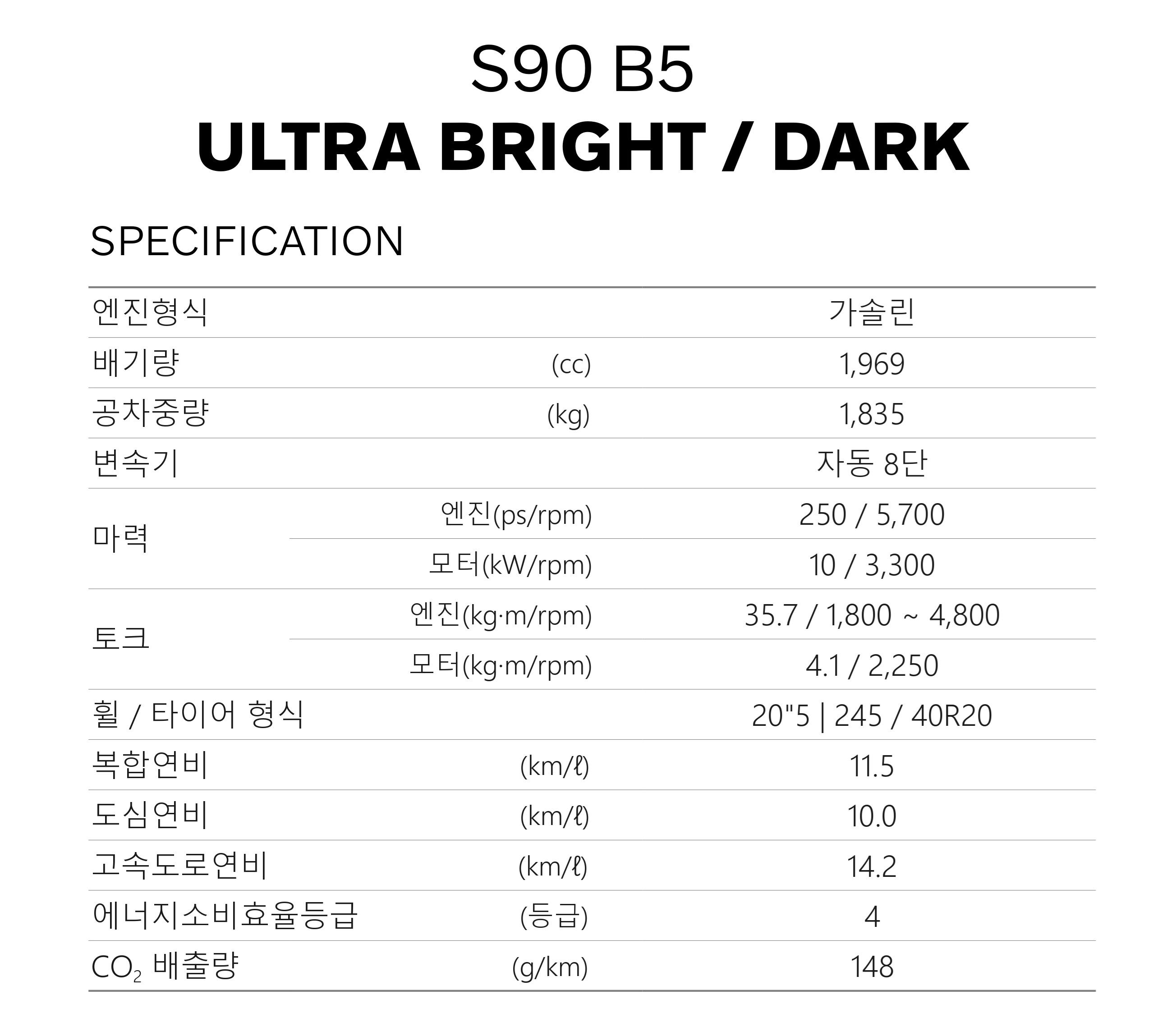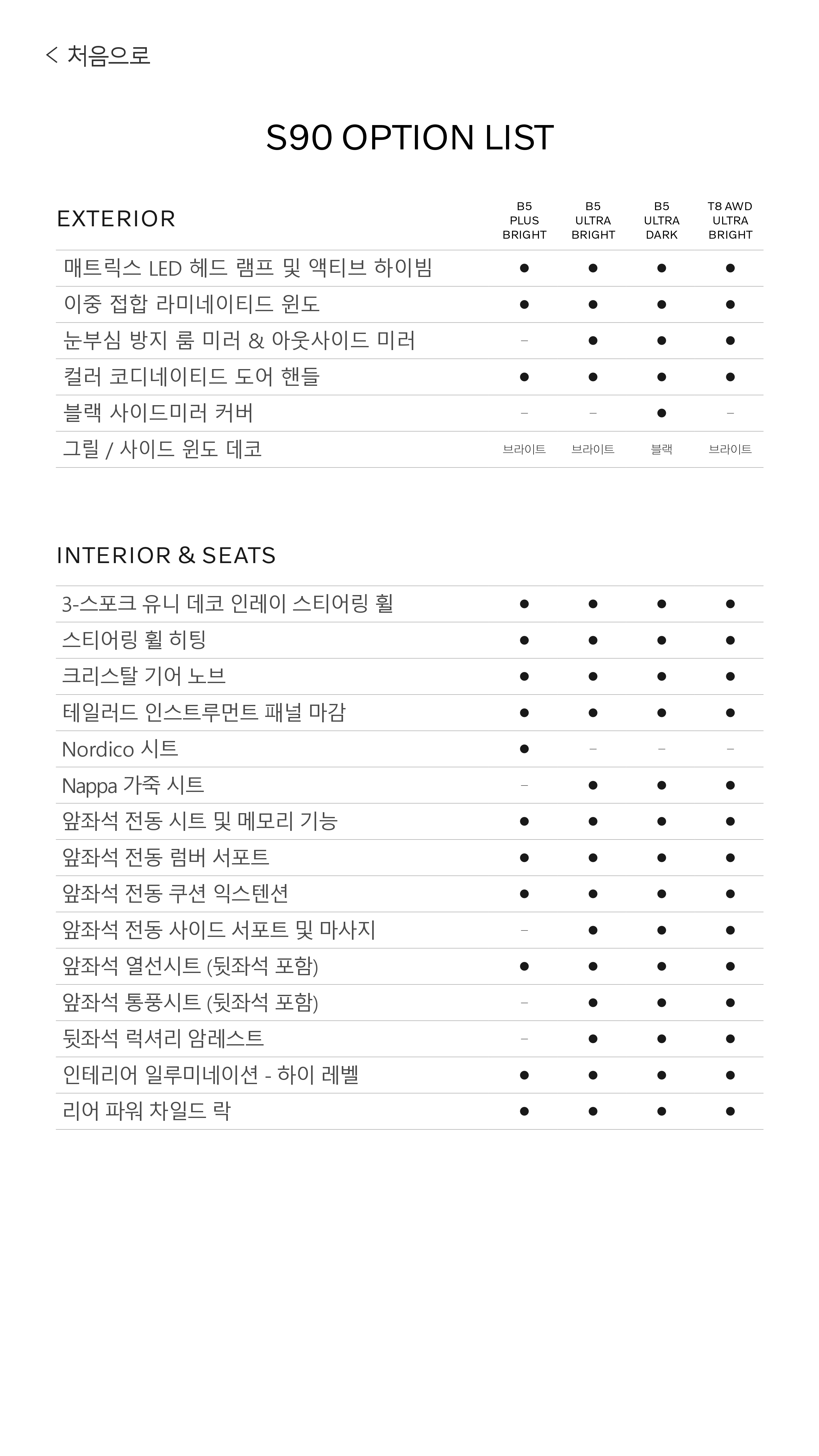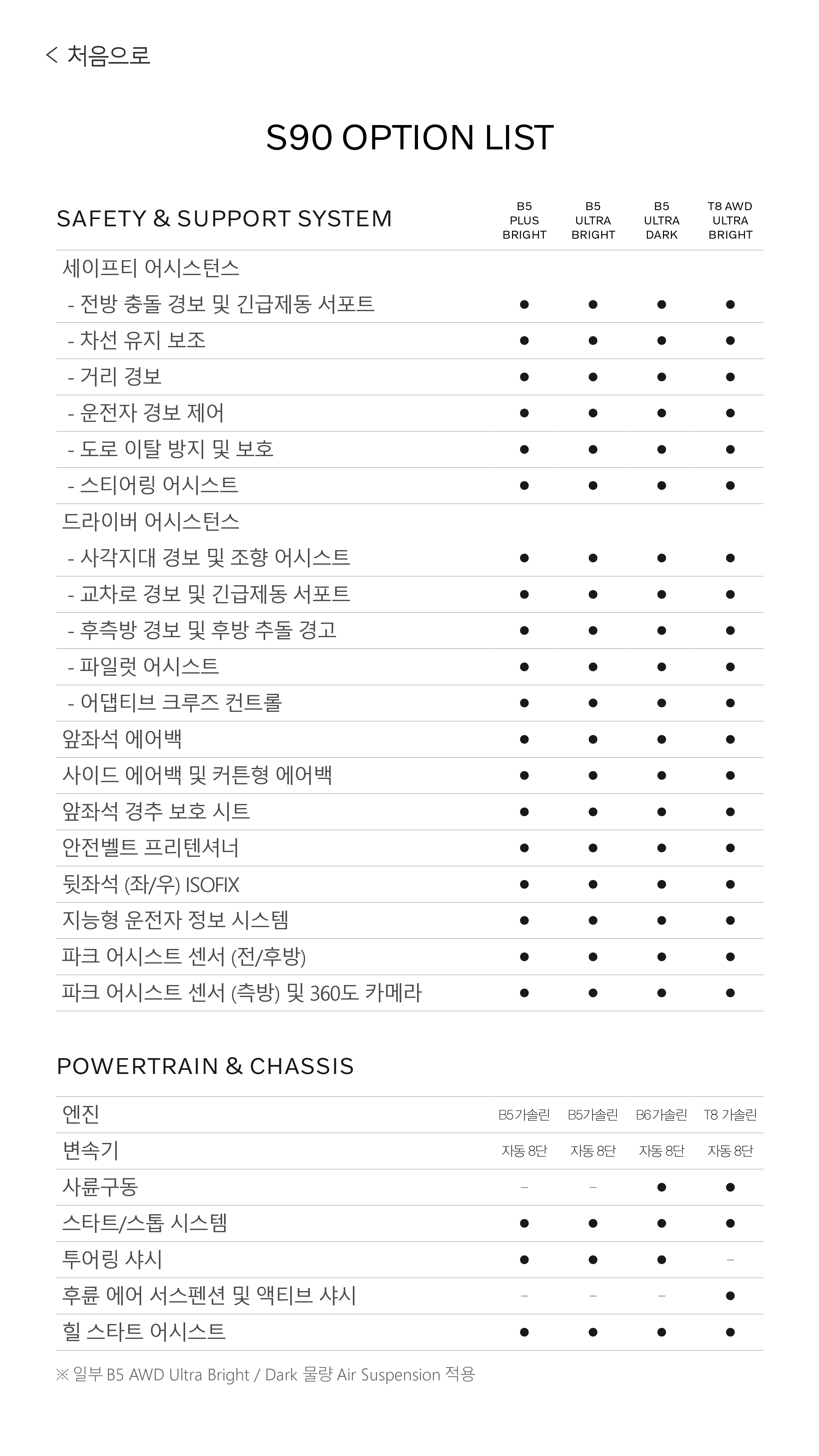 미리 알려드리면, S90 B5 플러스와 B5 울트라가 옵션 차이가 가장 많이 납니다.