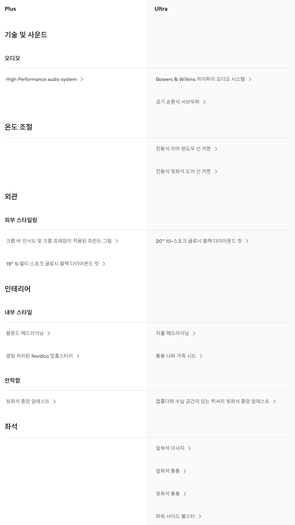 두 트림 사이의 가격 차이는 600만원인데, 이 정도 옵션 차이면 울트라로 가시는 게 맞는 것 같습니다.