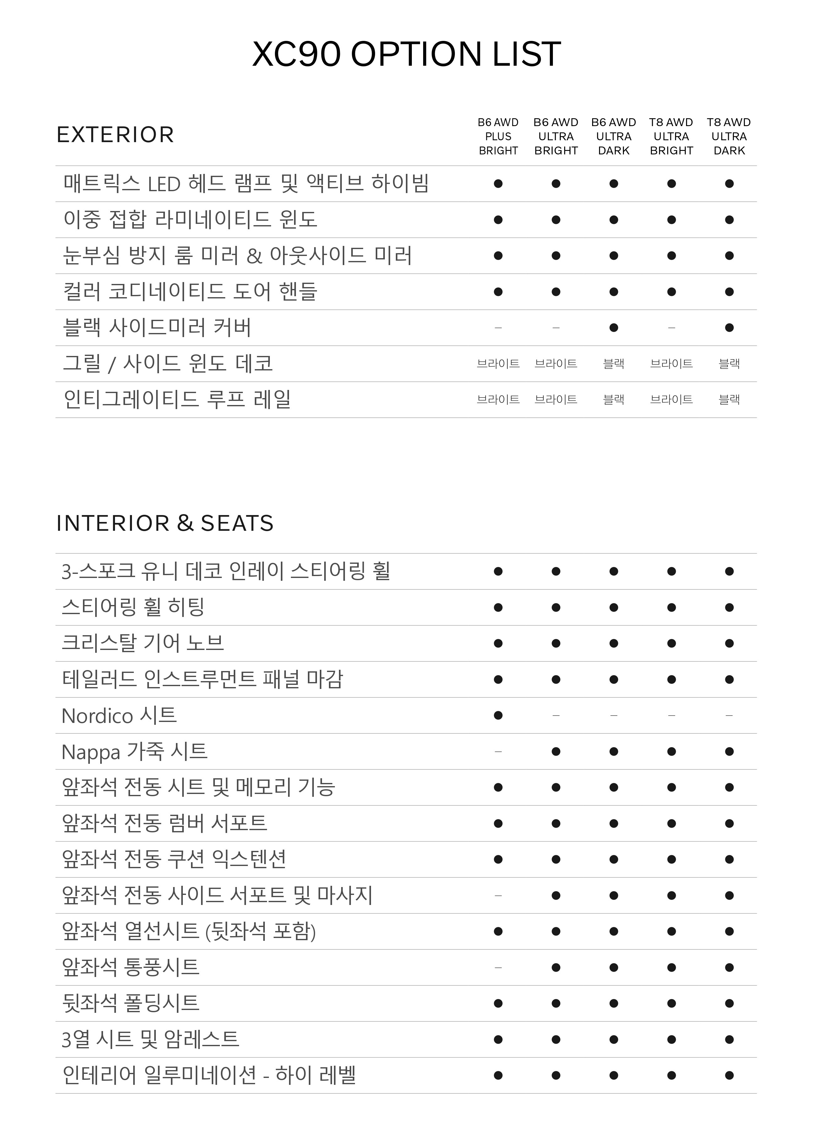 가장 많이들 궁금해하시는 XC90 플러스 vs 울트라 옵션 차이만 모아보았습니다.