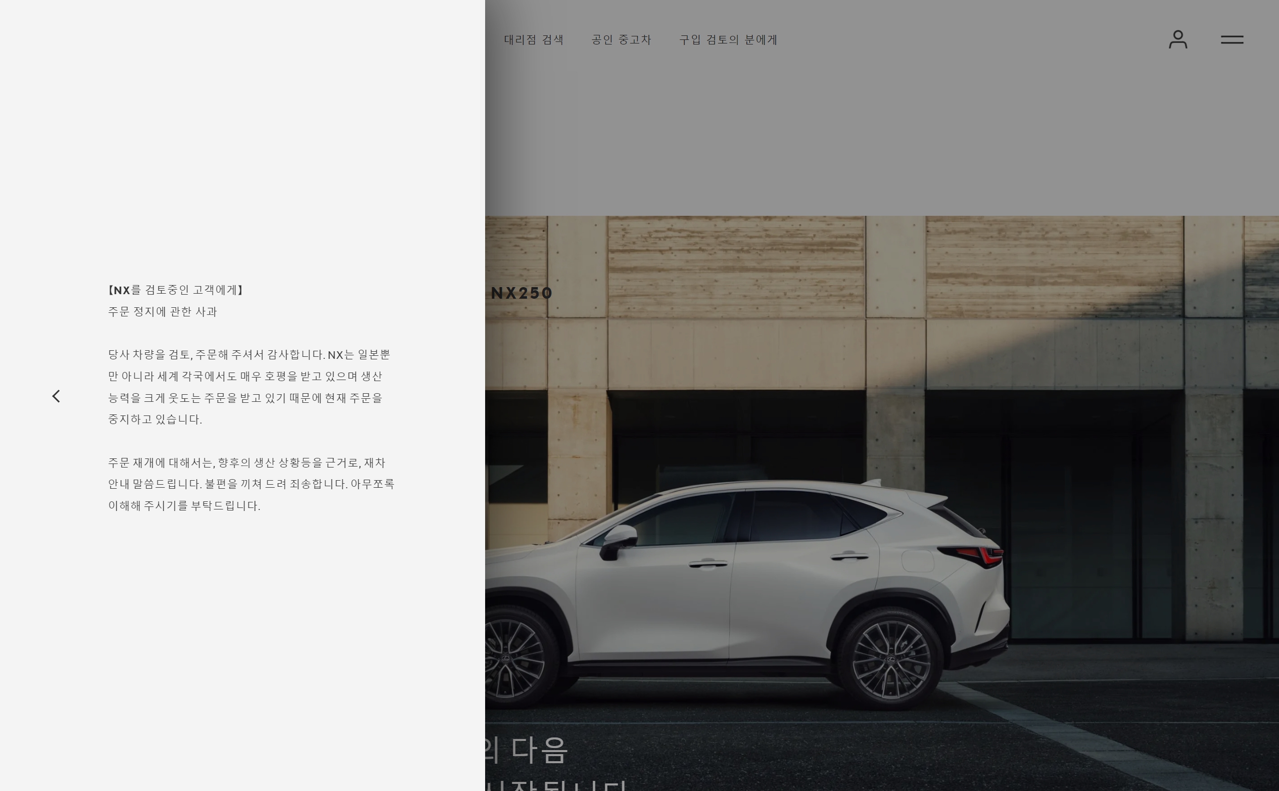 이제는 렉서스 NX와 LX는 주문조차 받지 않는 상황이며, 언제 주문이 재개될지도 모르는 상황입니다.