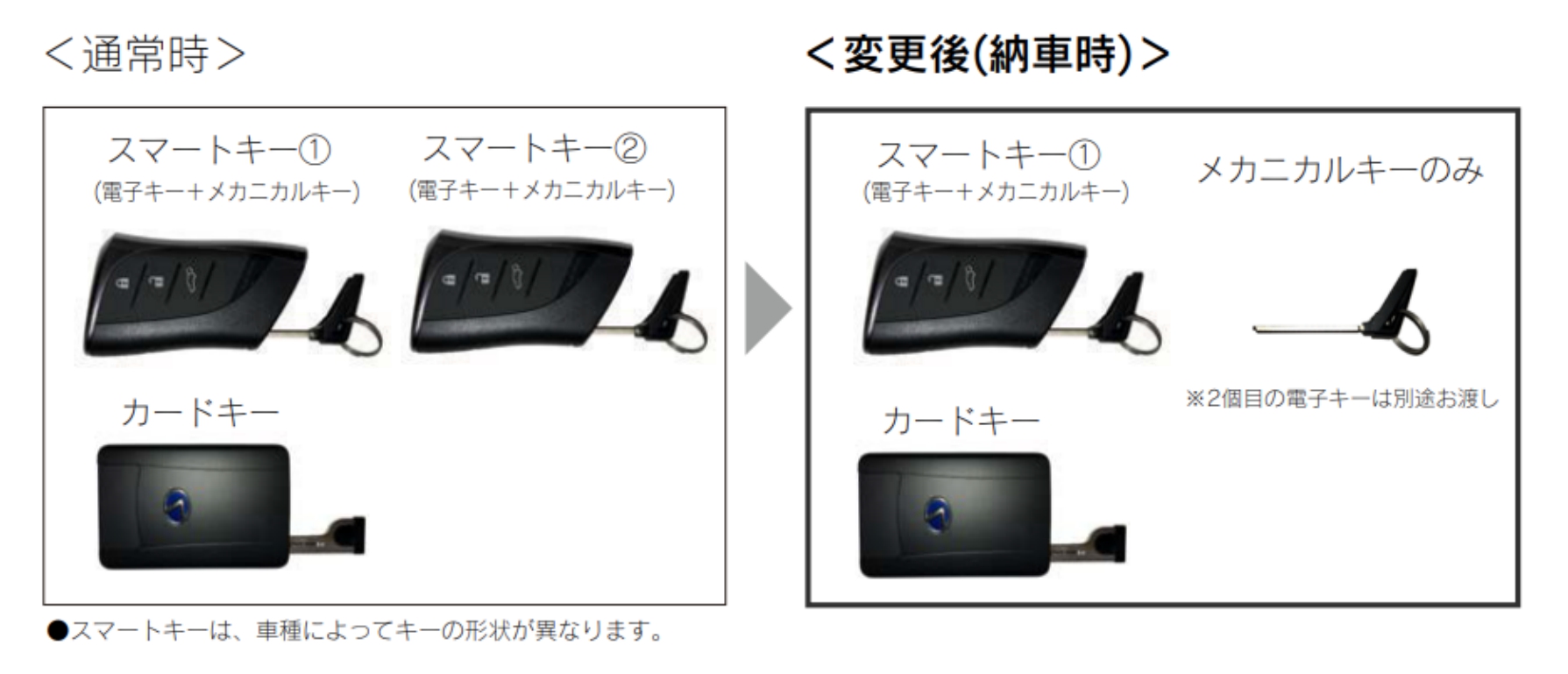 작년의 경우, UX, LS, ES, IS, LC, RC F 등의 차종은 스마트키가 1개만 제공이 되었으며, 올해 1월은 LX, RX, NX가 여전히 스마트키가 1개인 상태로 출고됩니다.