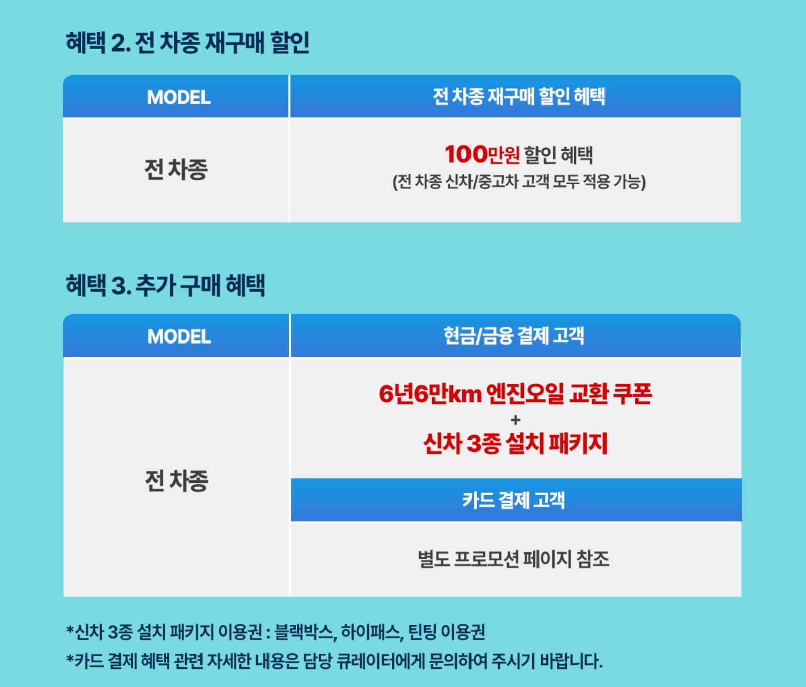 아래는 차종별 프로모션이 아닌, 공통적으로 구매되는 할인입니다.