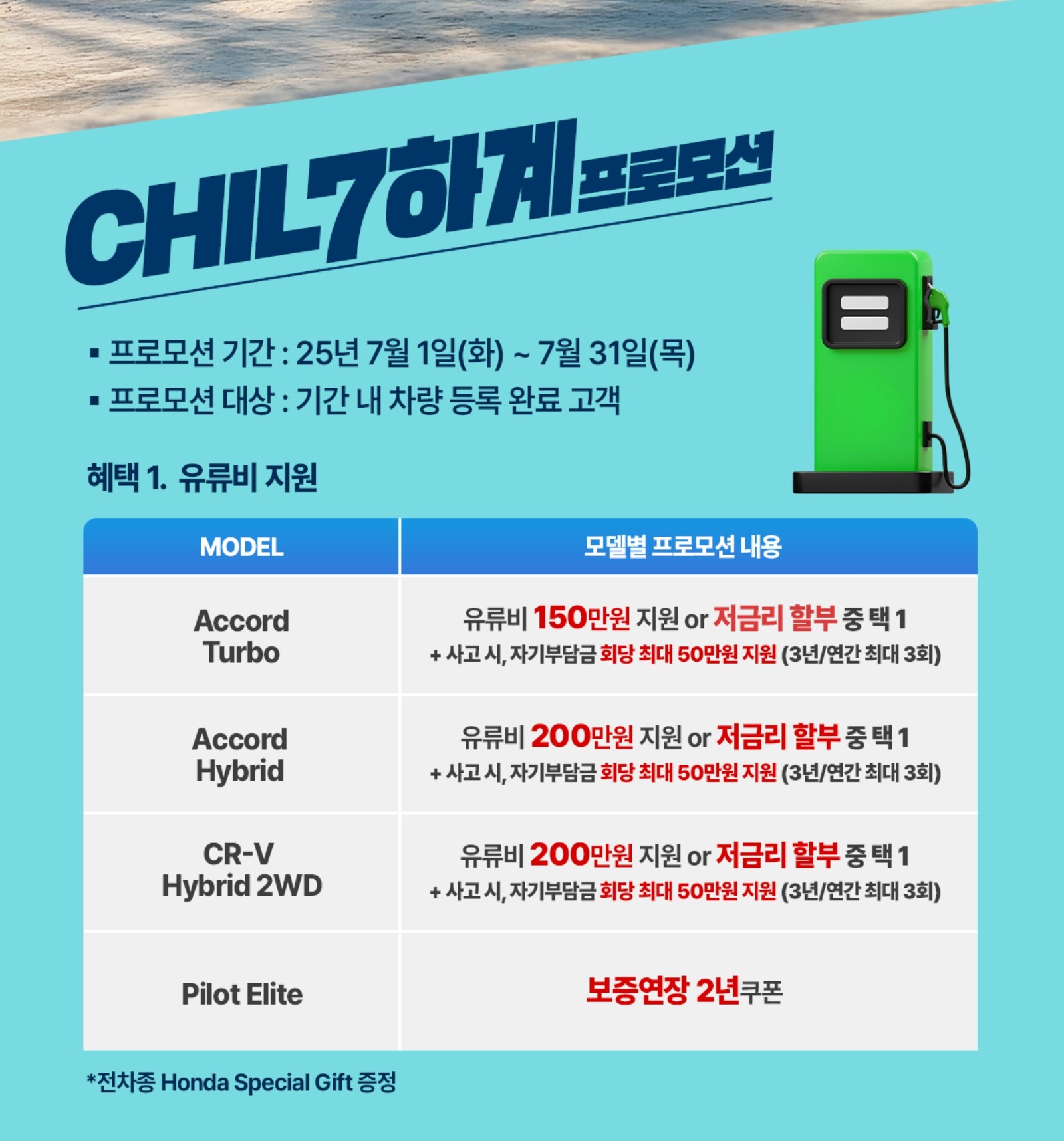 아래는 2025년 7월 혼다 전차종 프로모션을 정리한 홍보 자료입니다.