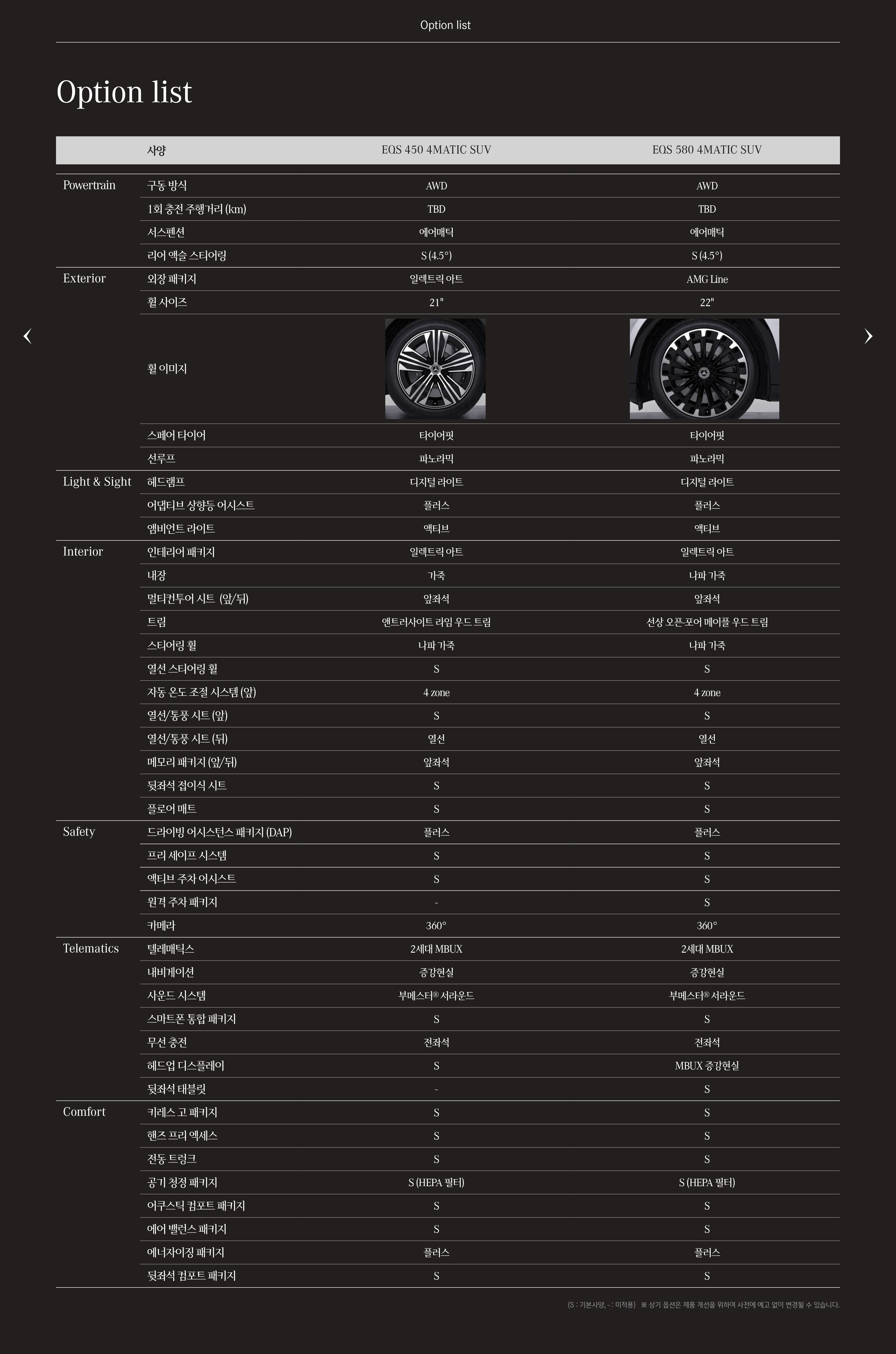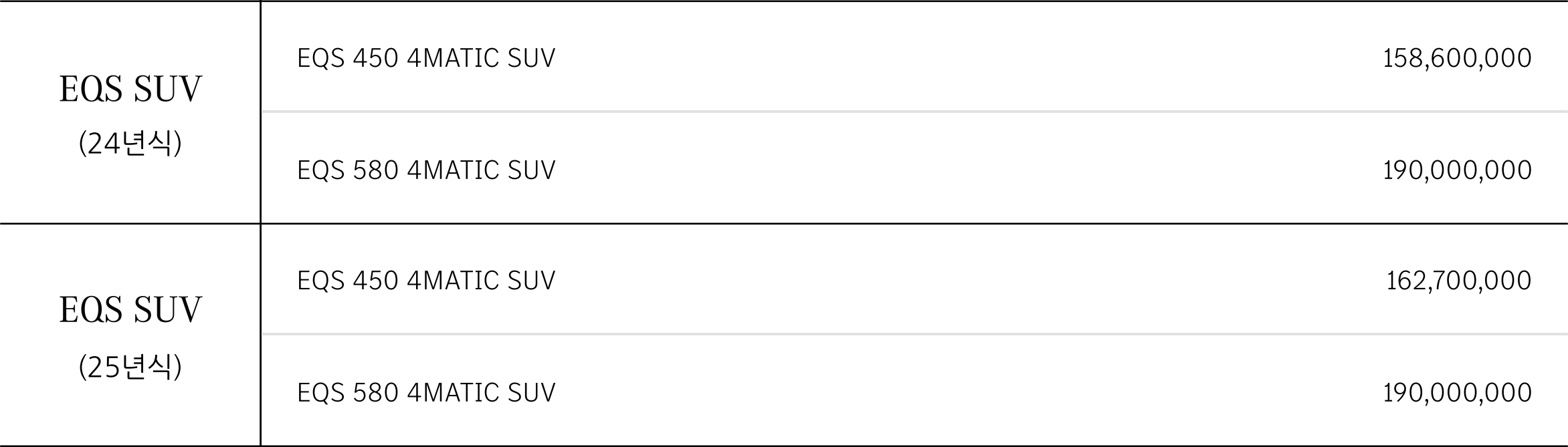 24년식 대비, EQS 450은 인상이 되었고, EQS 580은 동결이 된 것이 보이네요!