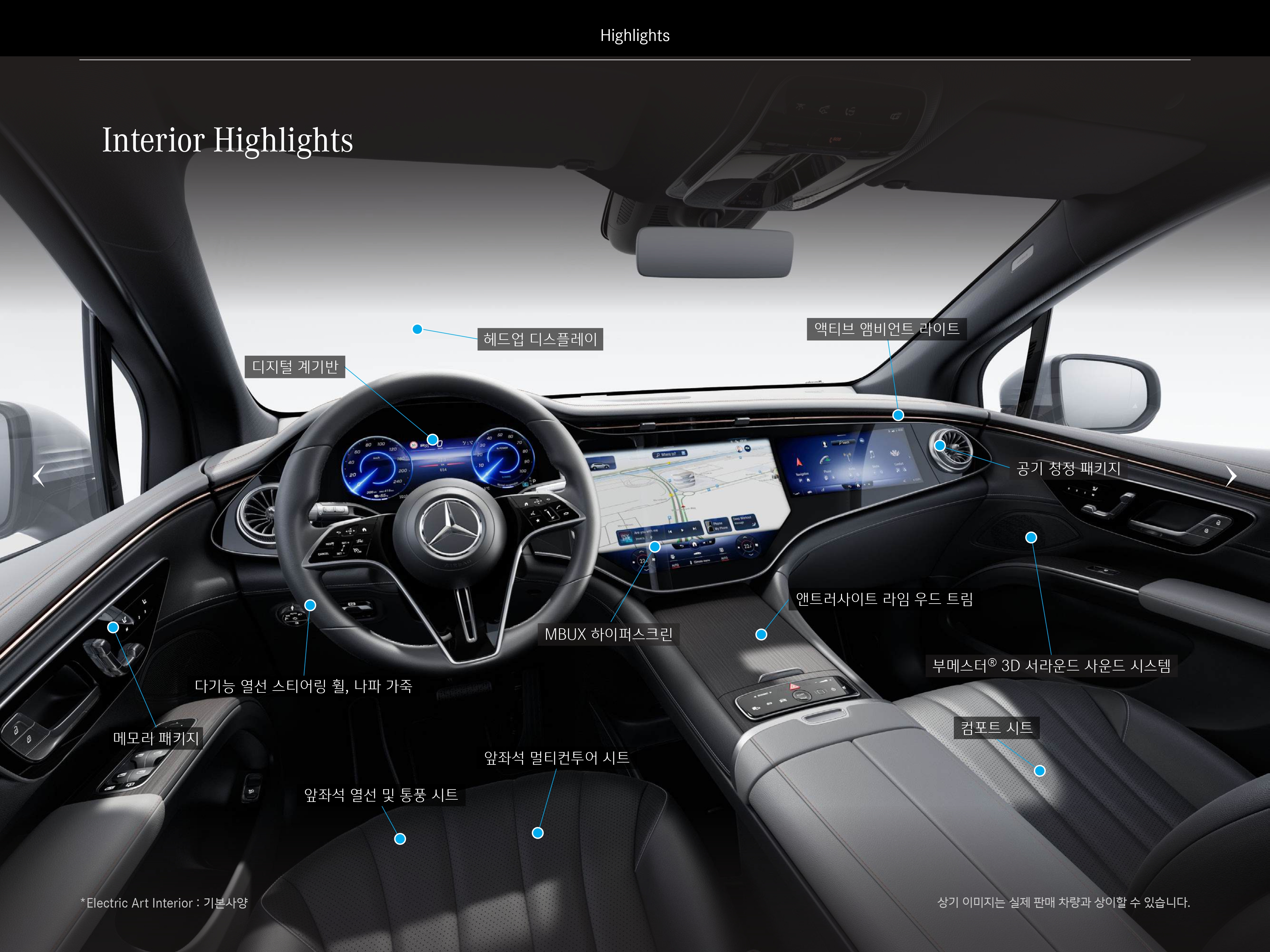보통은 외부 익스테리어 패키지가 AMG가 들어가면, 실내도 들어갈 법 하지만, 실제로는 두 모델 모두 일렉트릭 아트 인테리어 패키지가 적용되어, 상당히 유사한 모습을 보여줍니다.