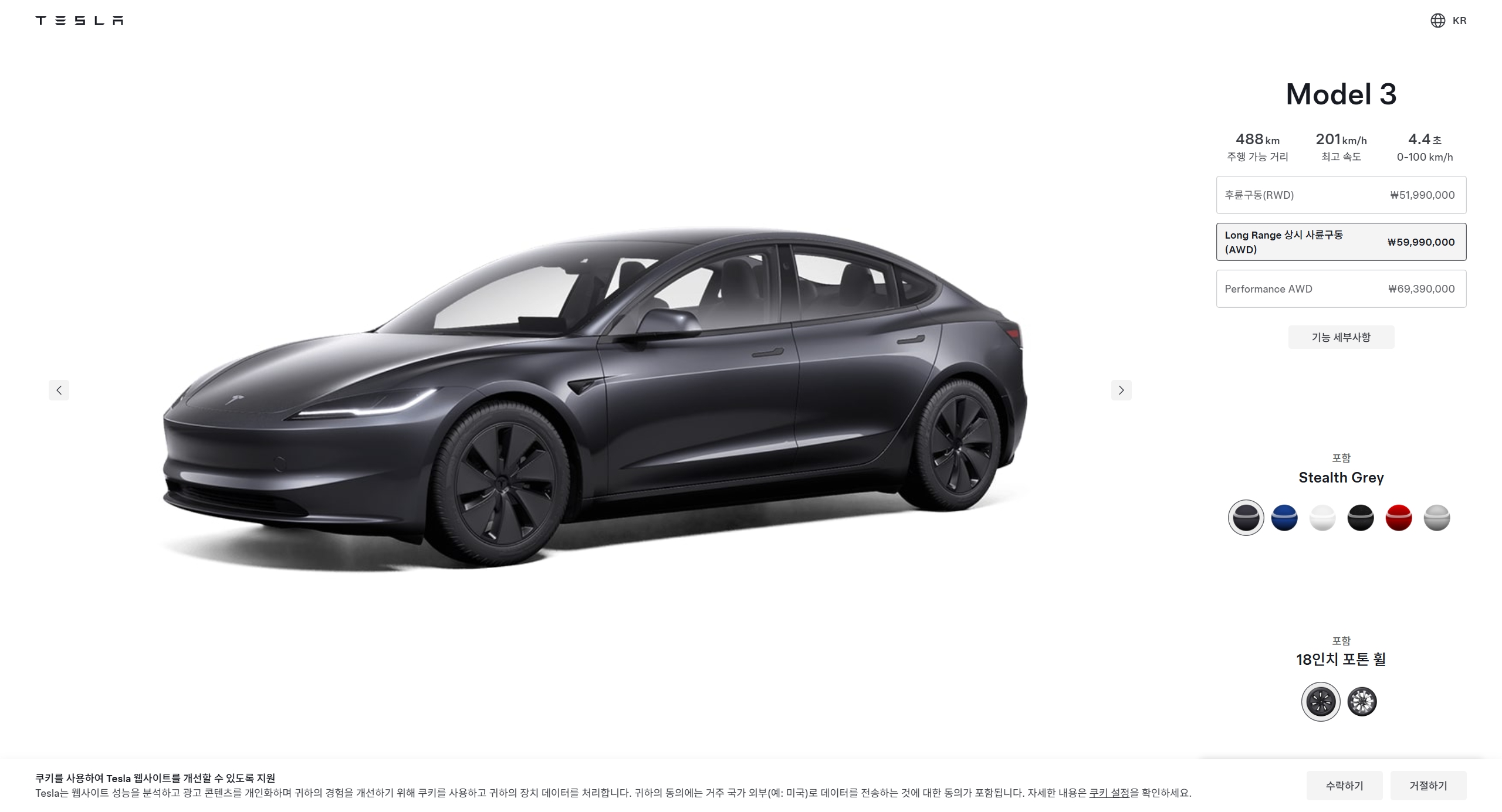 기존에 판매되고 있는 모델 3의 경우, 스탠다드 사양은 후륜 싱글모터 사양이긴 하나, 저용량 배터리를 탑재하여 주행거리가 짧았습니다.