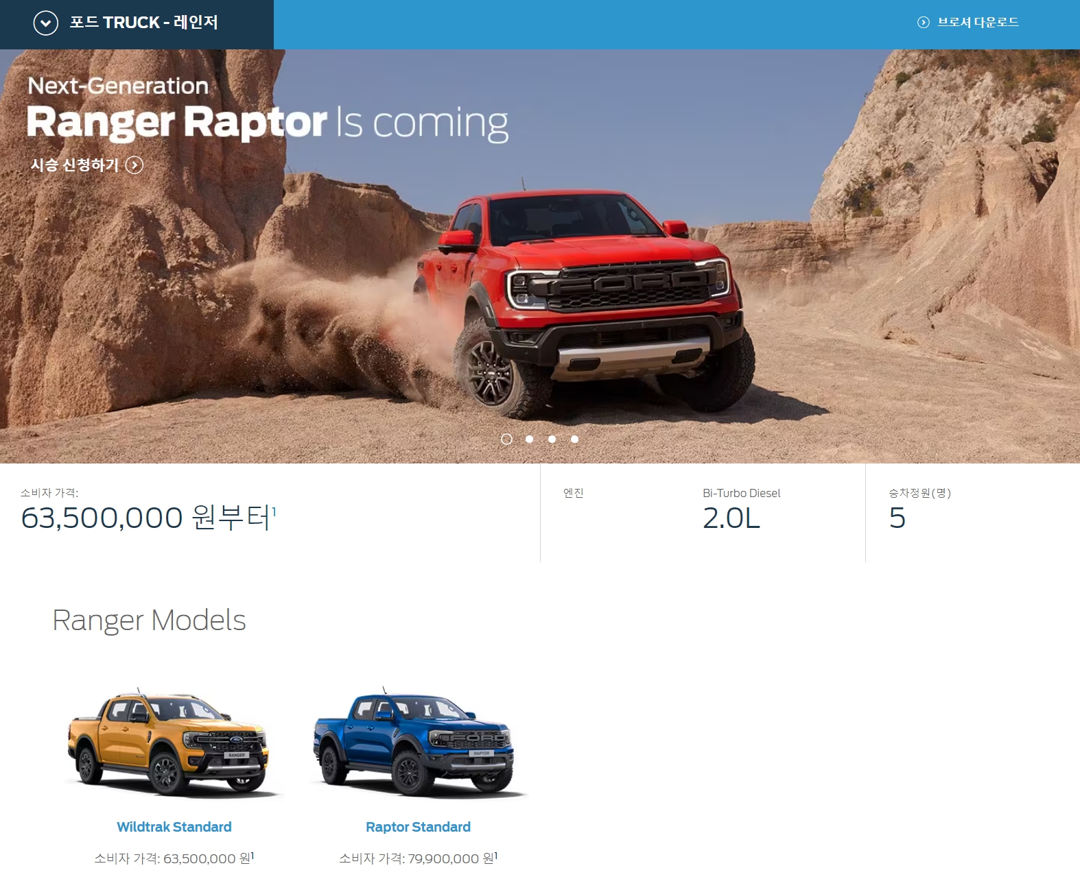 반면, 포드는 와일드 트랙과 랩터 단 두 가지 모델이 전부이며, 랩터는 가격도 상당히 비싼 편입니다.
