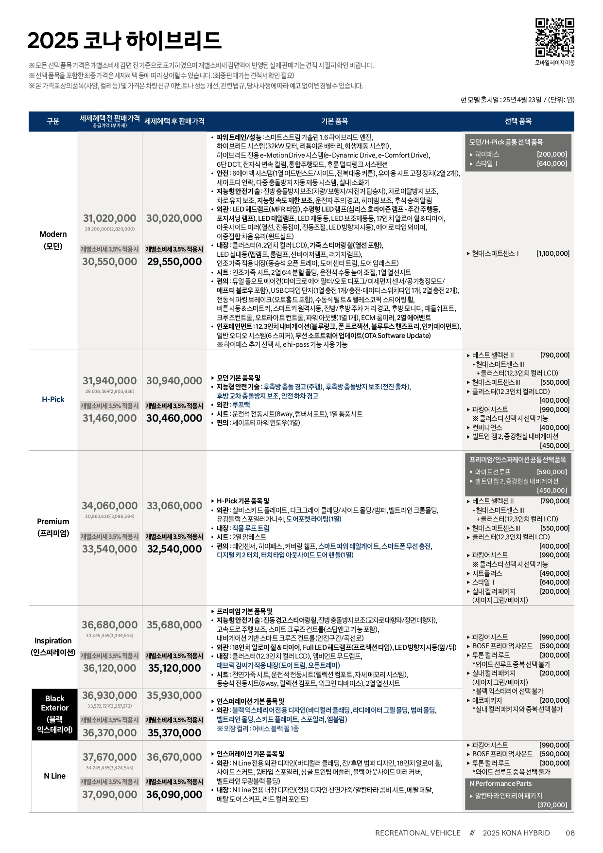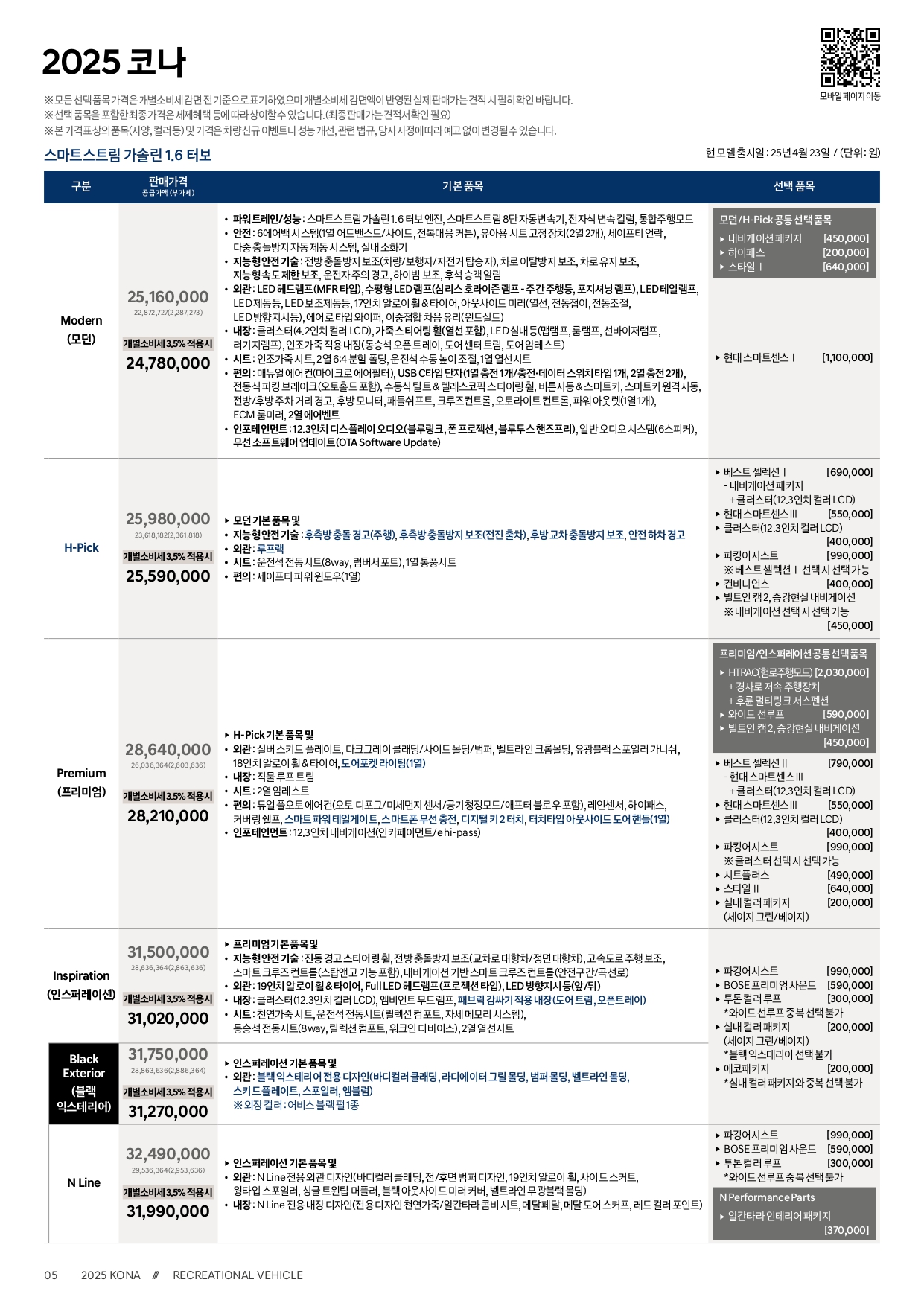 마지막으로 2025 코나 가격표 및 카탈로그 아래에 공유드리며, 오늘 포스팅 마치도록 하겠습니다.