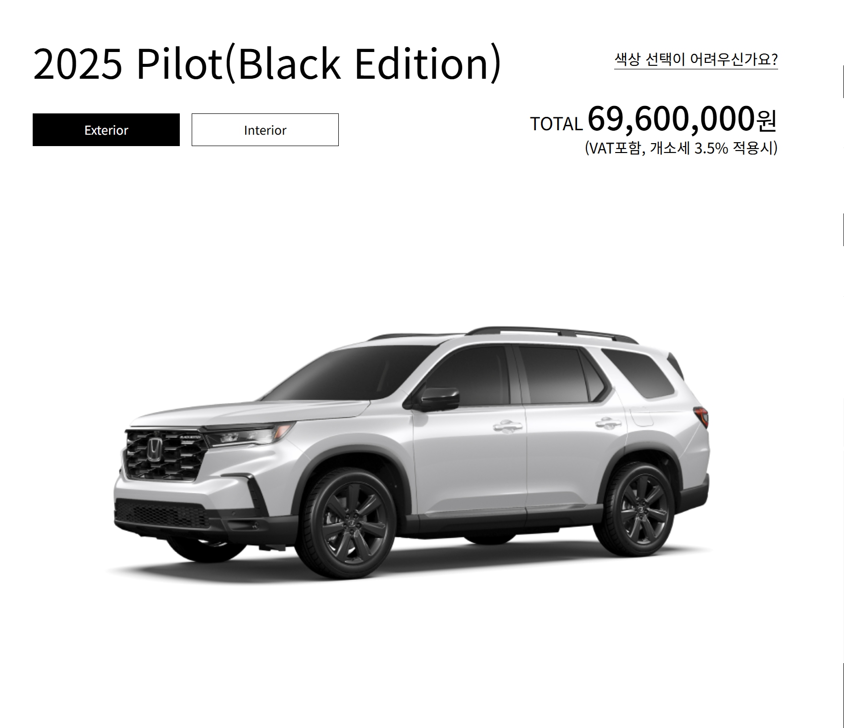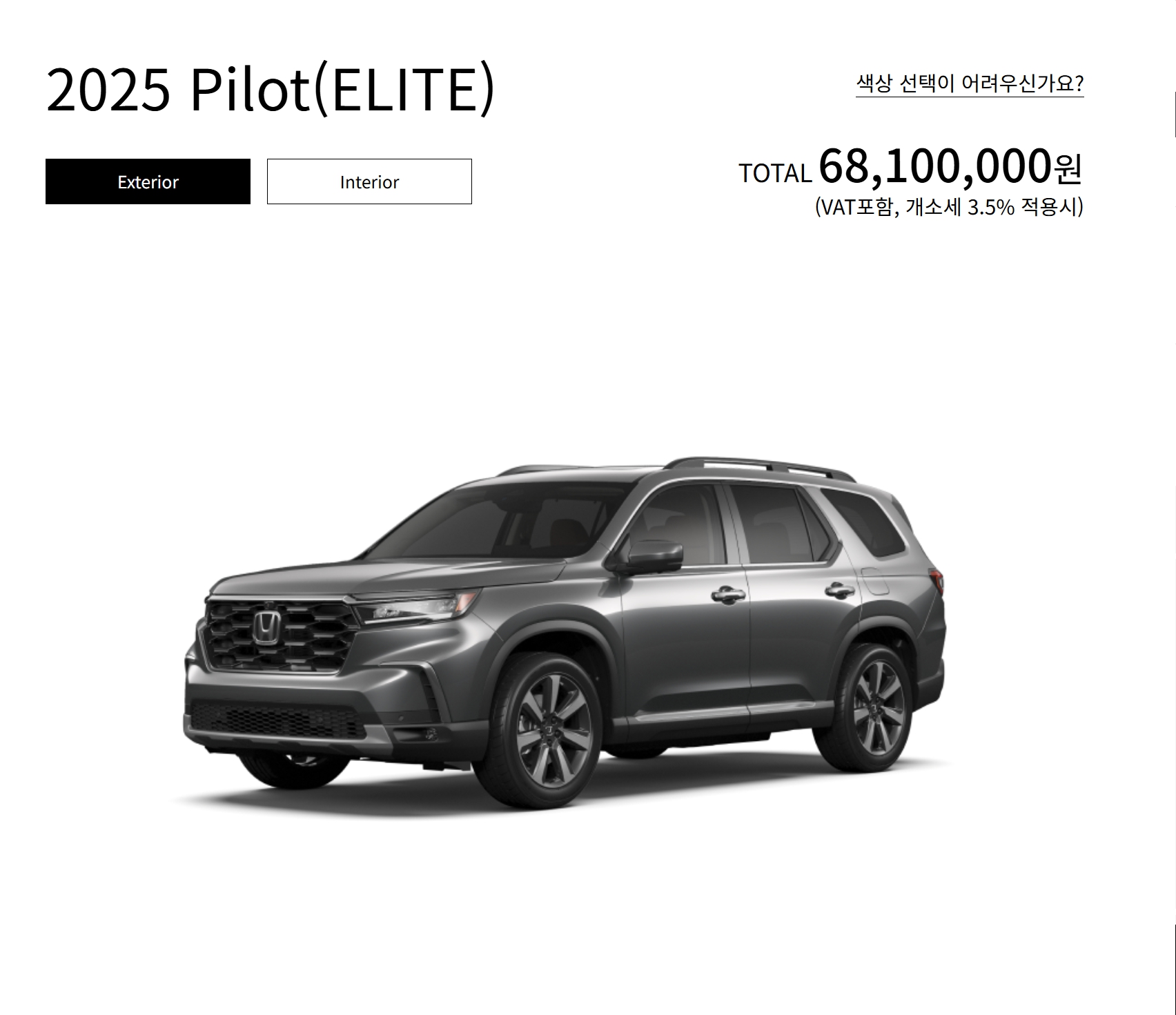 2025 혼다 파일럿 블랙 에디션 가격 : 6,960 만원