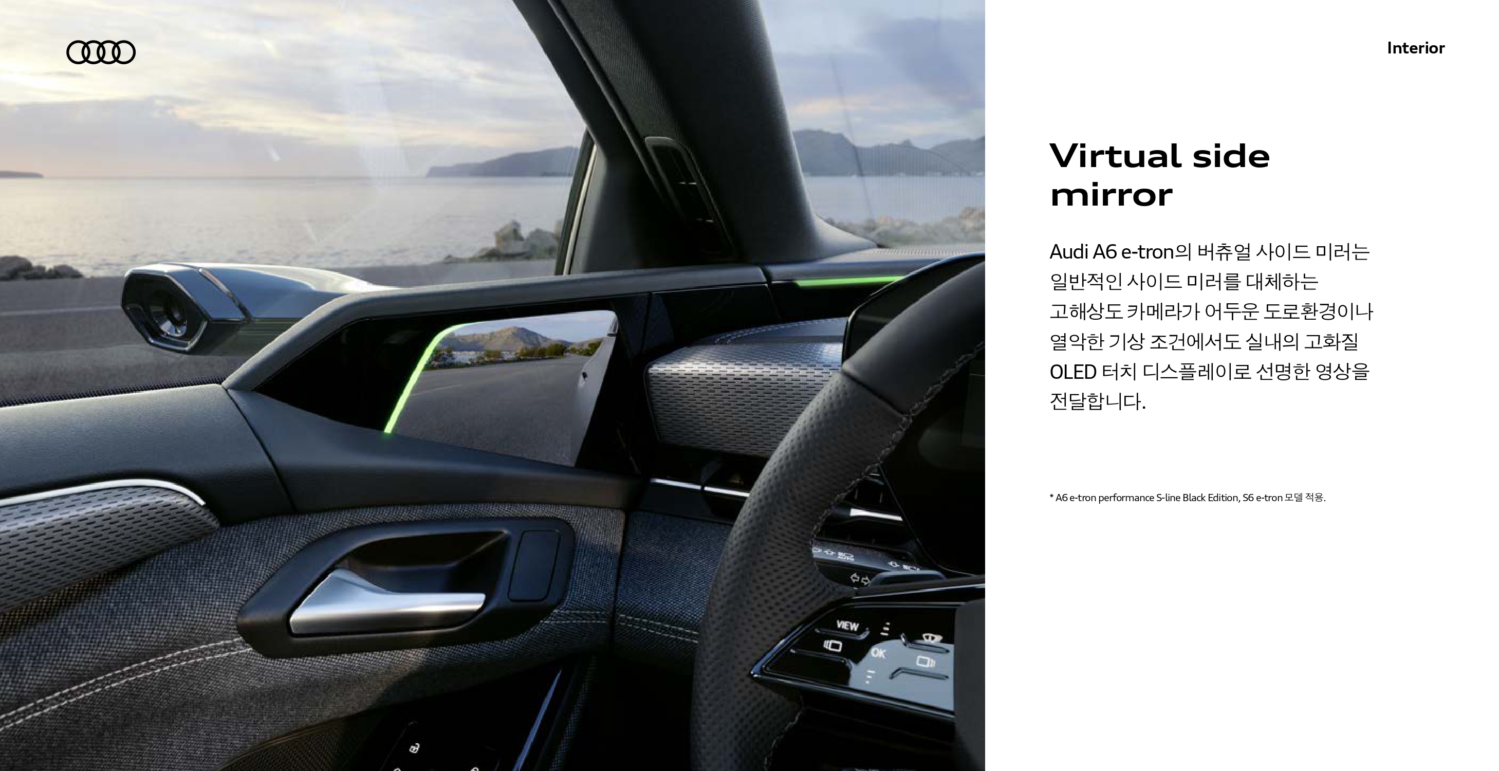 거기에, 버츄얼 사이드 미러가 적용이 되는데, 덕분에 외부에서 보는 익스테리어와 실내에서 보는 인테리어 모두 다른 모습이 됩니다.
