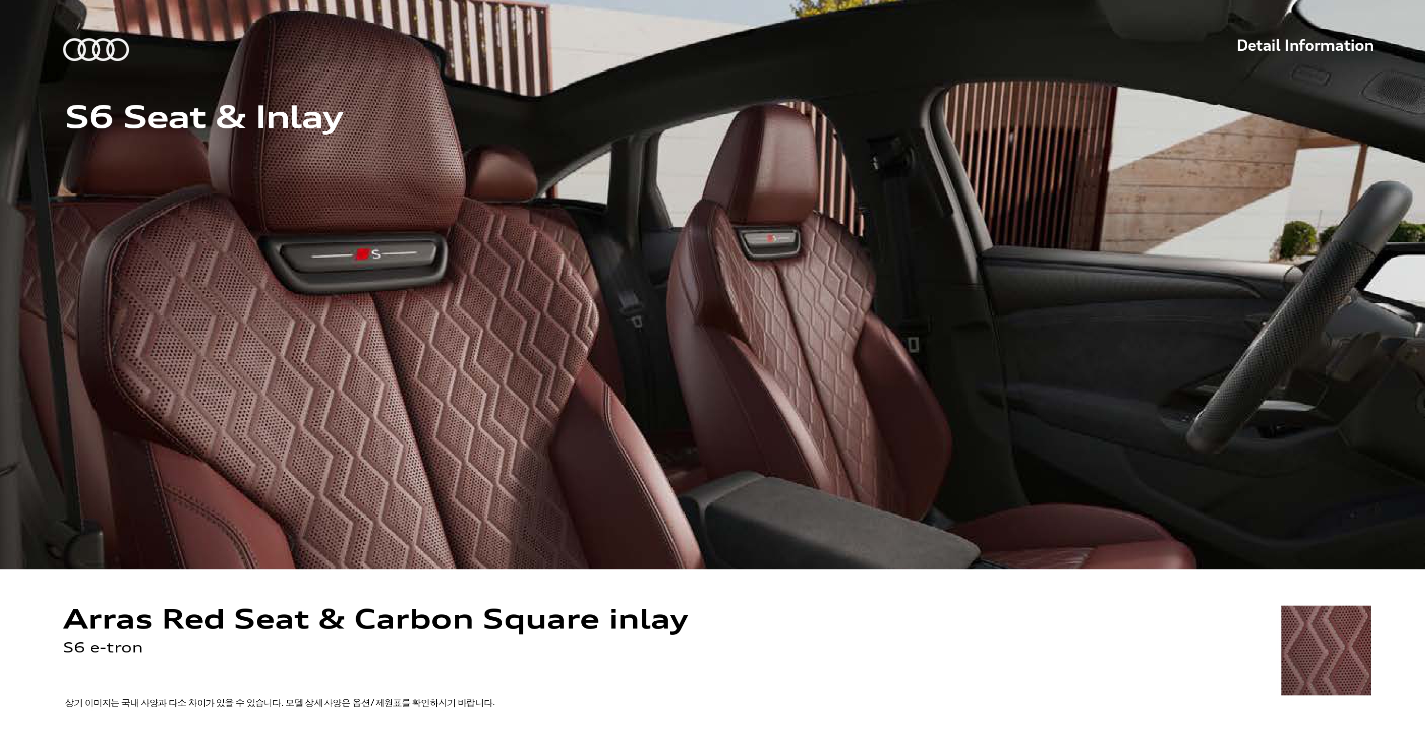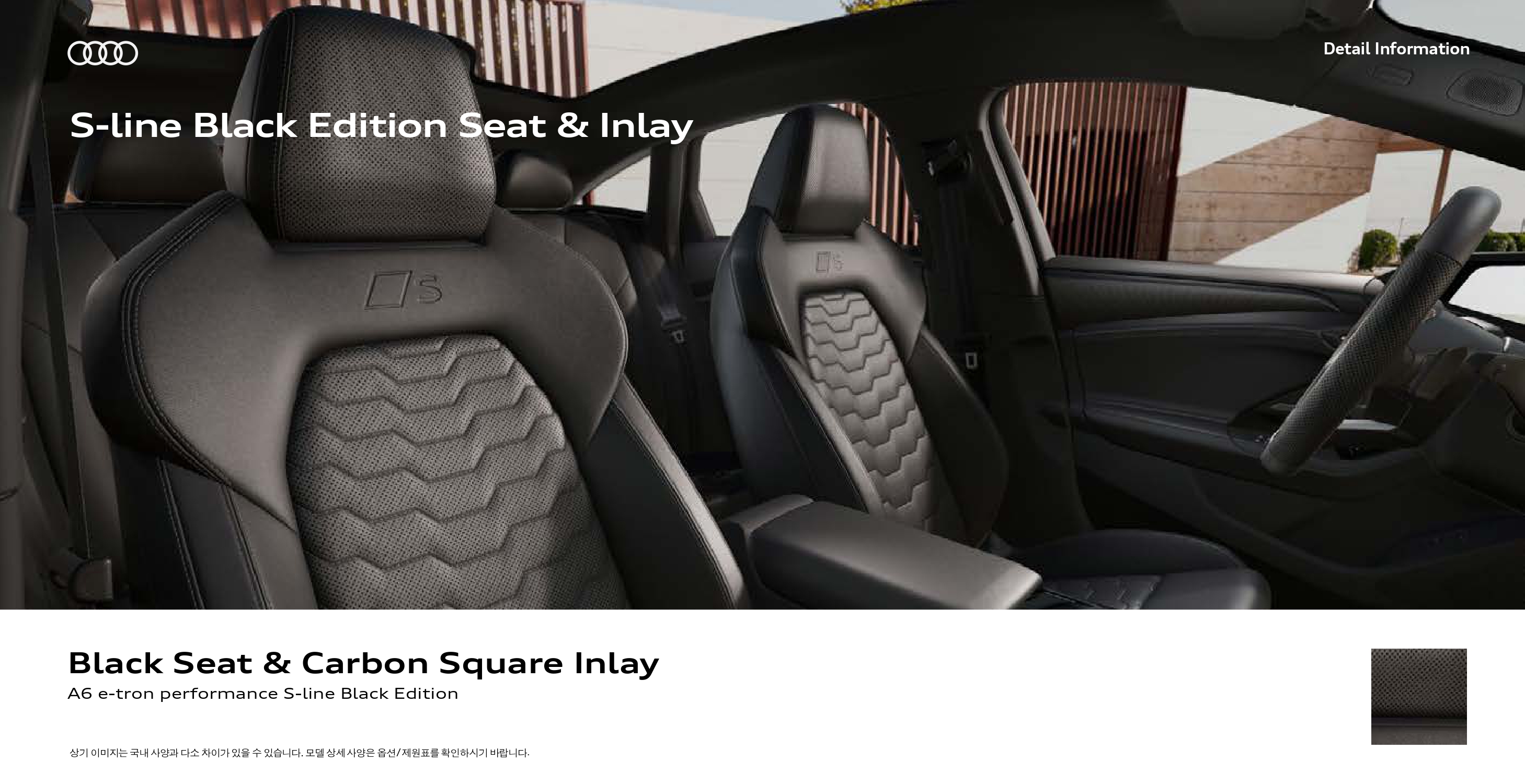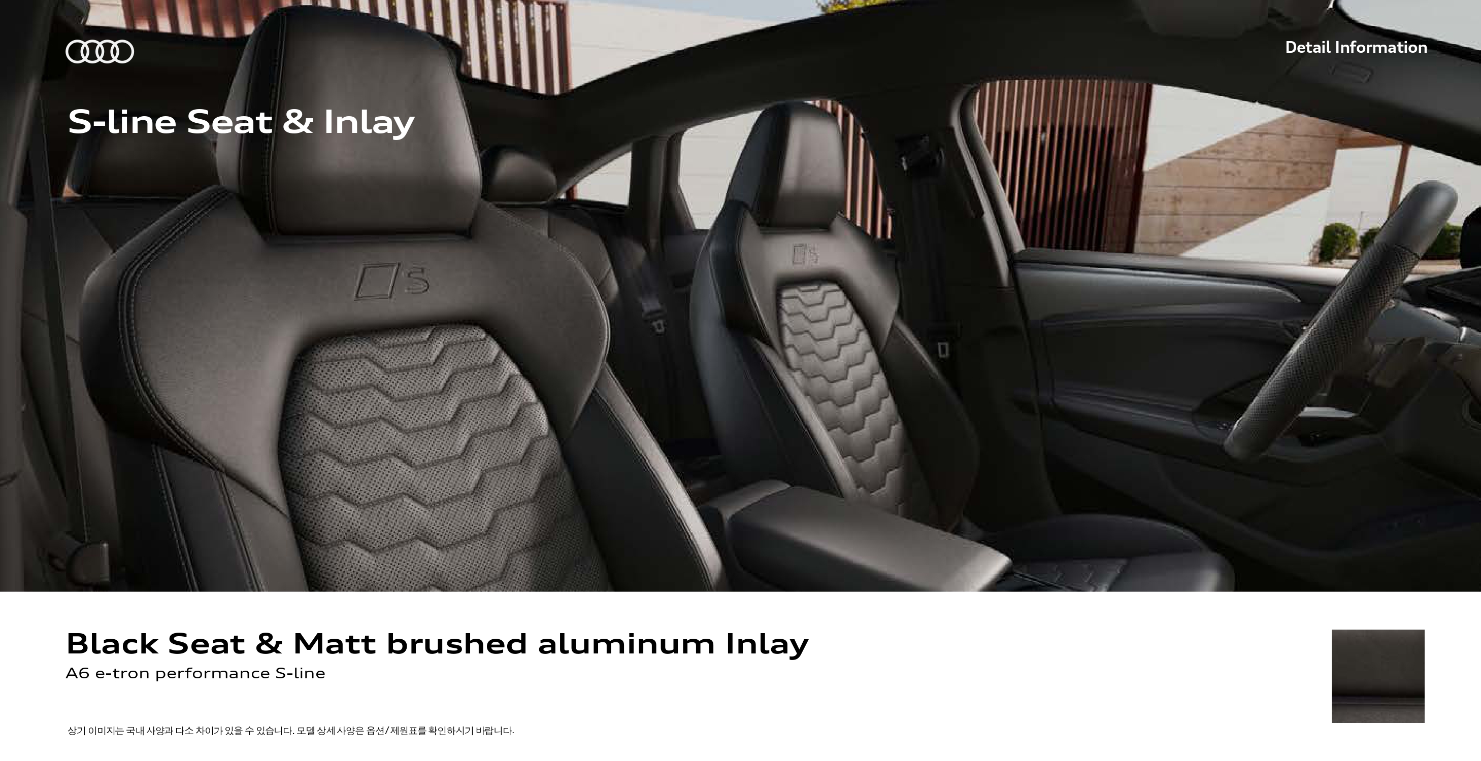 시트는 기본형이나 S-라인 모두 스포츠 시트가 탑재되지만, S-라인은 S로고가 각인되며, 패턴이 다릅니다.
