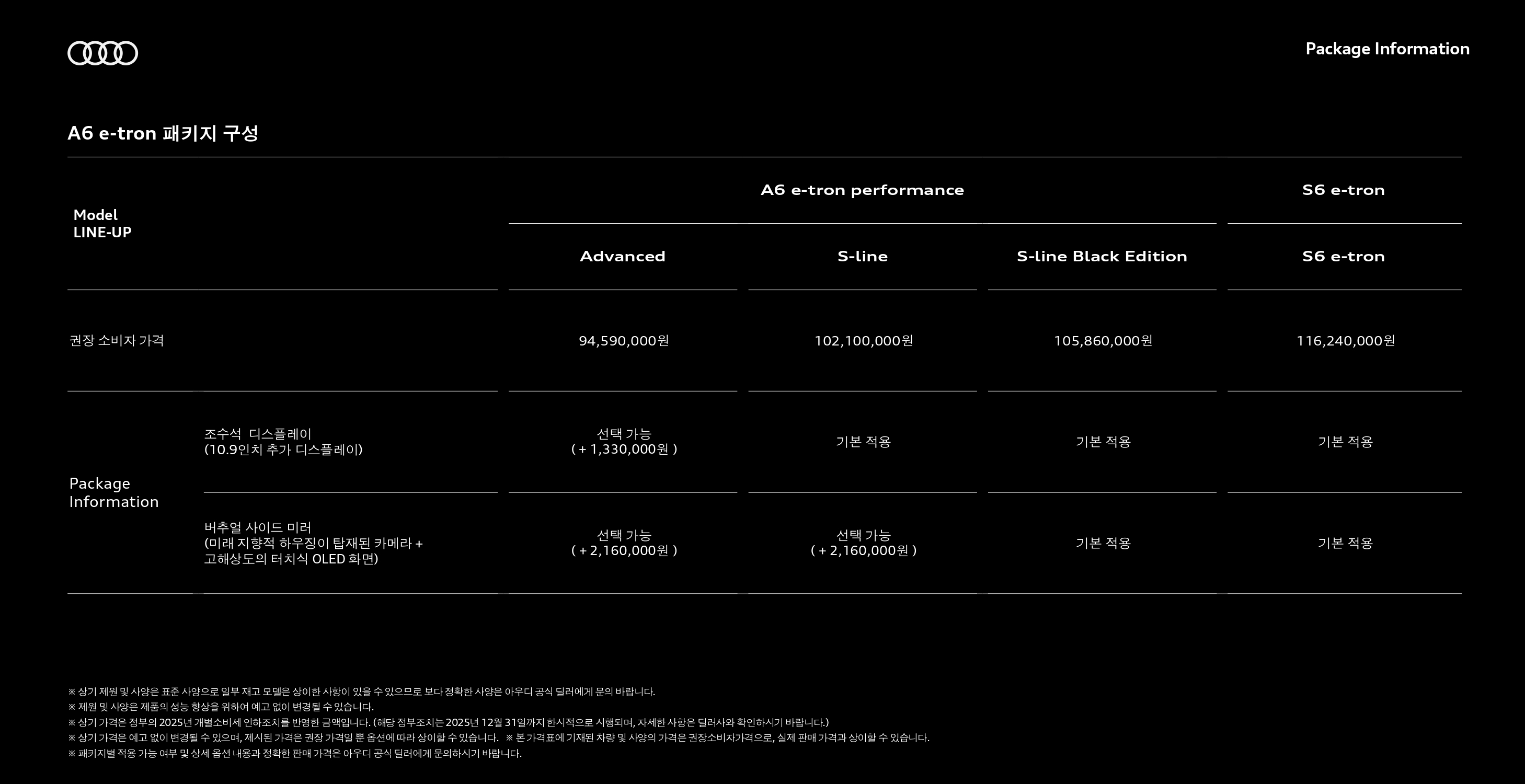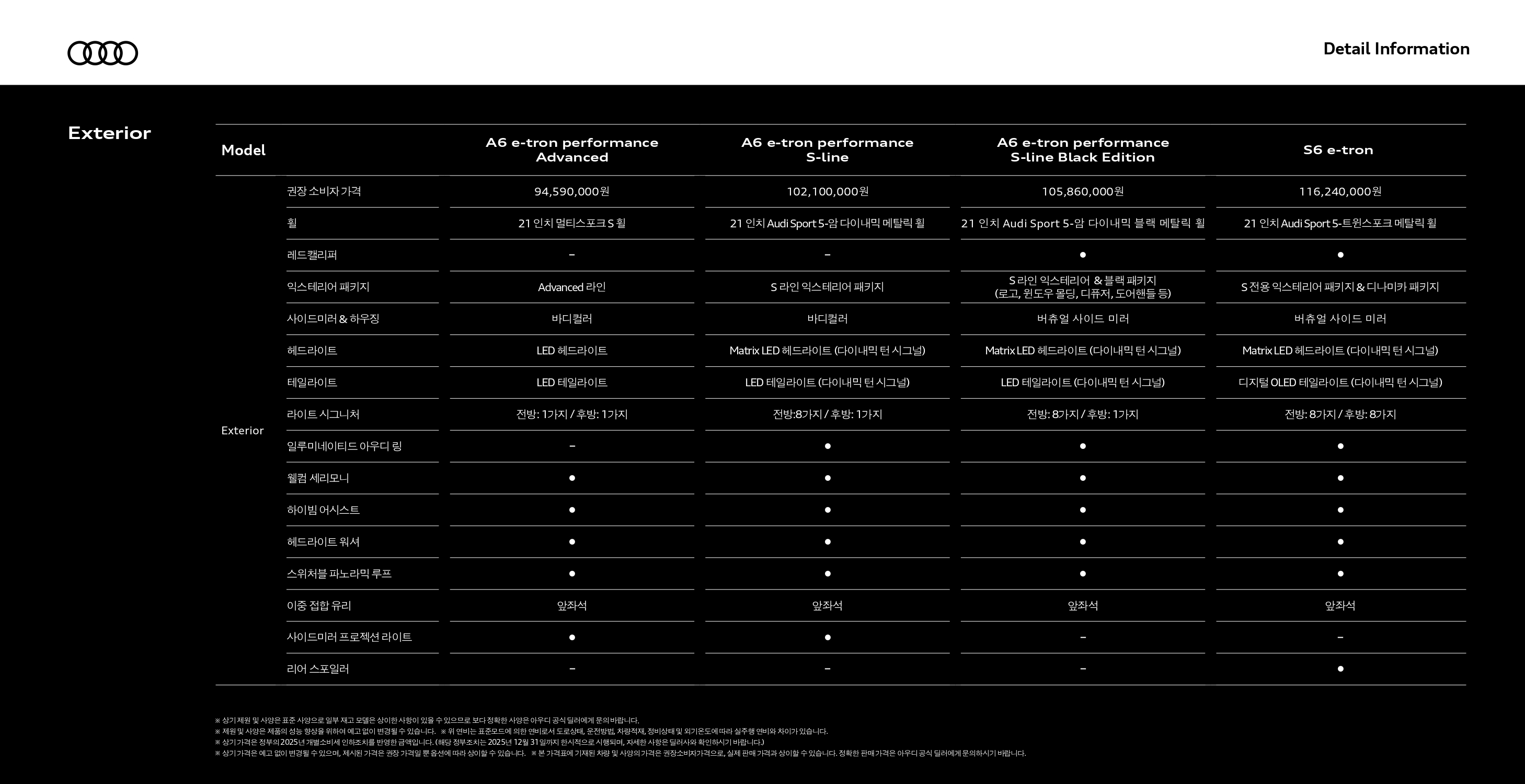 ▼ 2025 A6 e-트론 옵션표 ▼