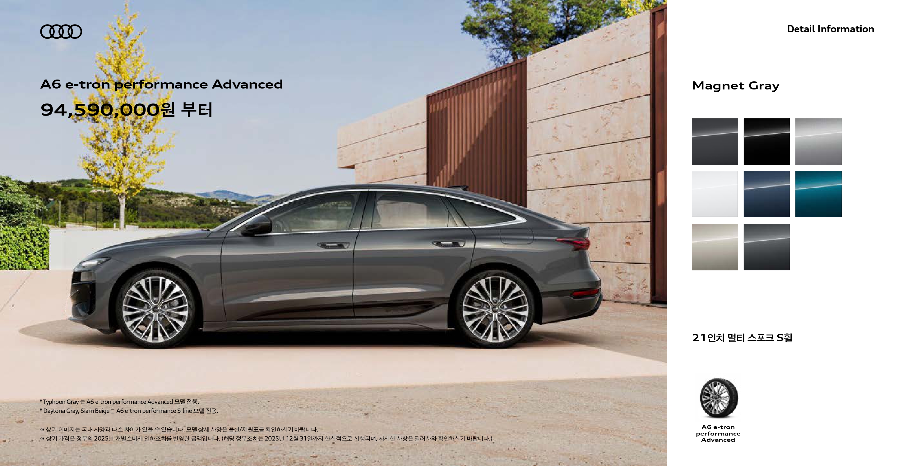 2025 A6 e-트론 어드밴스드 : 9,459 만원