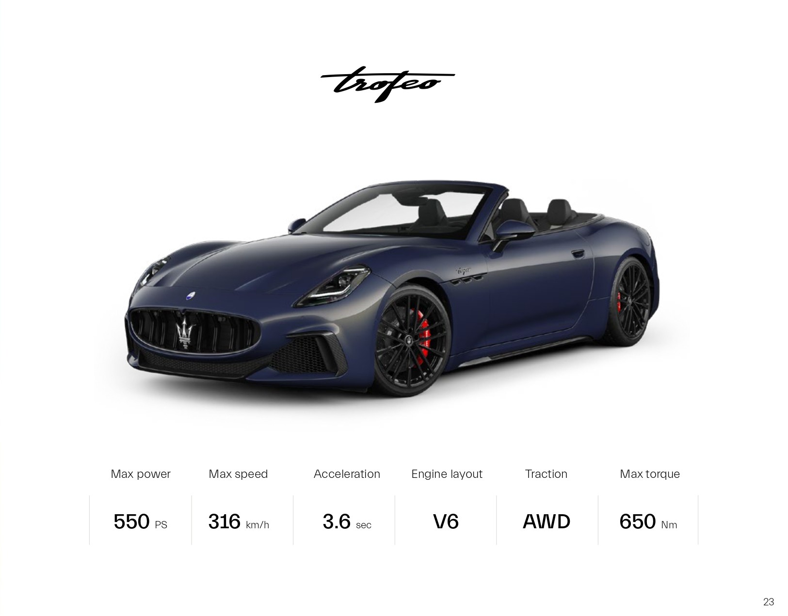 다만, 이제는 마세라티가 더 이상 V8을 사용하지 않기에, 가장 비싼 비용을 치루고, 고성능 내연기관 사양인 트로페오를 선택하여도 V6 입니다.