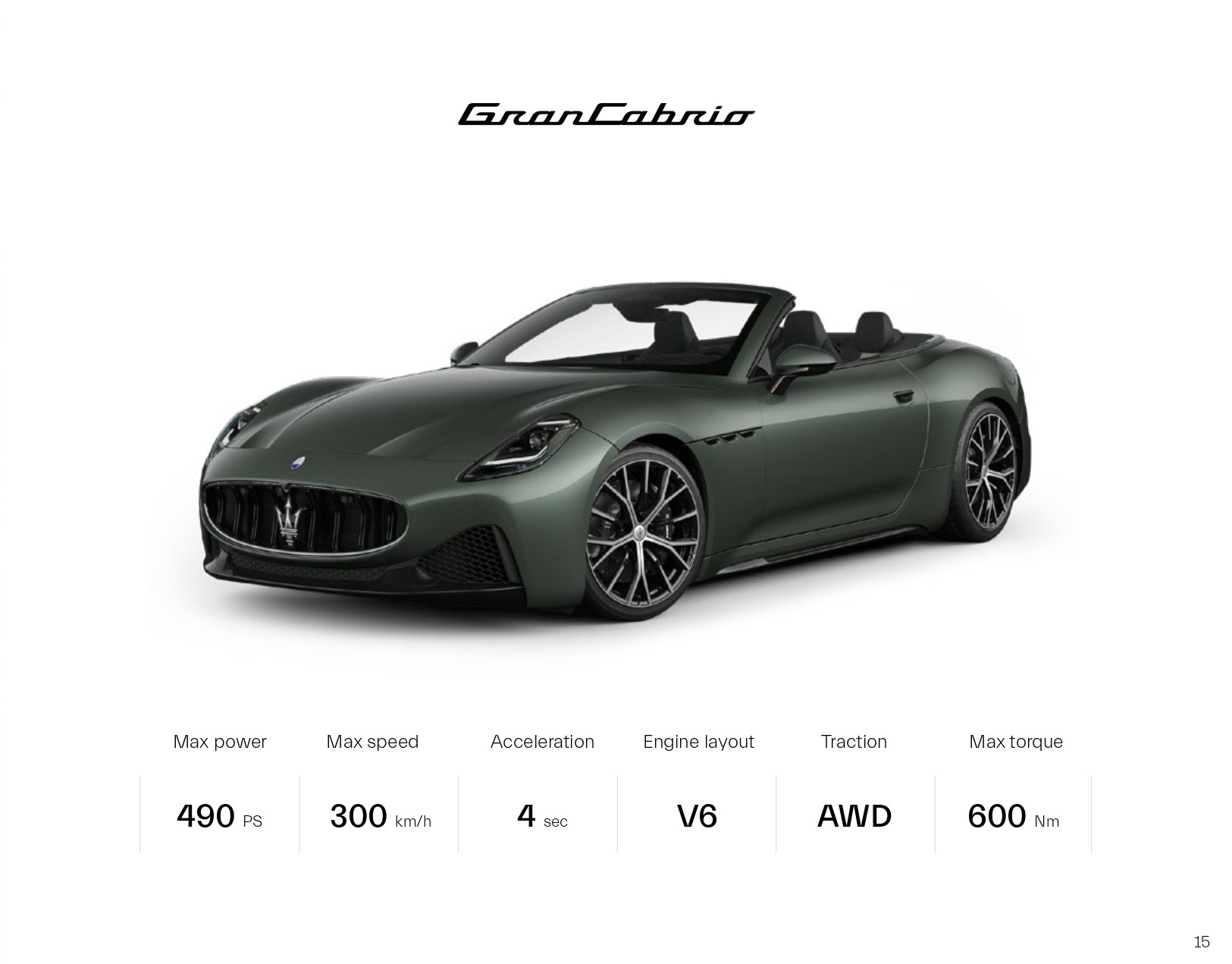 그란 카브리오는 그란투리스모의 카브리올레 버전으로, 성능이나 모델 구성 등은 쿠페형인 그란투리스모와 큰 차이가 나지 않습니다.
