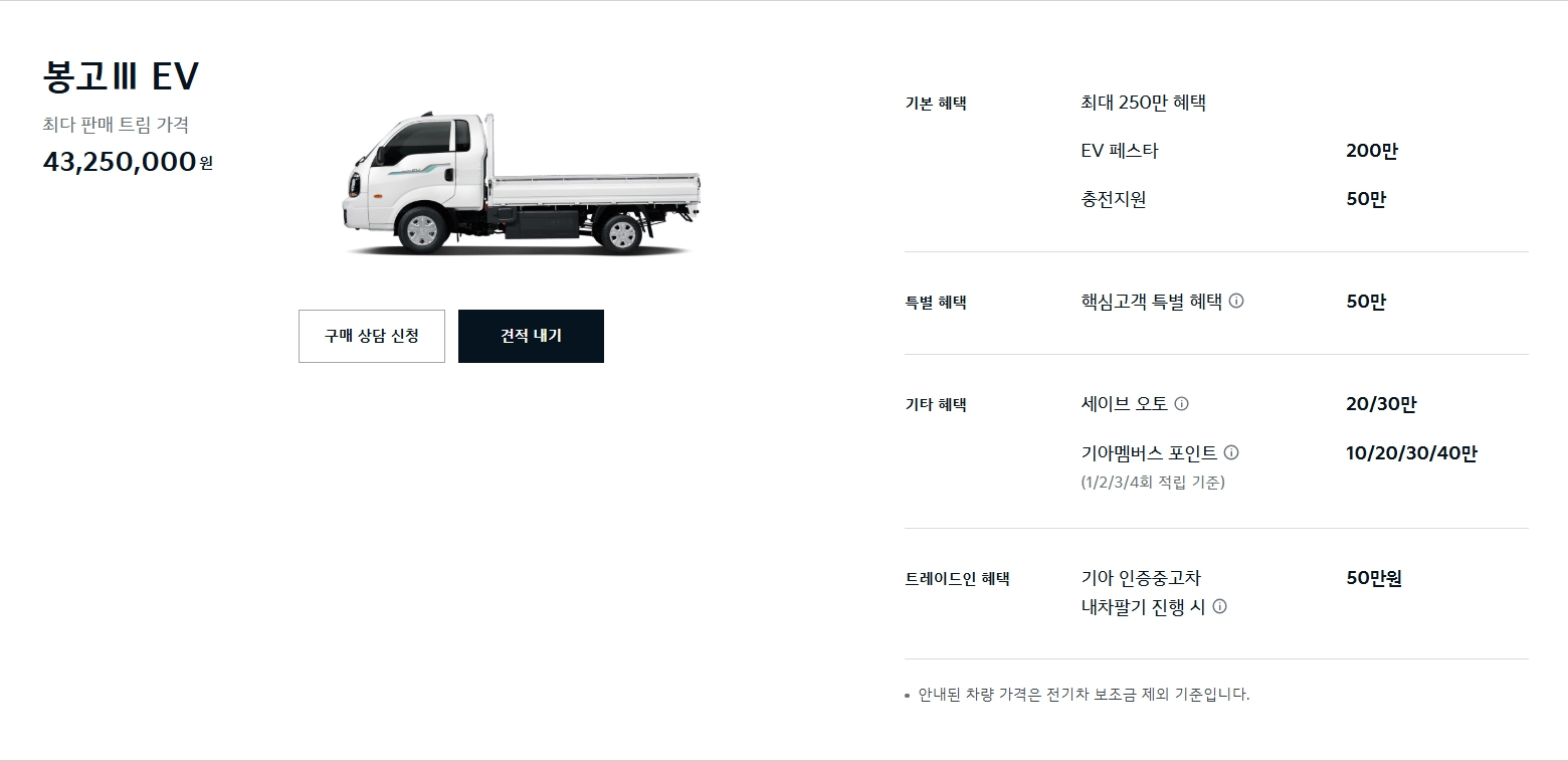 봉고 EV 또한 핵심고객 특별 혜택은 동일하게 적용되니, 되시는 분들은 꼭 신청하시기 바랍니다.