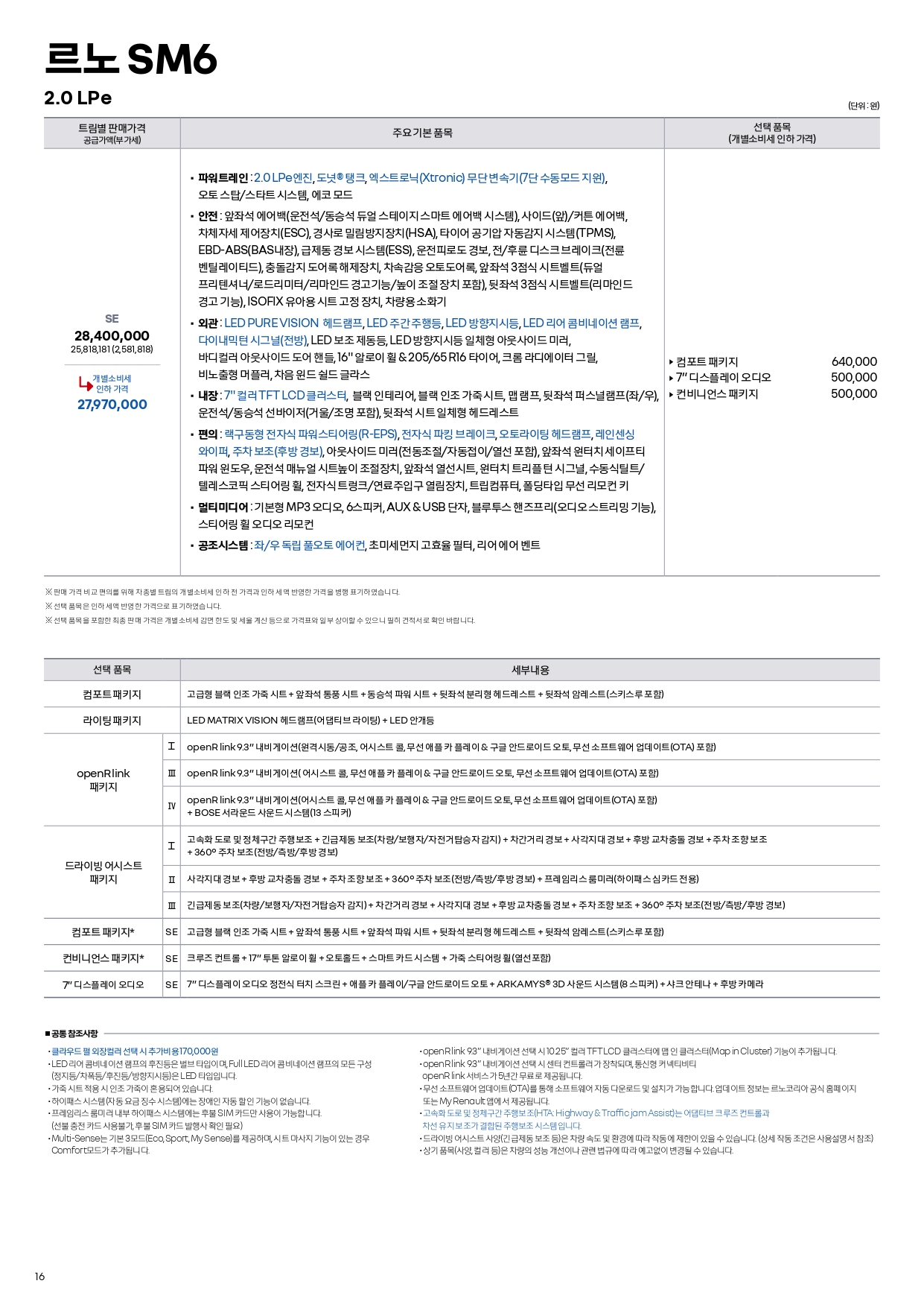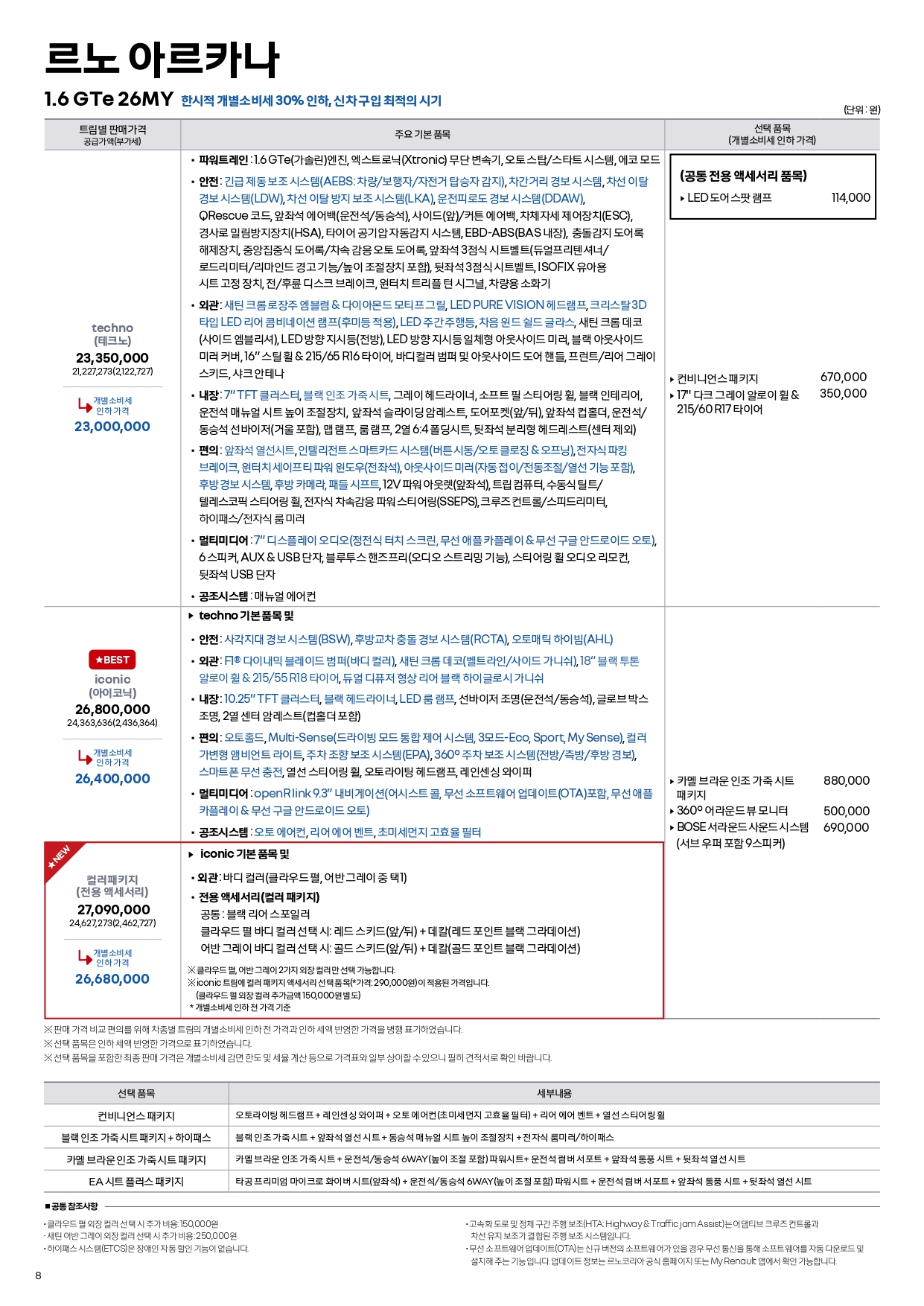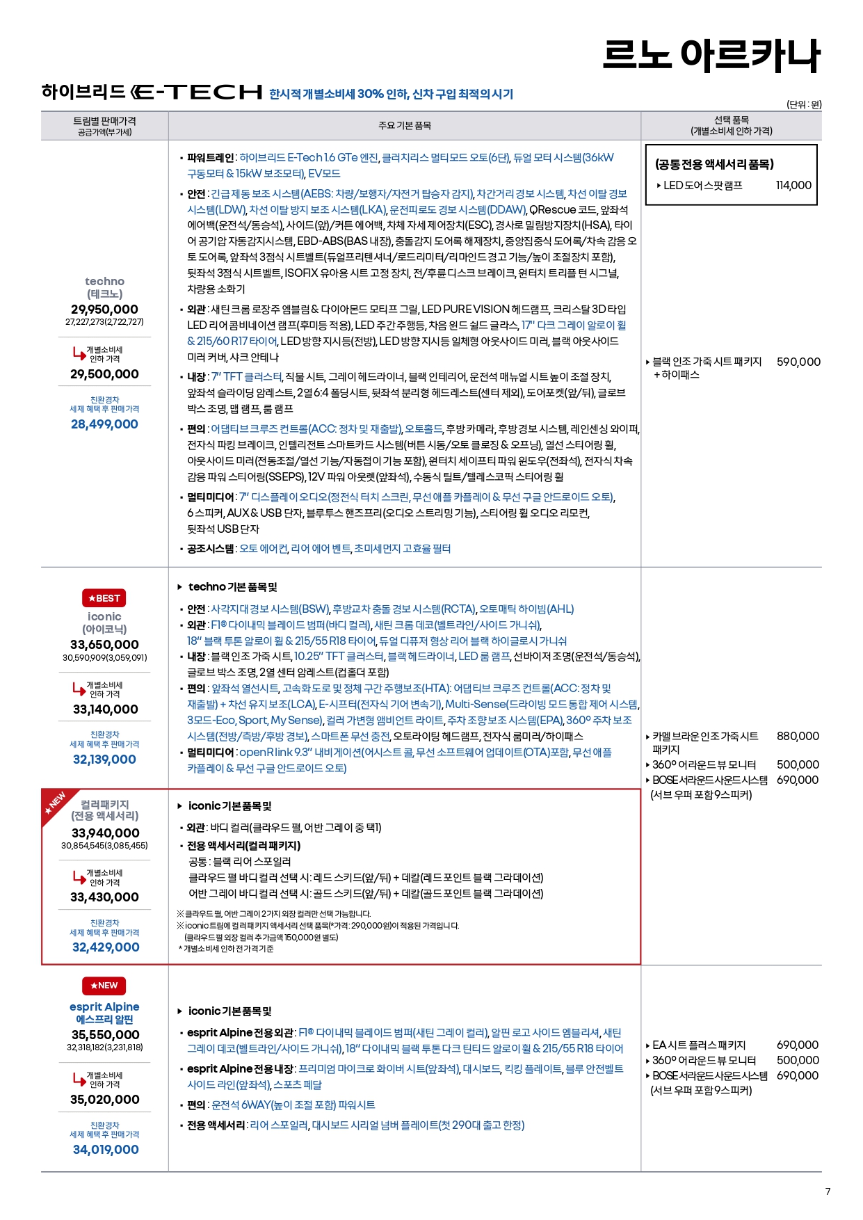 우선 가격표에 일부 변화가 생겼는데, 컬러 패키지라는 신규 트림이 추가되었습니다.