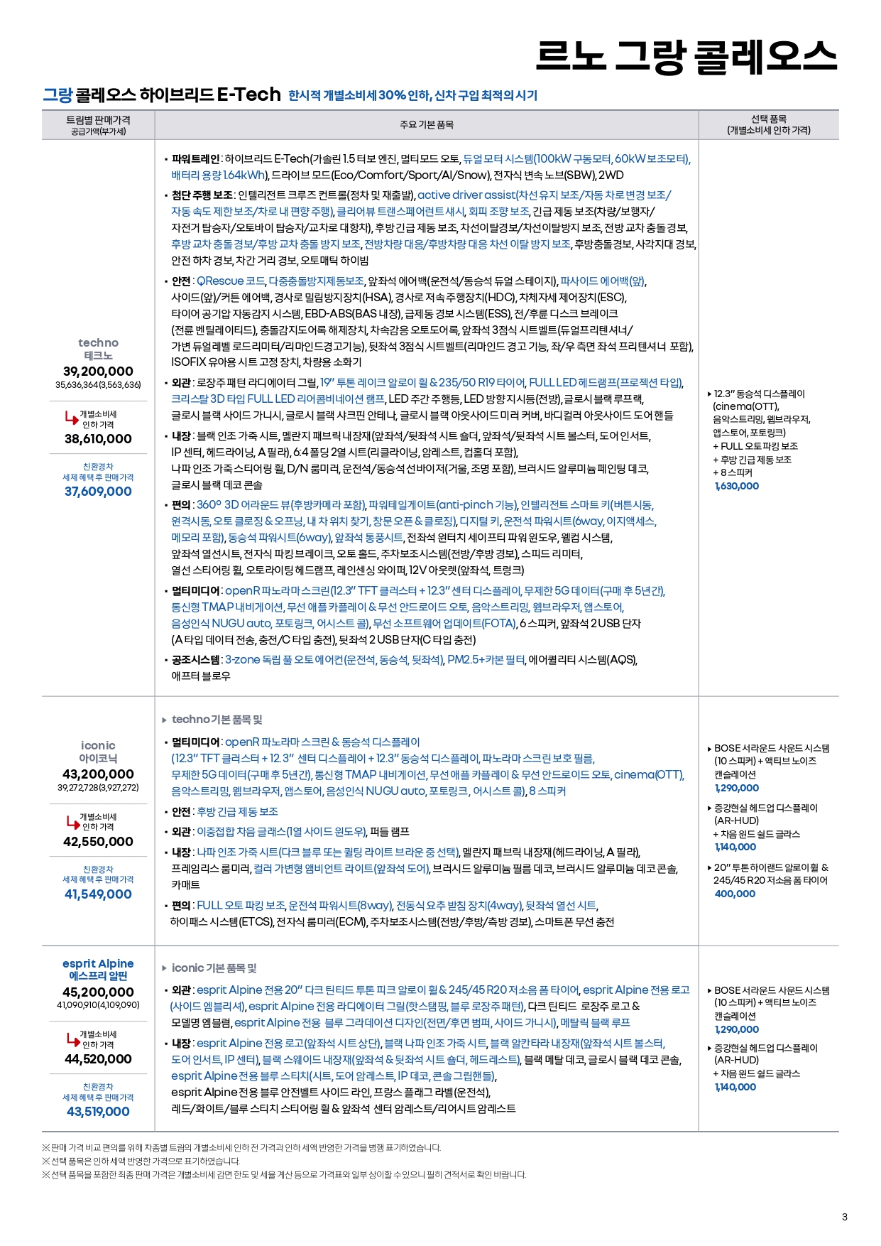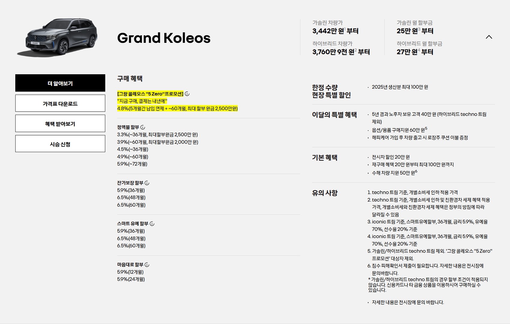 그랑 콜레오스 할인 및 가격표