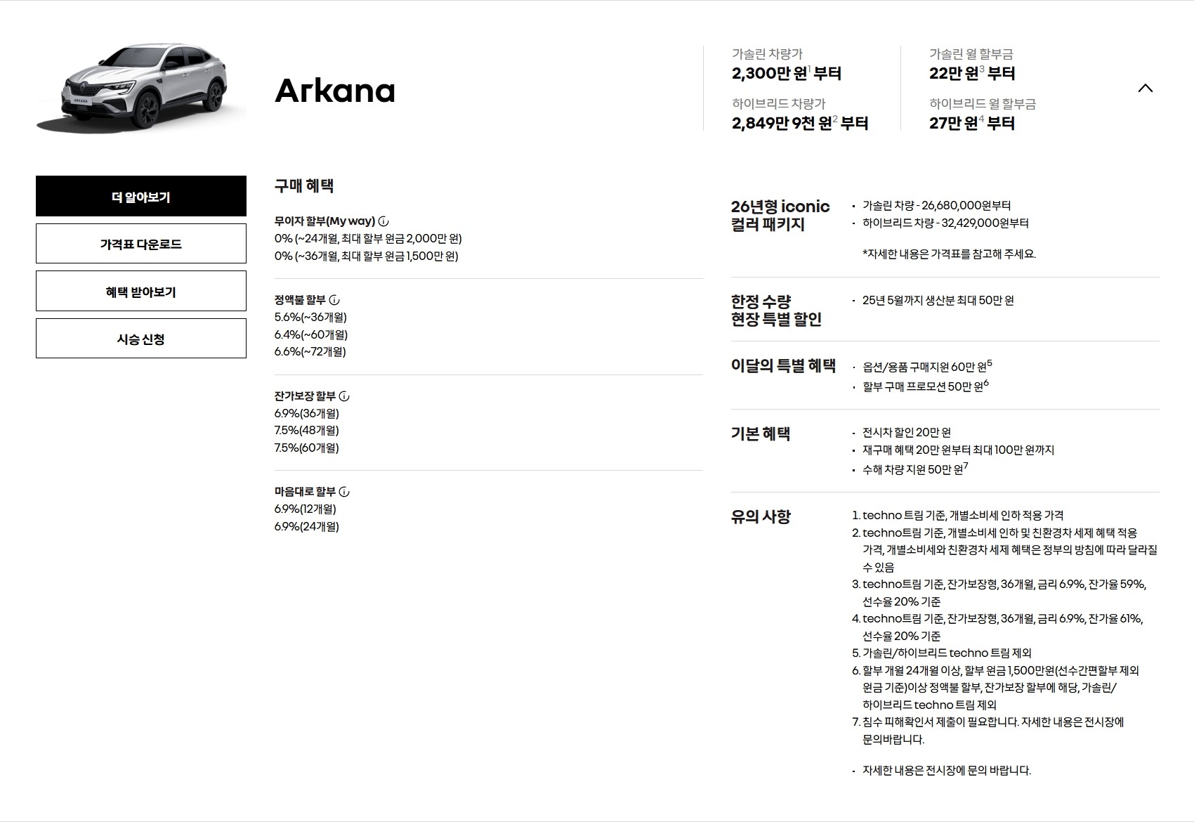 아르카나 할인 및 가격표