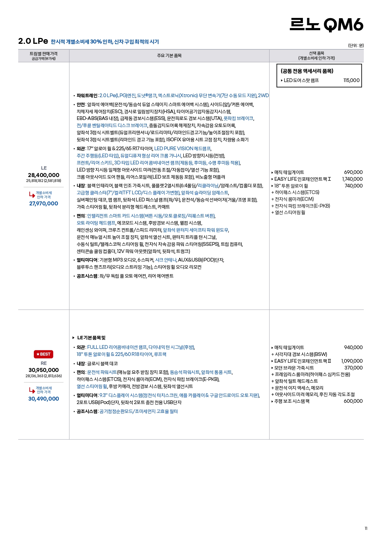 QM6 할인 및 가격표