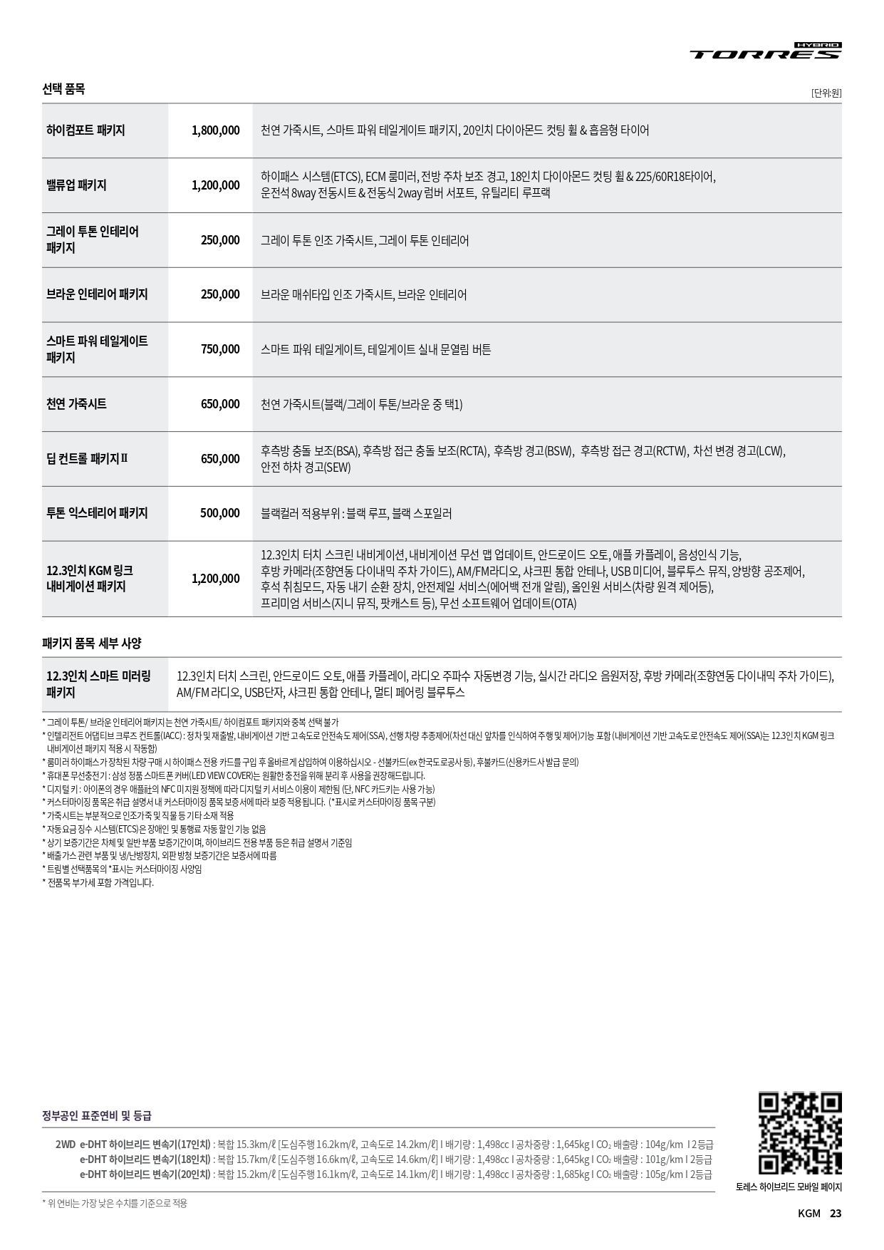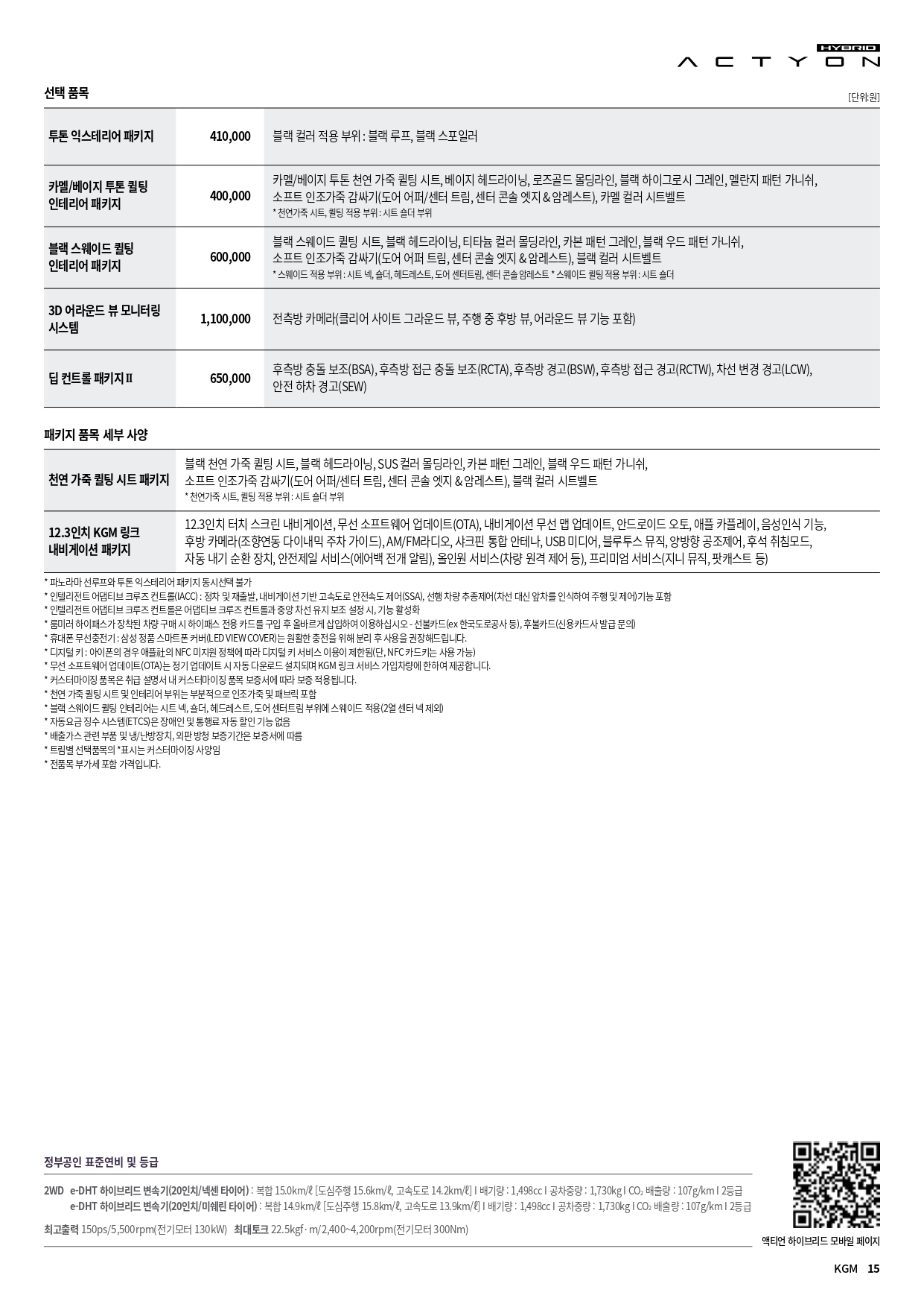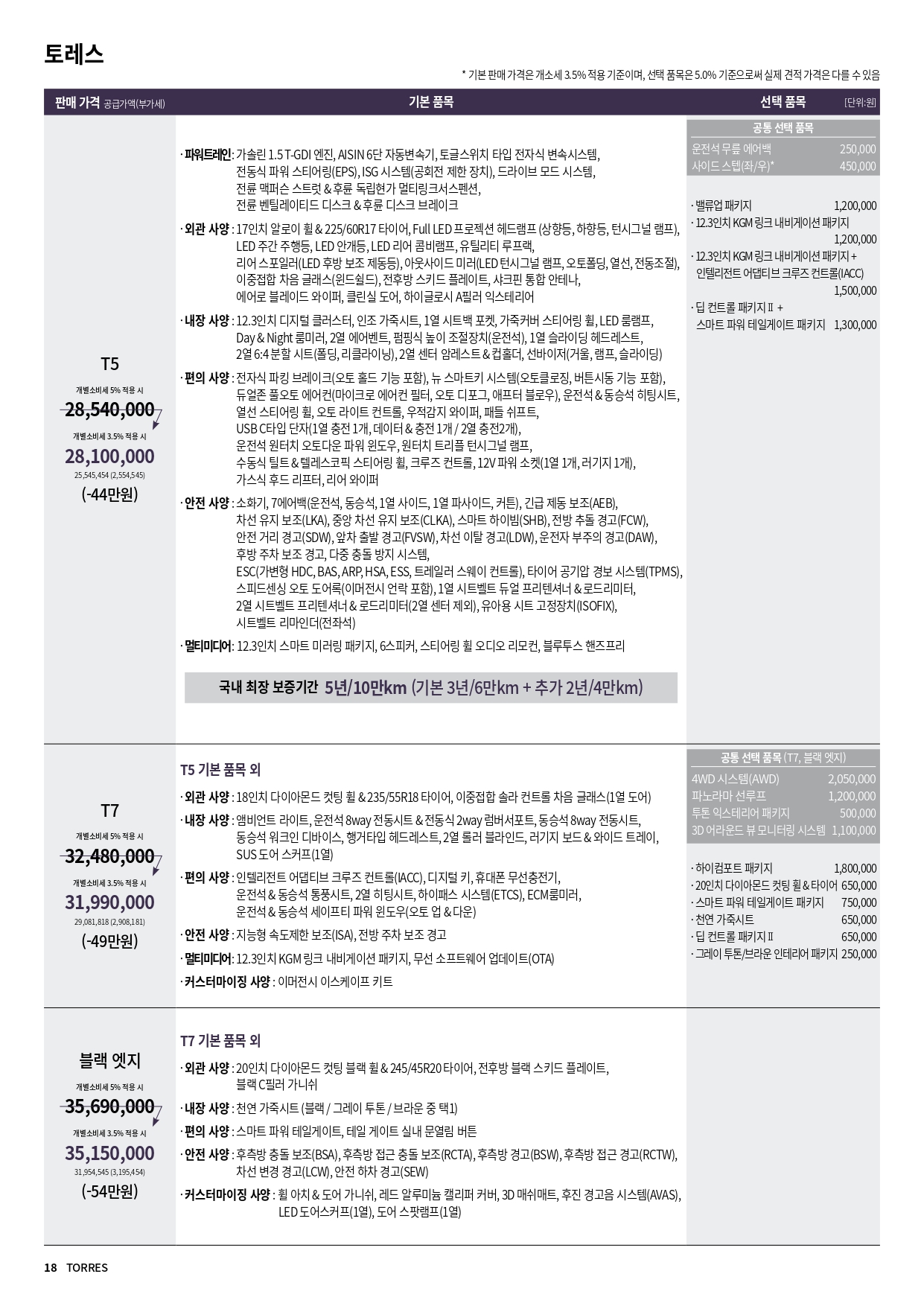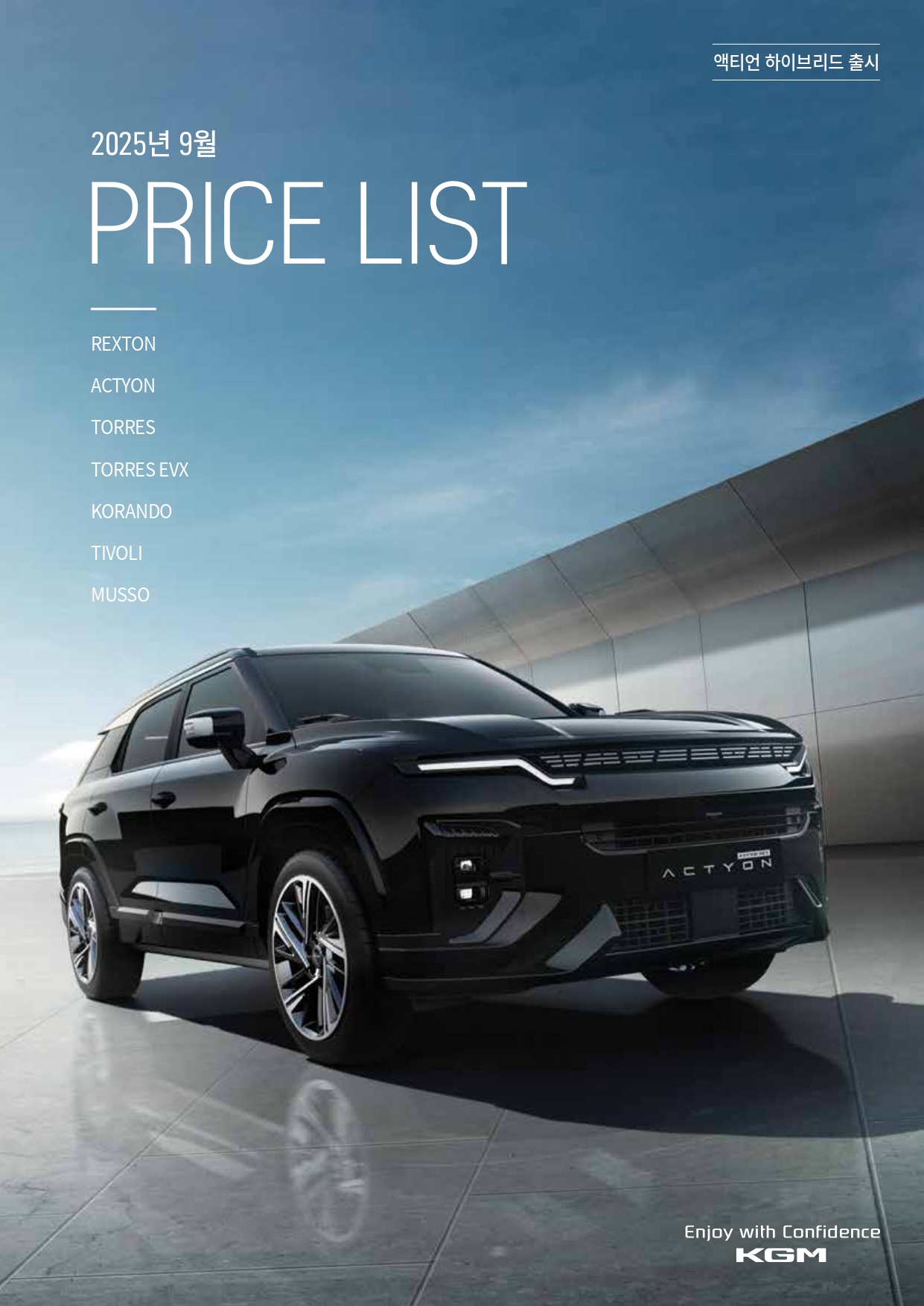 아래는 2025년 9월 KG모빌리티 전차종 가격표 PDF 파일인데, 용량이 커서 악세사리 가격표만 삭제한 가격표 입니다.