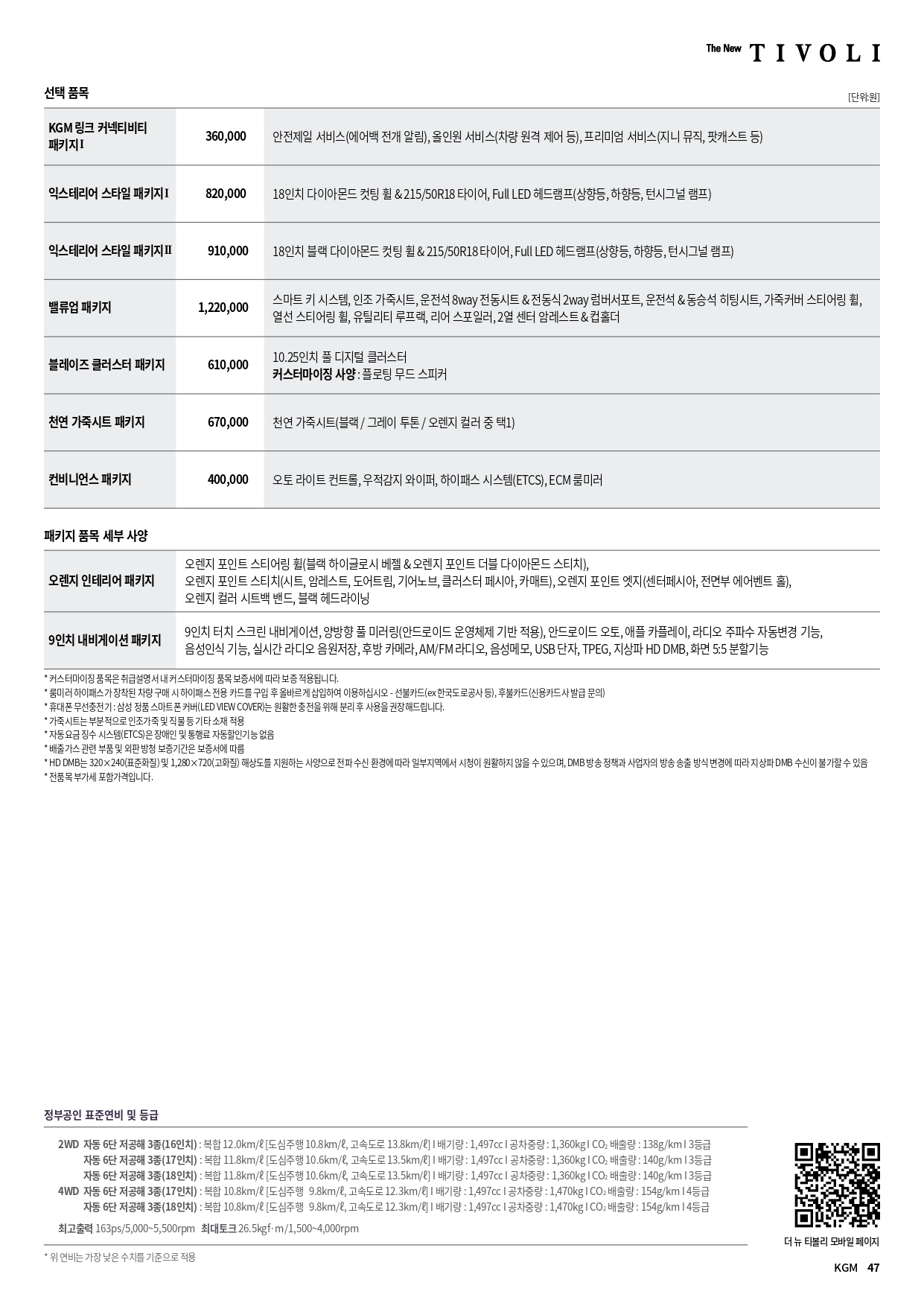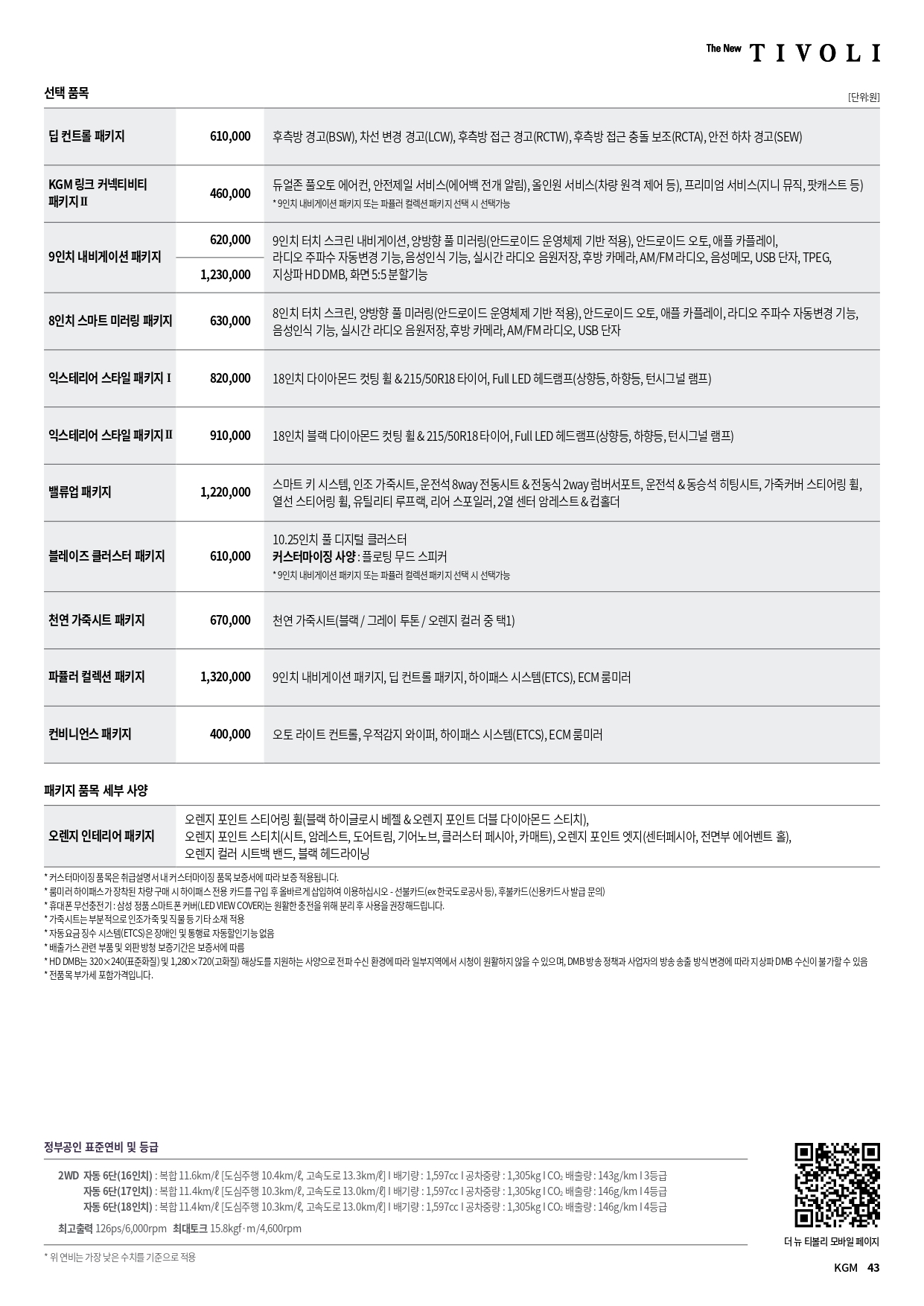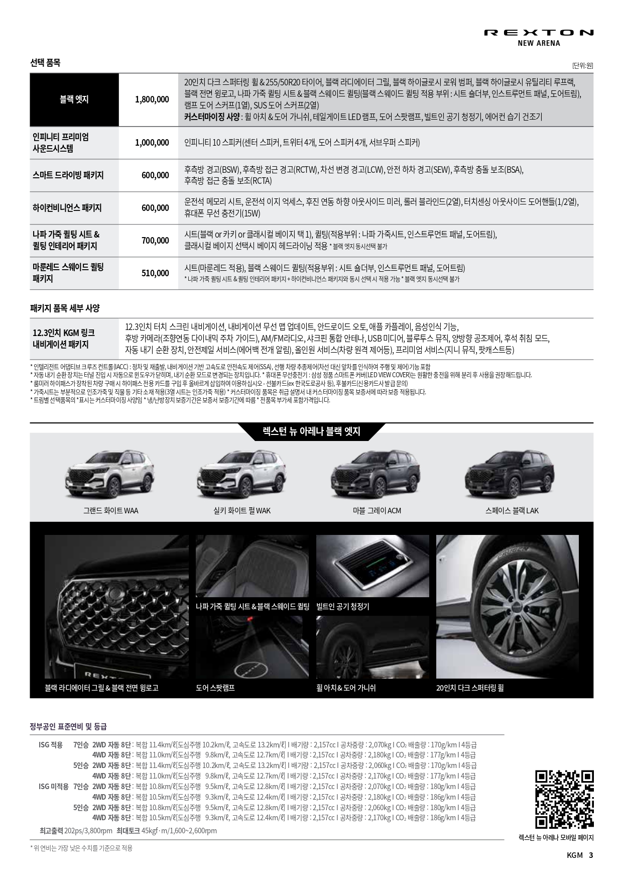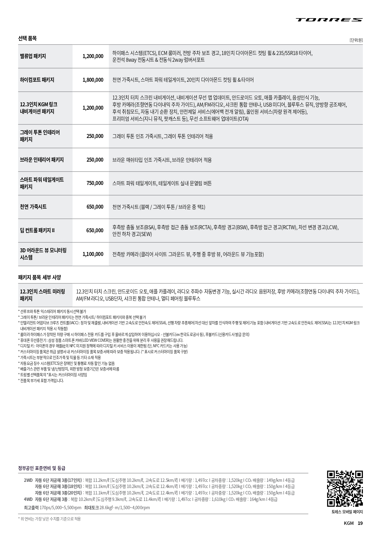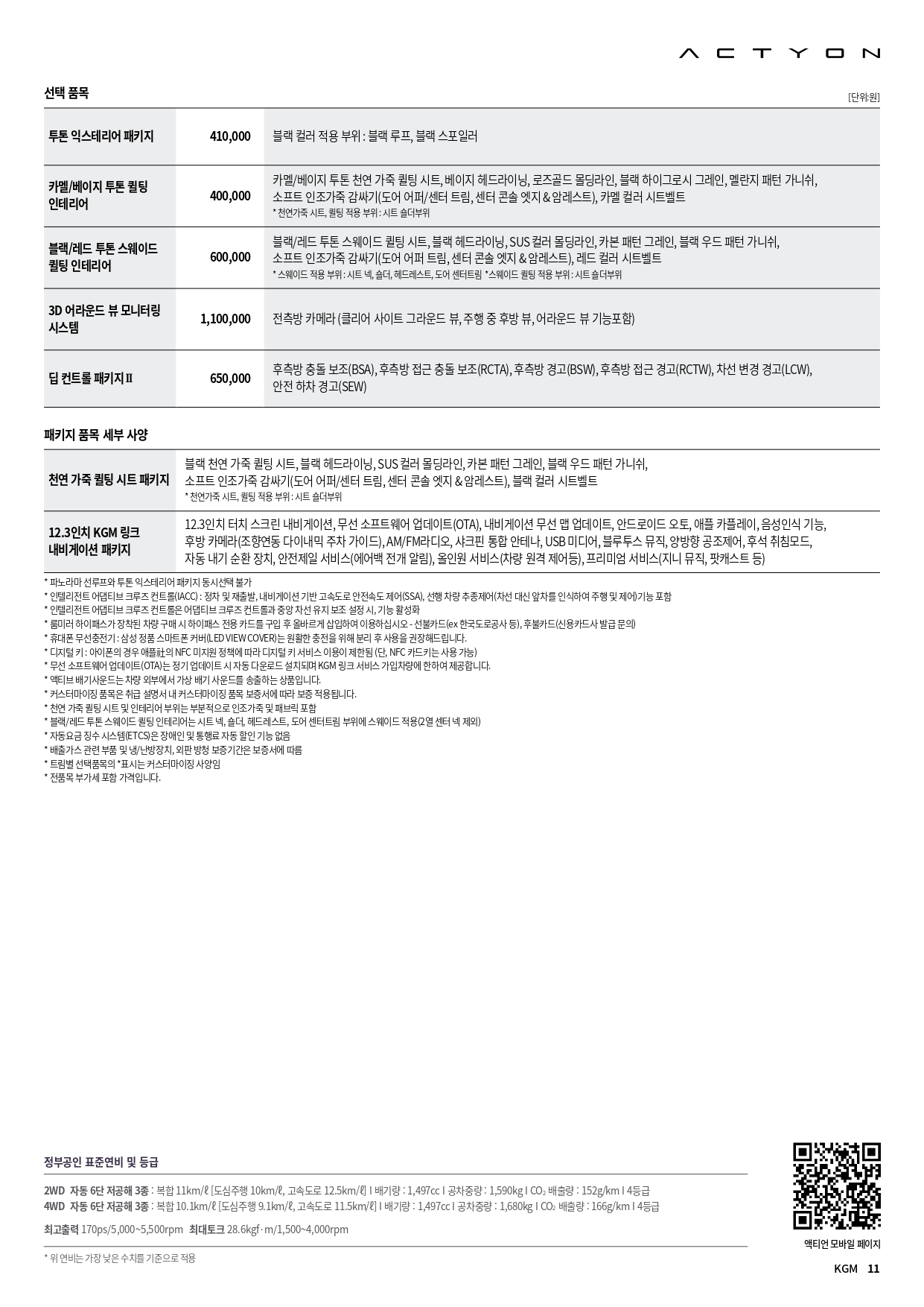 아래는 2025년 9월 KG모빌리티 전차종 가격표 PDF 파일인데, 용량이 커서 악세사리 가격표만 삭제한 가격표 입니다.