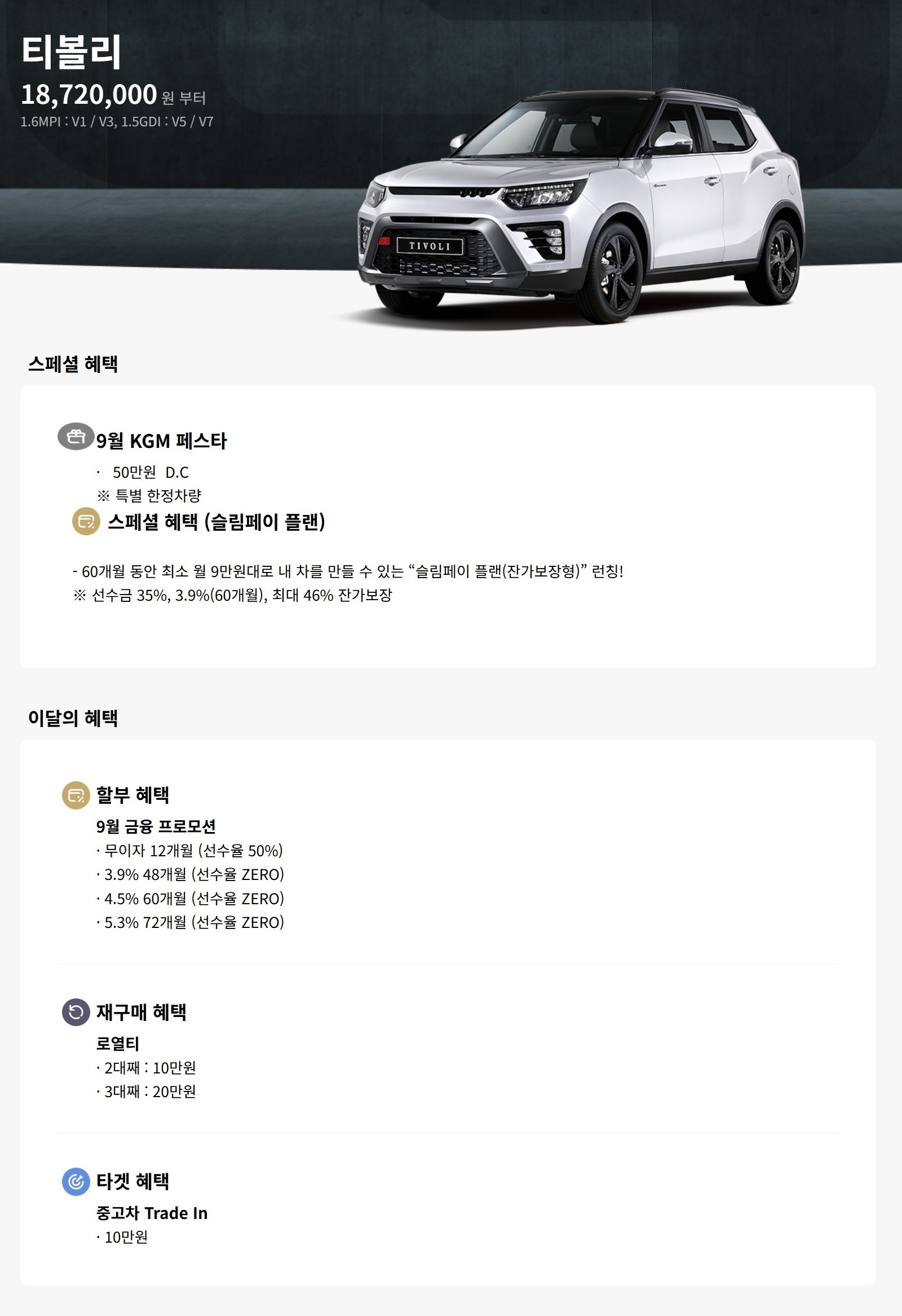 티볼리 할인 및 가격표