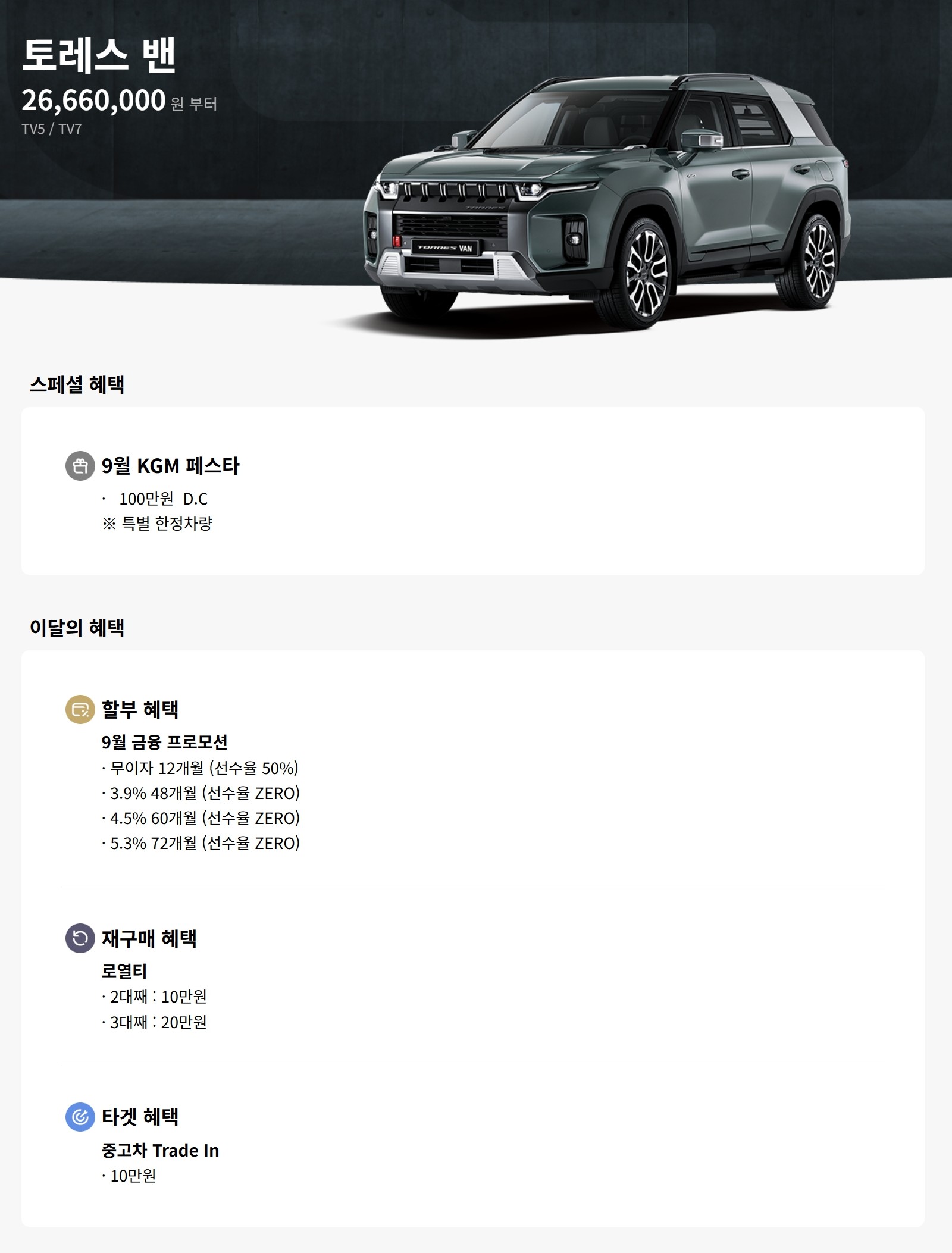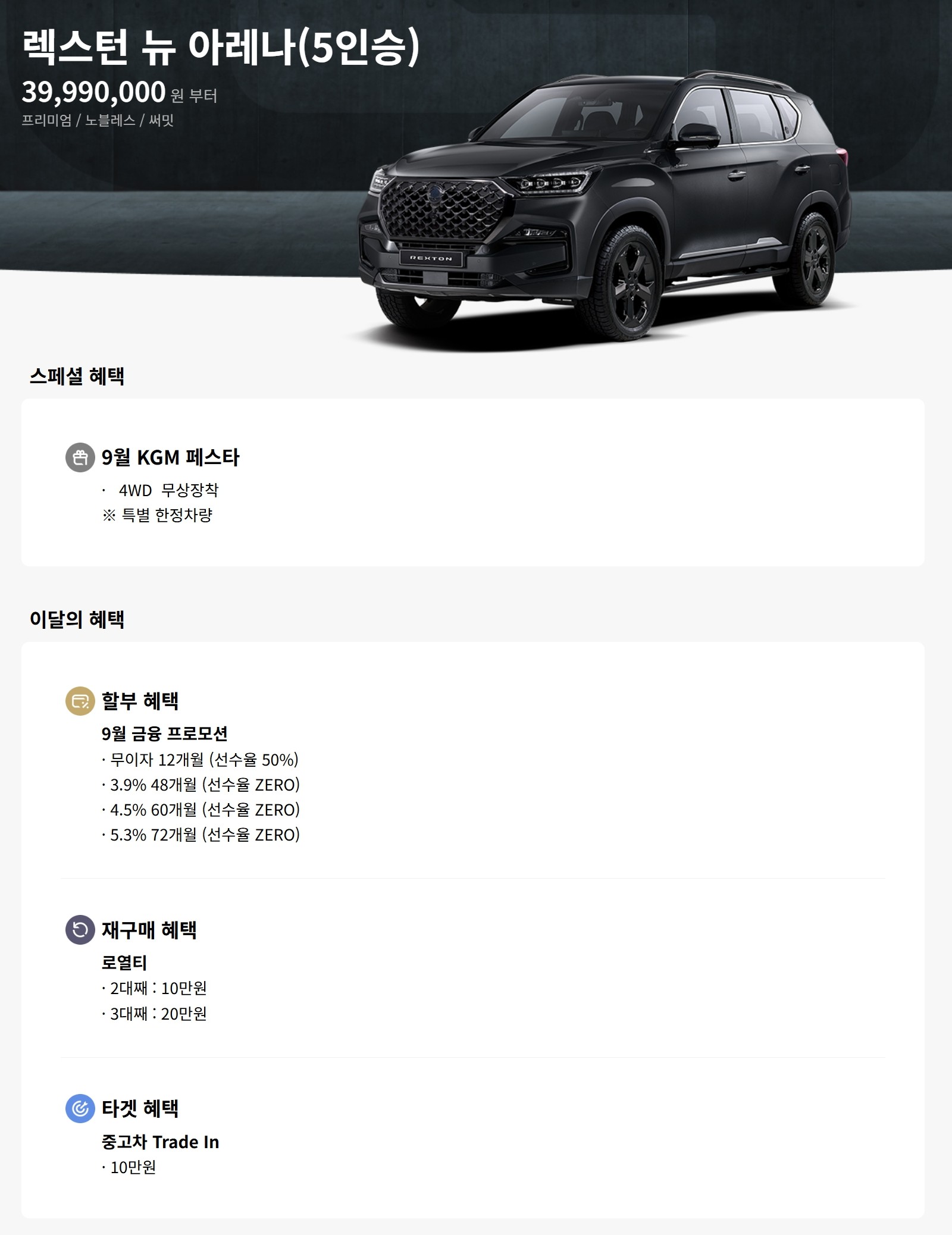 오늘은 여러분들께 2025년 9월 KG모빌리티 전차종 가격표 및 이달의 구매혜택 소개편을 함께하는 시간을 가져볼까 합니다.
