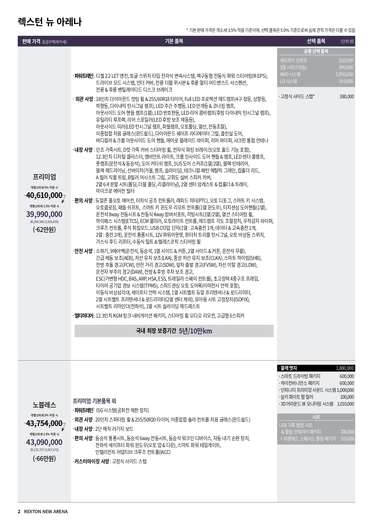 렉스턴 할인 및 가격표