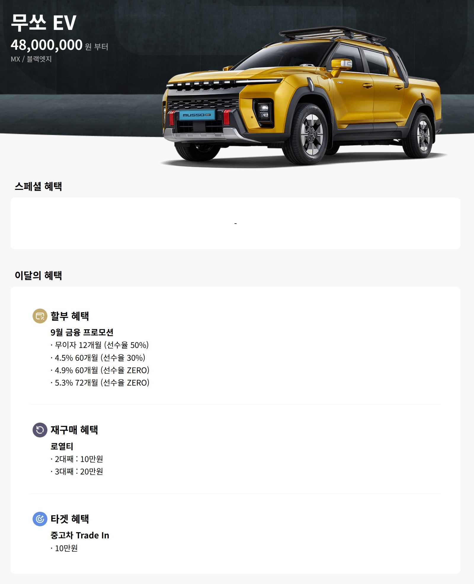 무쏘 EV 할인 및 가격표