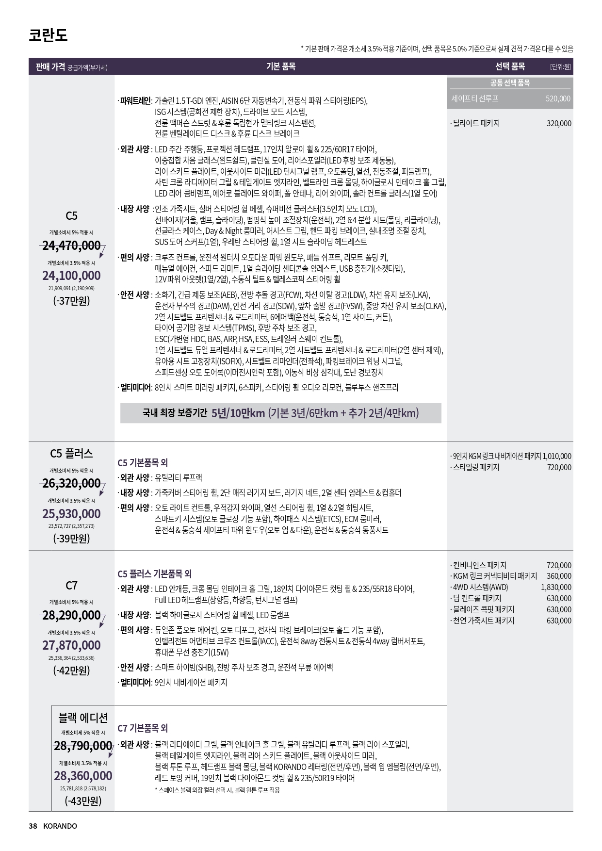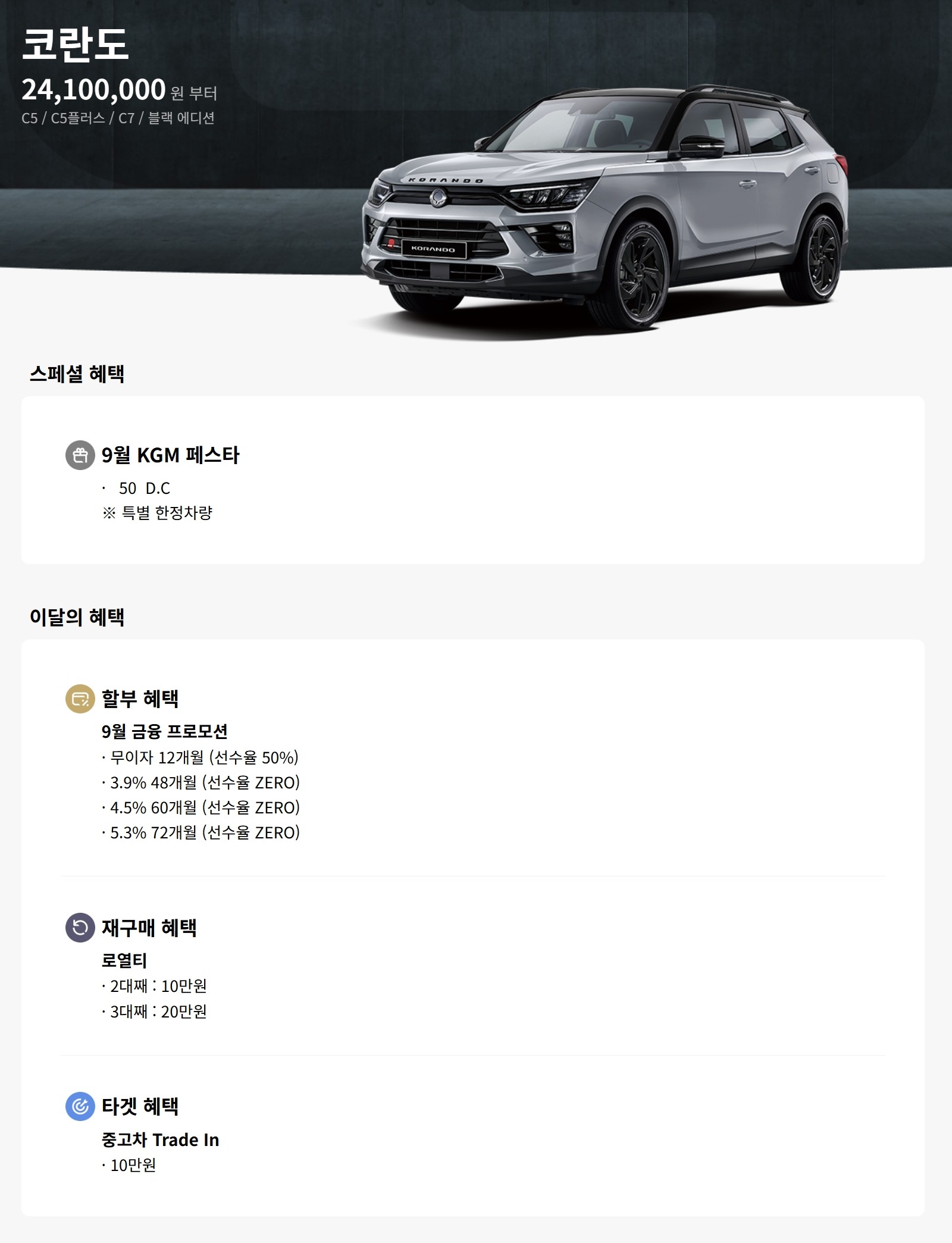 코란도 할인 및 가격표