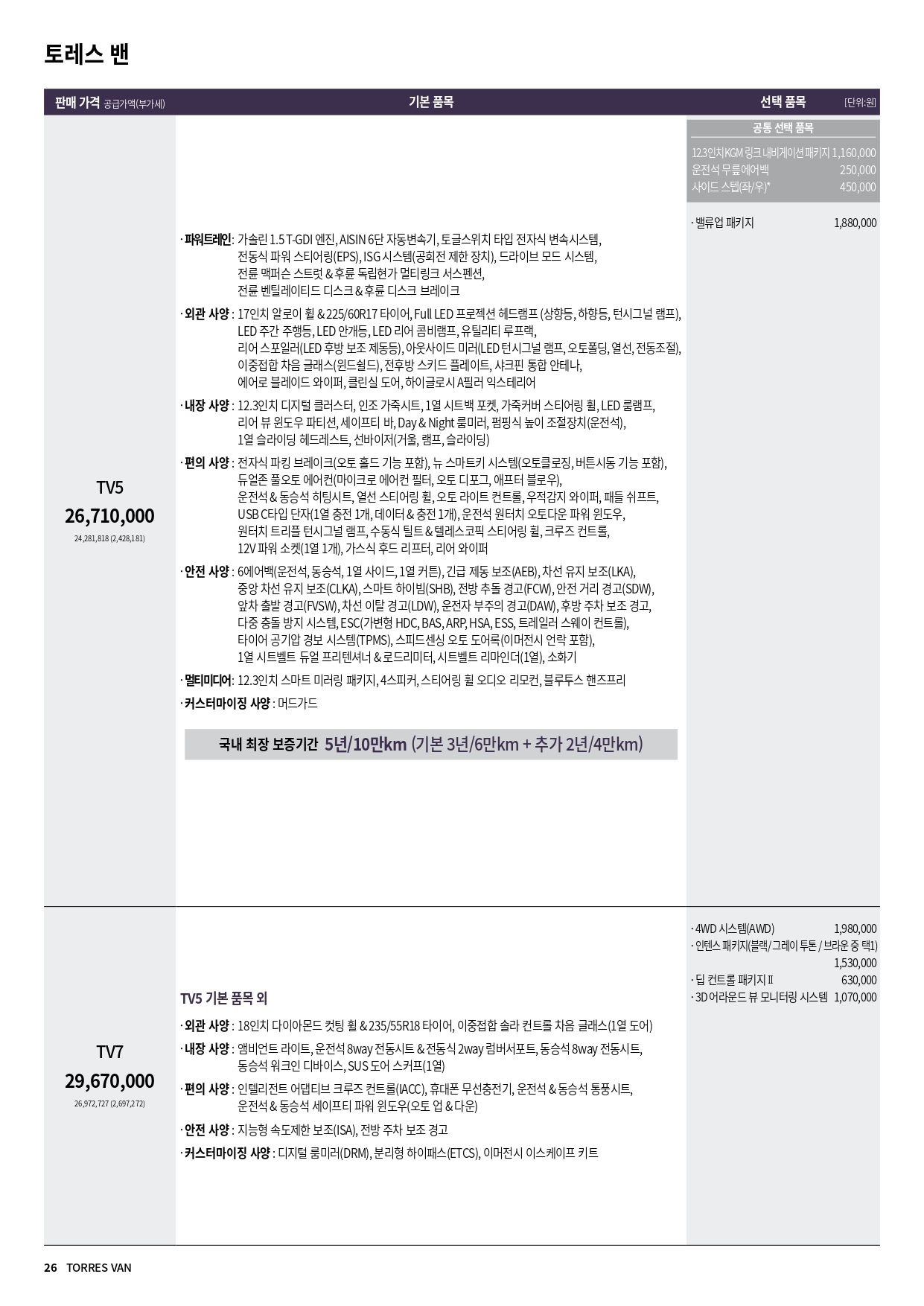 토레스 밴 할인 및 가격표