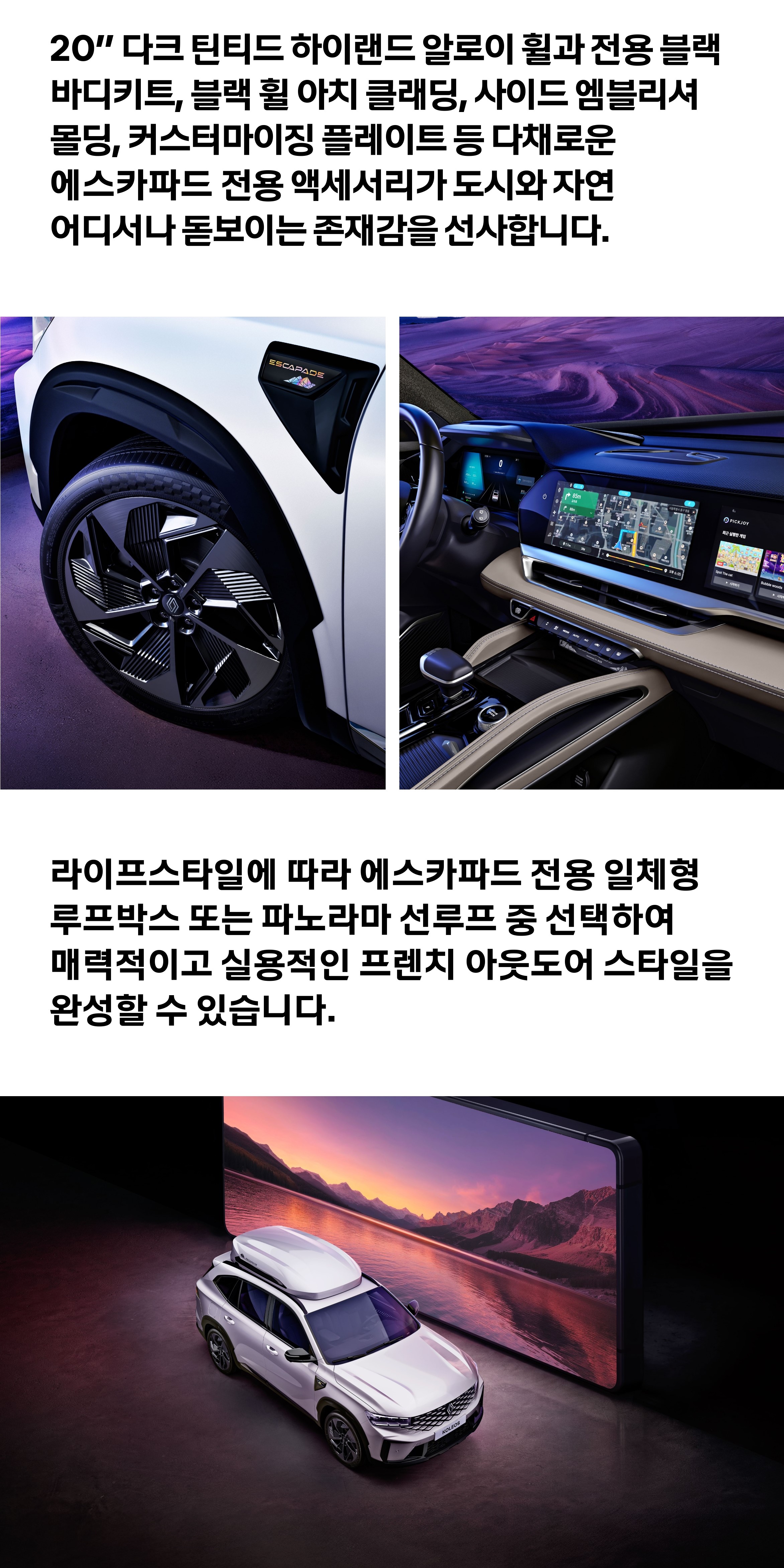 다만, 에스카파드 선택 시, 반드시 파노라마 선루프 혹은 루프박스를 선택해야 하는 단점도 있으니, 참고하시기 바랍니다.