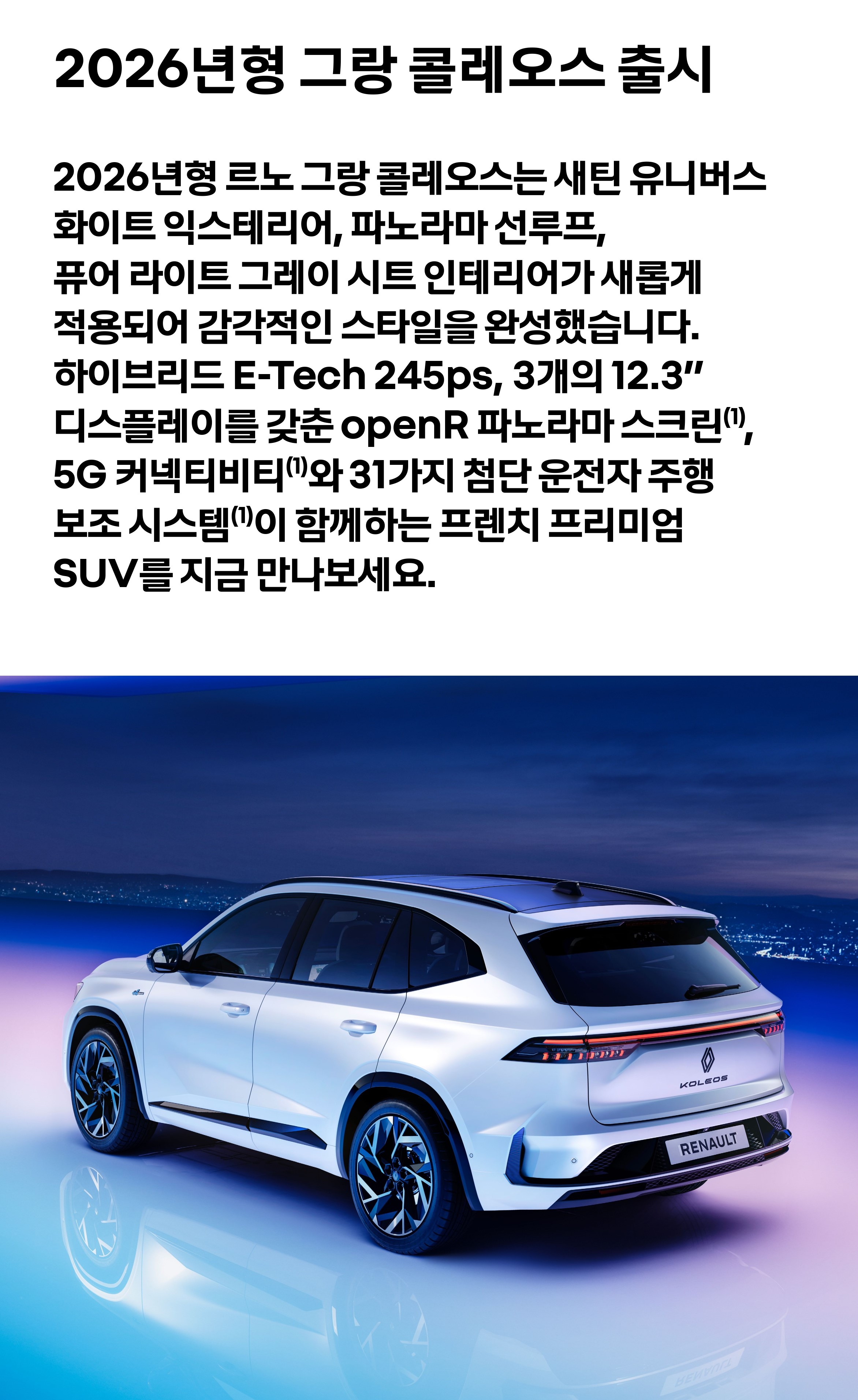 오늘은 여러분들께 2026 그랑콜레오스 출시 소식을 전해드려 볼까 합니다.