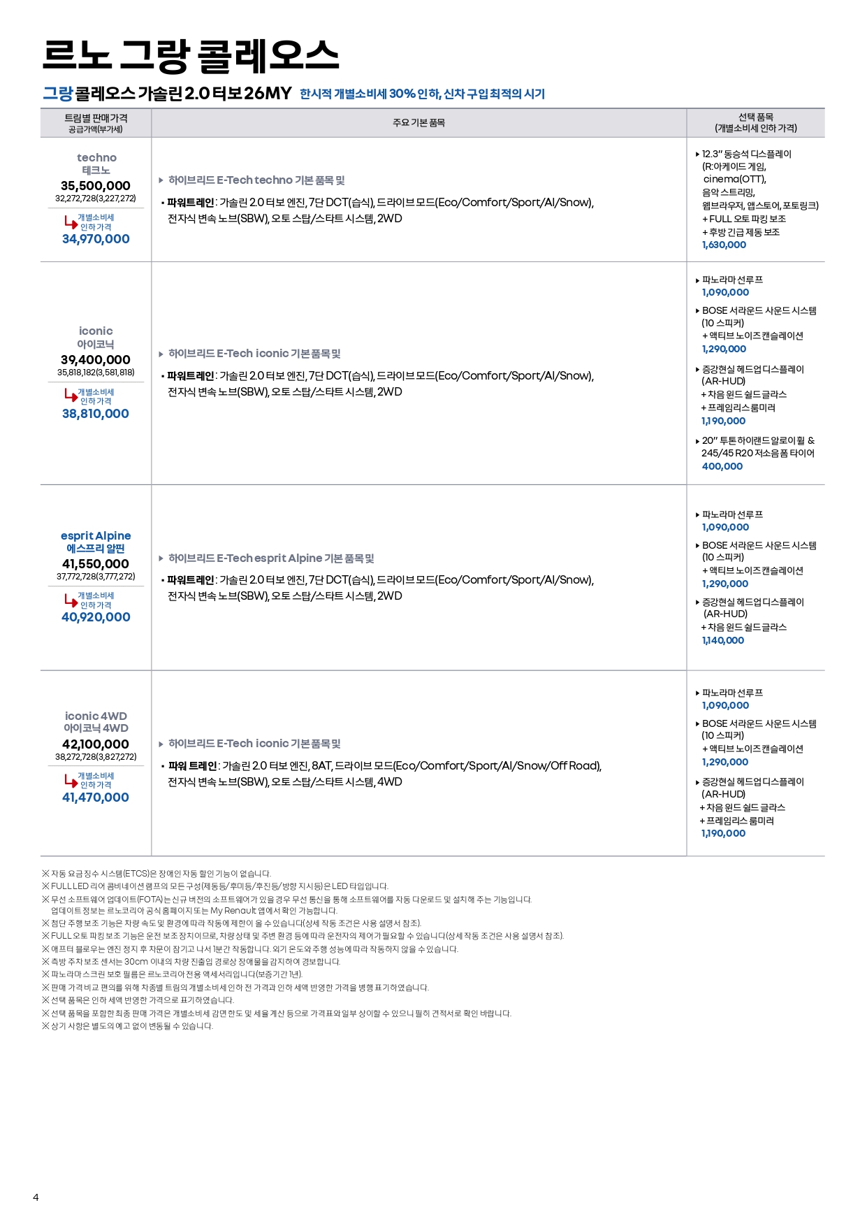 2026 그랑 콜레오스 아이코닉 4WD : 4,147