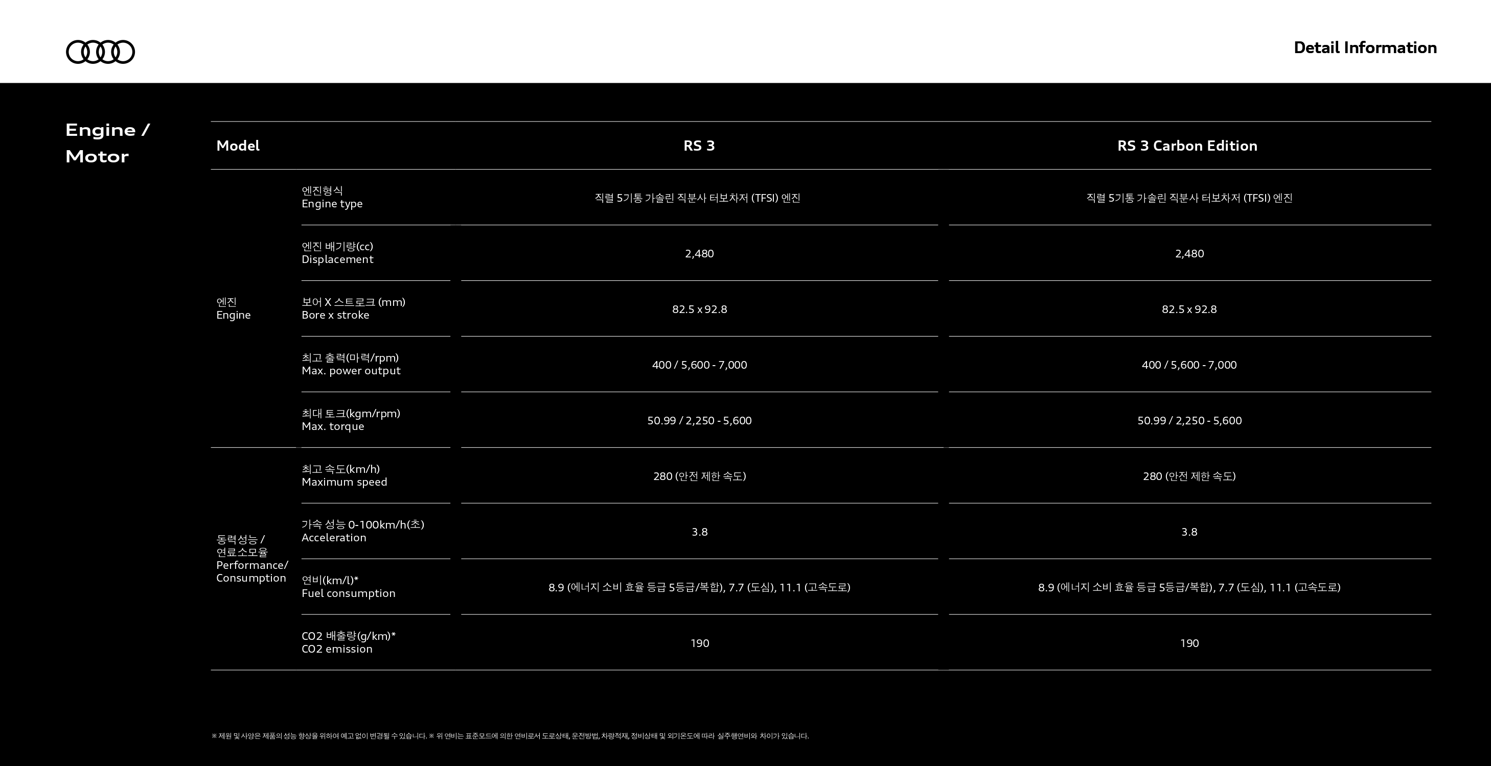 아우디와 함께 마지막으로 직렬 5기통을 사용하던 볼보가 5기통 엔진을 단종 시키면서, 이제는 아우디 RS3만이 유일하게 남았고, 현행 RS3를 마지막으로, 이 5기통 엔진도 단종 예정입니다.