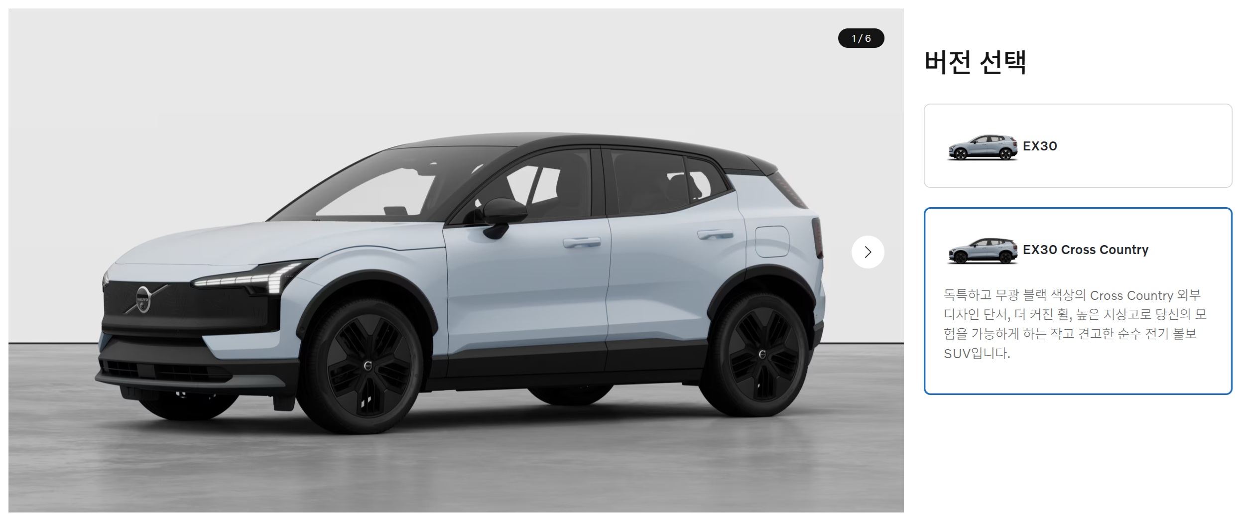 참고로, 국내 볼보 홈페이지에서 EX30 크로스 컨트리를 검색해 보시고 싶으신 분들은, EX30 카테고리 안으로 들어가시면 크로스 컨트리가 나옵니다.
