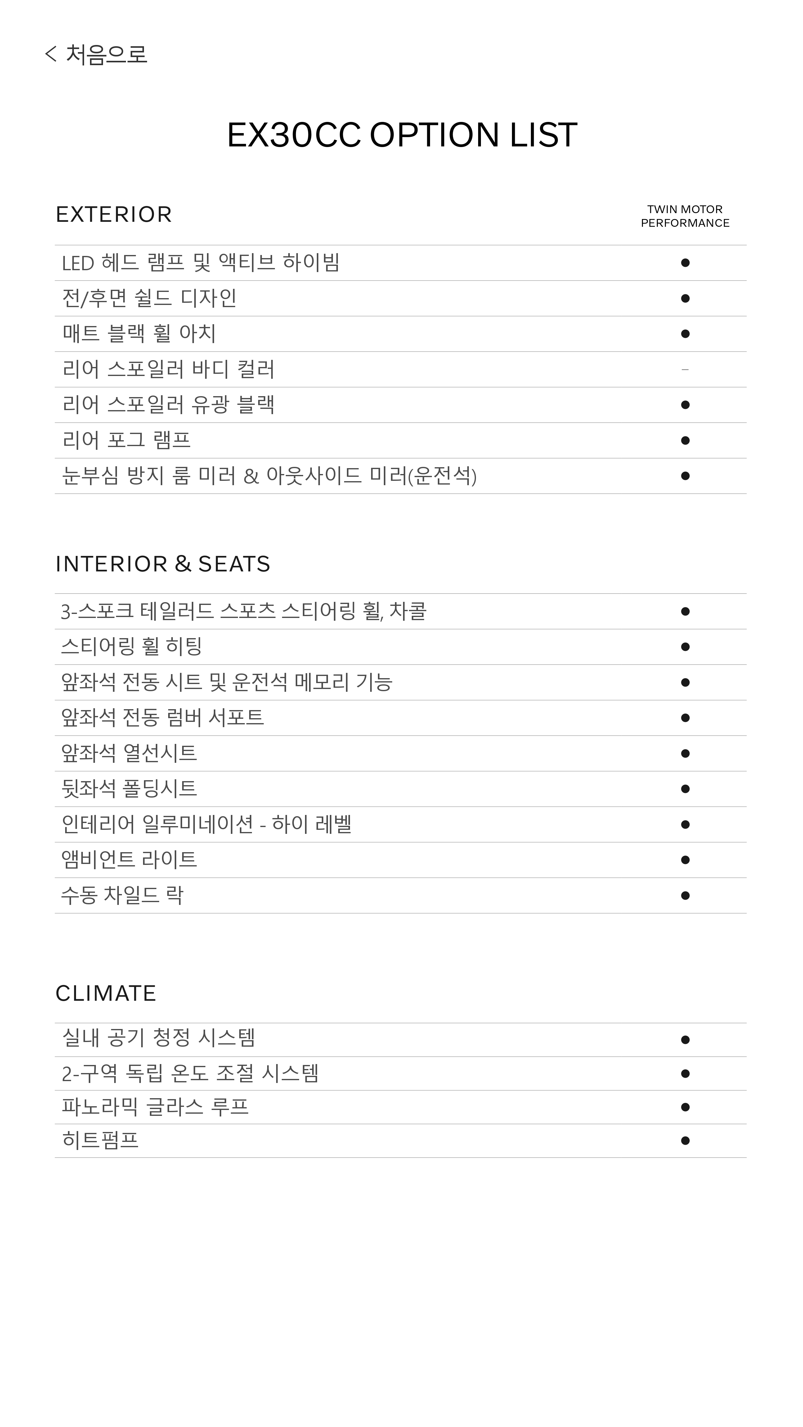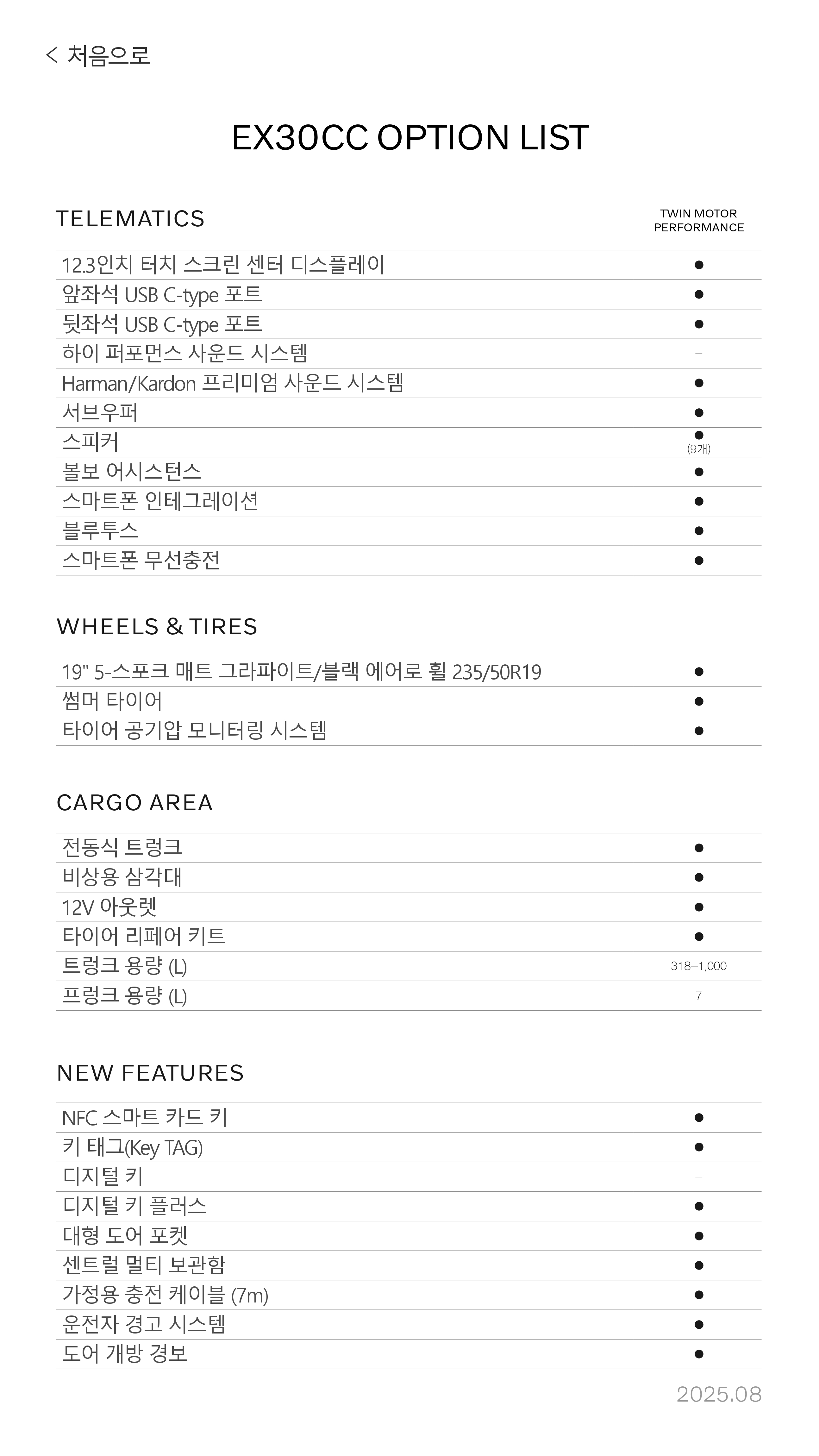 ▼ 2026 EX30 크로스 컨트리 옵션표 ▼