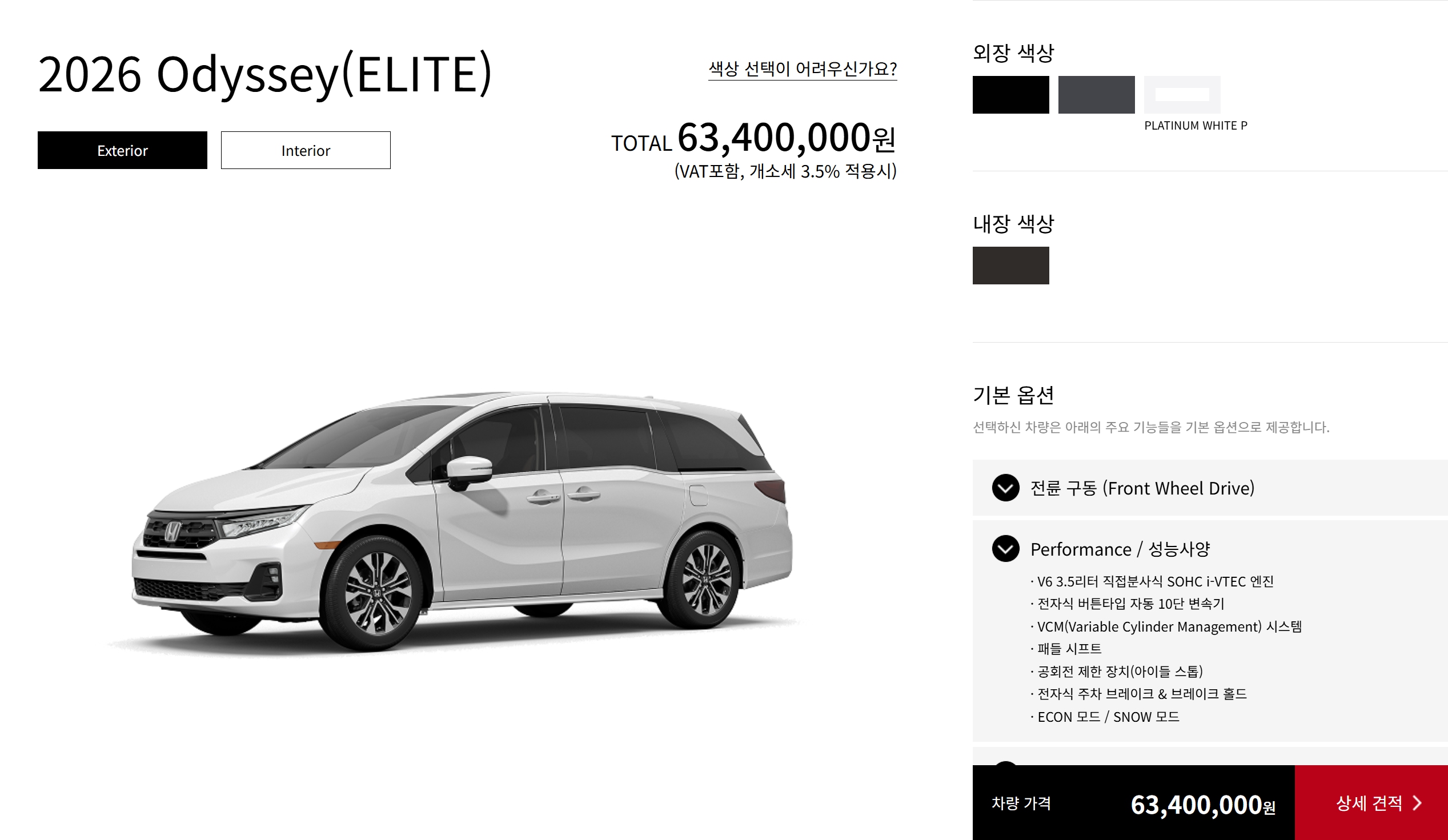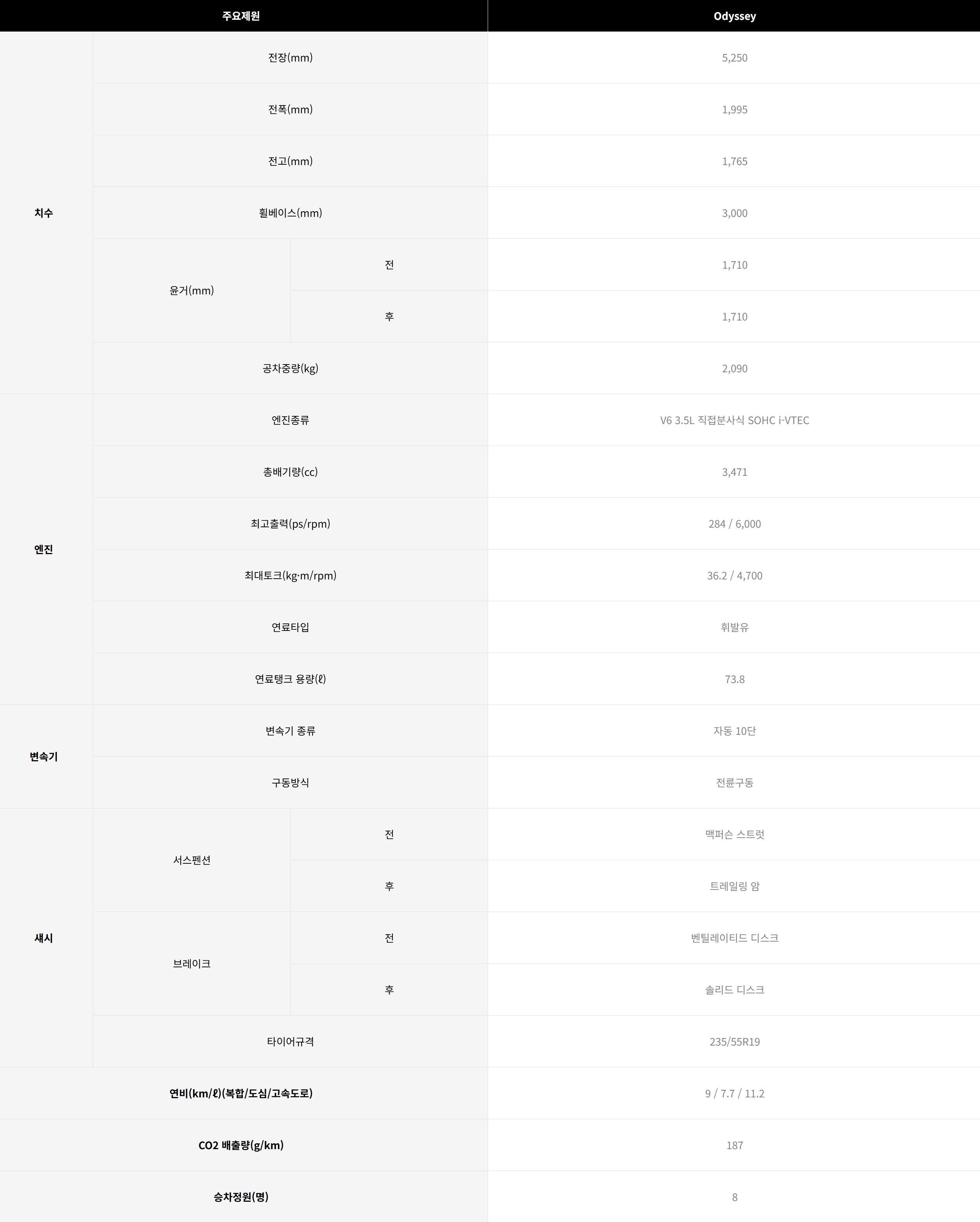 북미 사양조차도 오딧세이는 V6 3.5 자연흡기 엔진 하나만 있습니다.