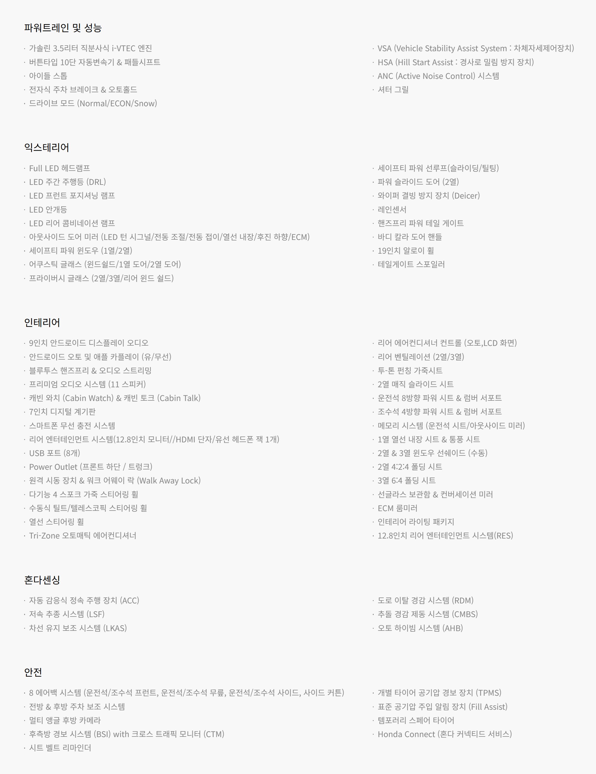 북미 시장의 경우, EX-L, 스포츠, 투어링, 엘리트 등 다양한 사양이 판매되고 있습니다만,