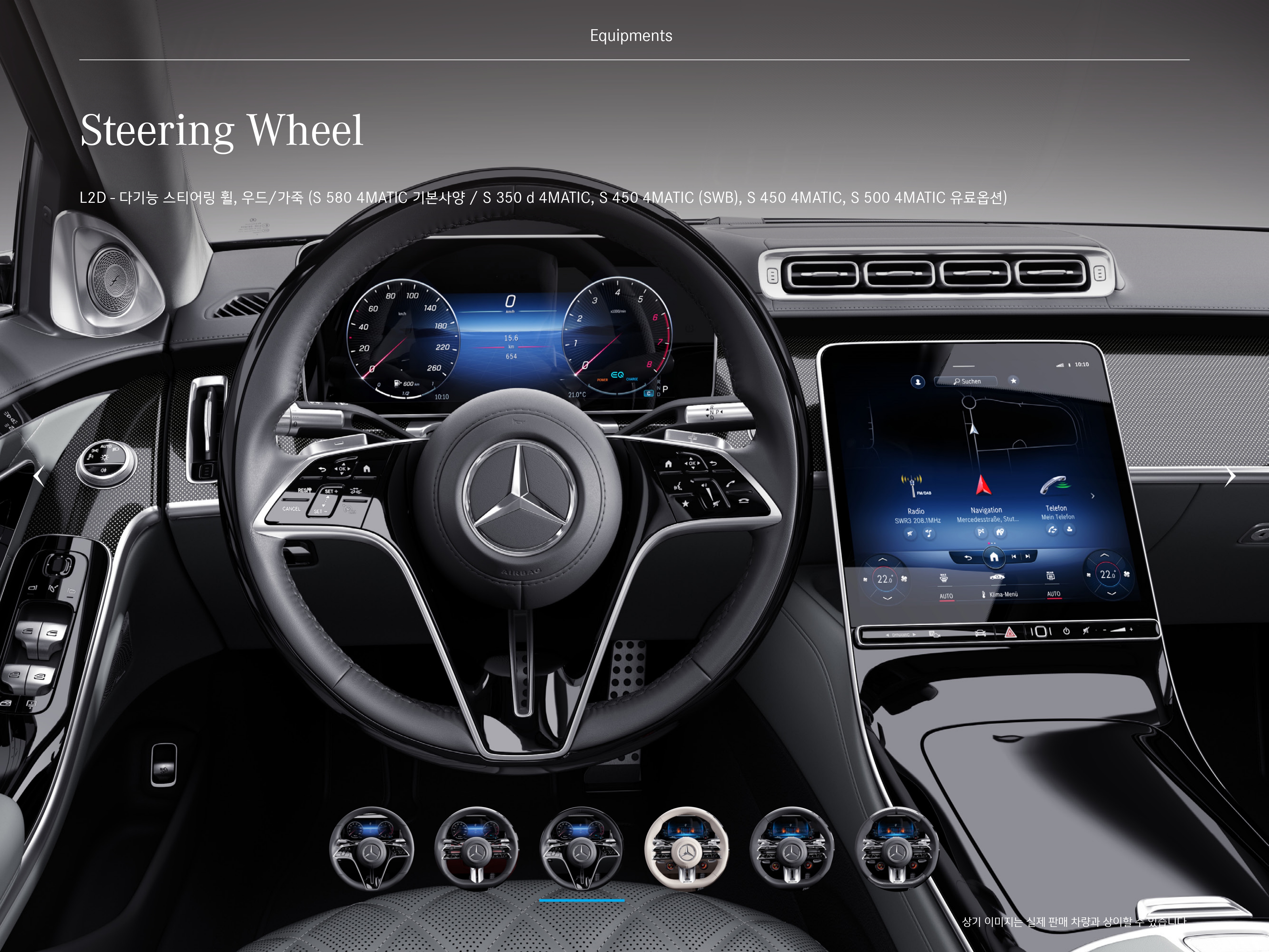 리어 액슬 스티어링휠도 S450에만 들어가고요.