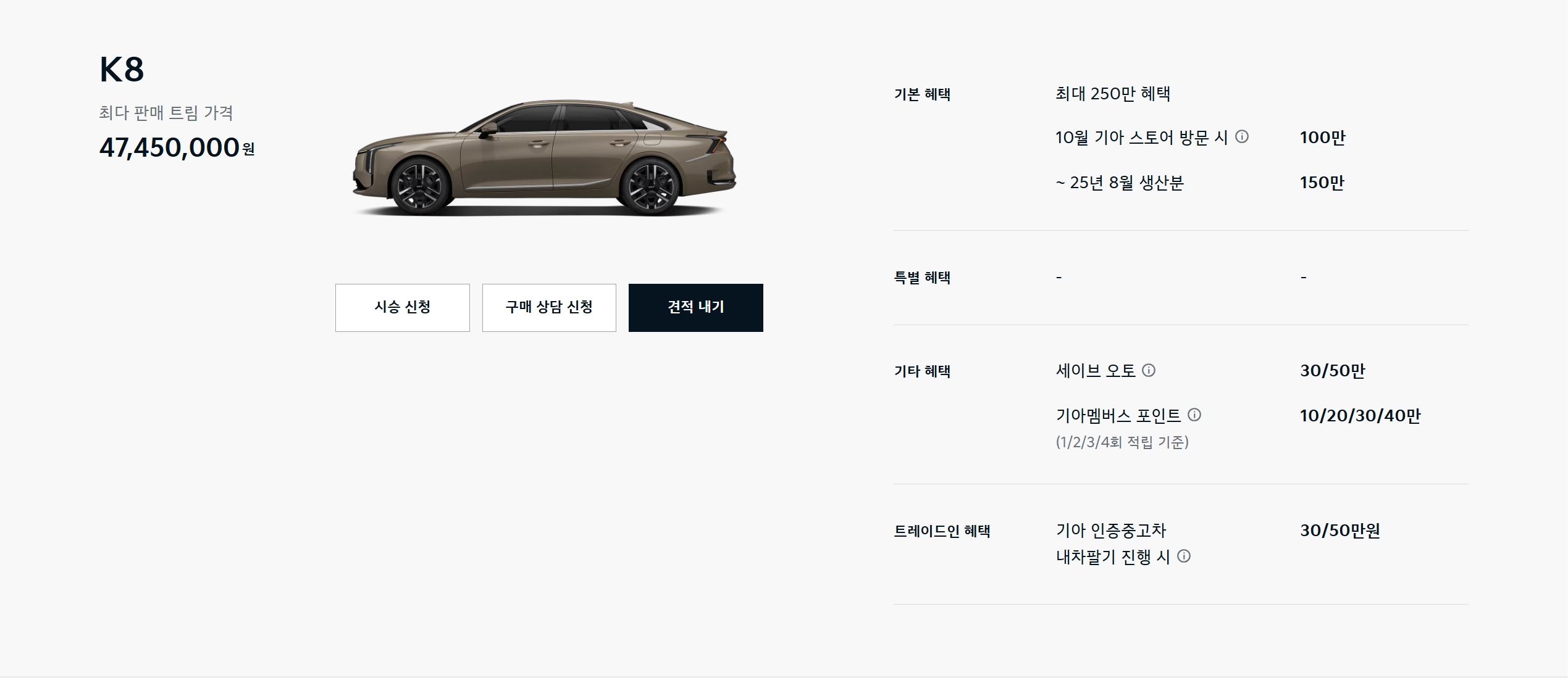 마찬가지로, 경쟁 모델인 그랜저가 이번 달 프로모션이 아예 없는데, 그래서 그런지 K8 더욱 추천드리고 싶네요!