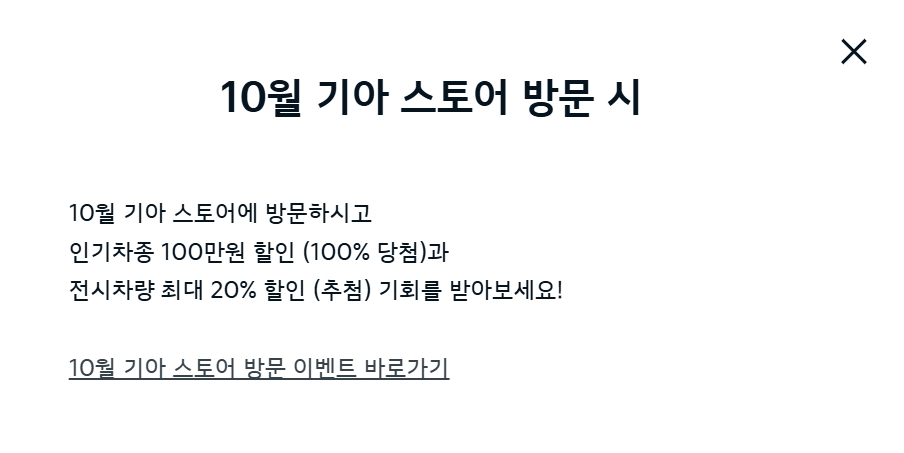기본 혜택에 "10월 기아 스토어 방문 시" 라는 문구를 종종 볼 수 있는데요.
