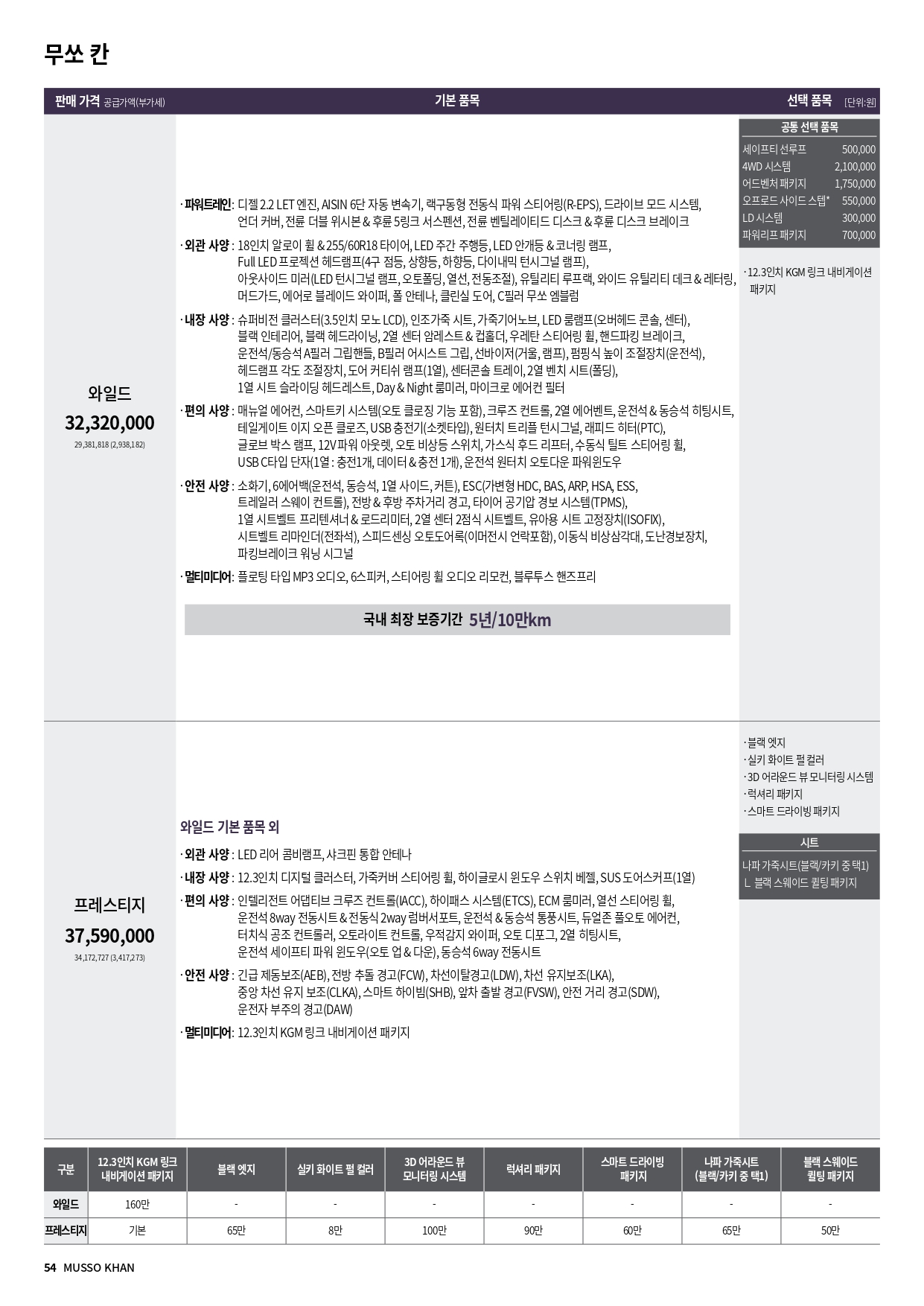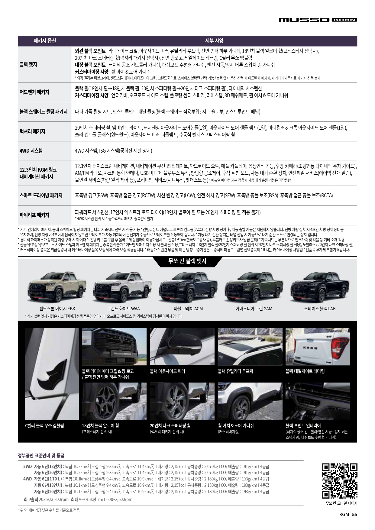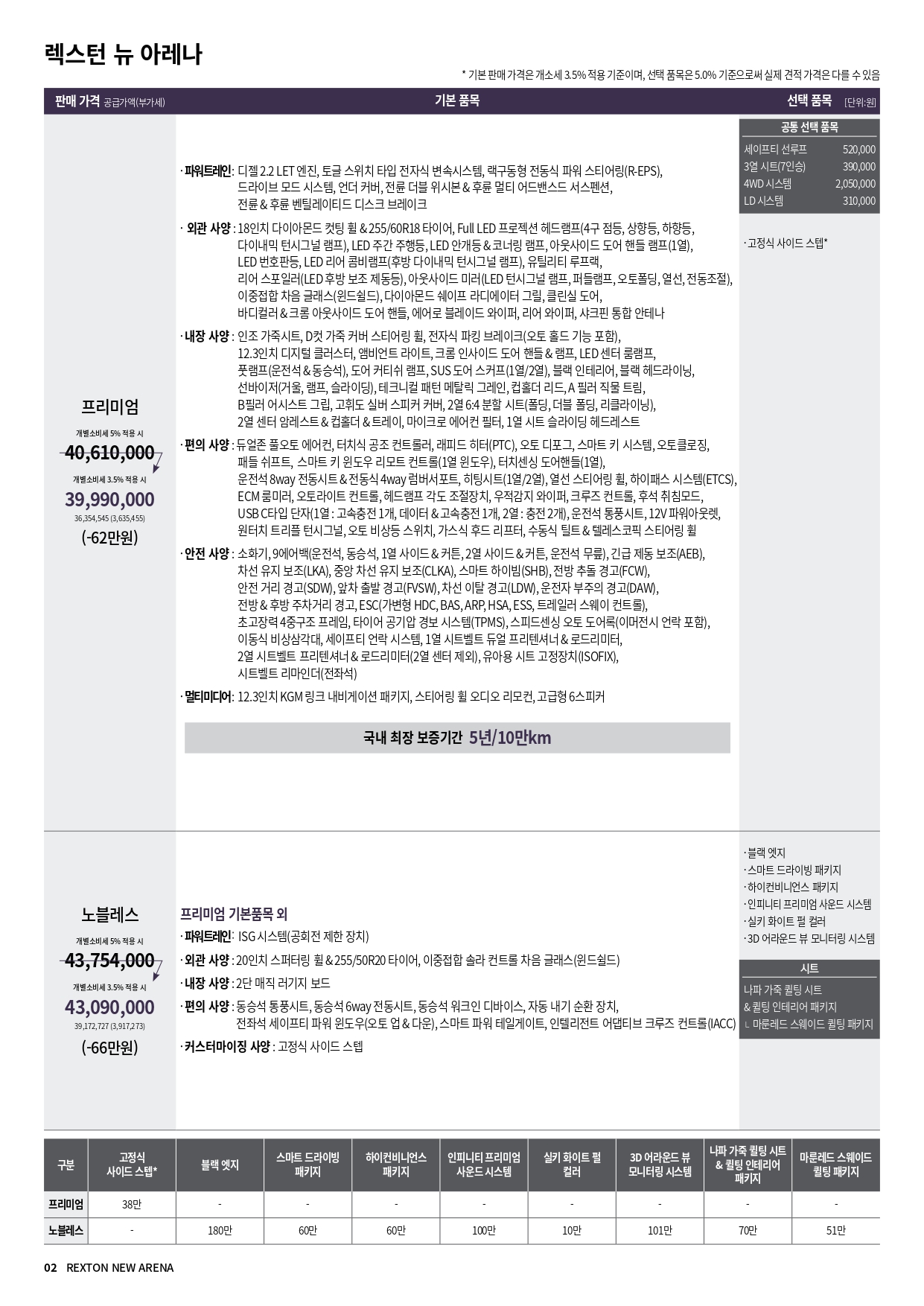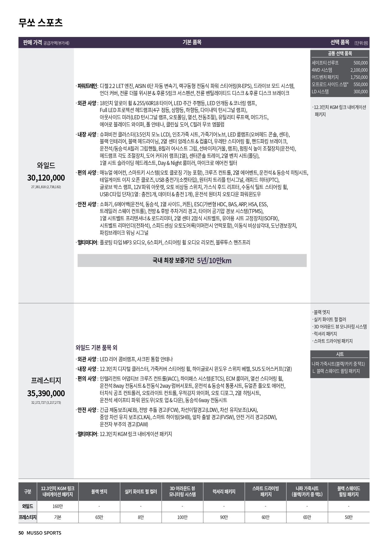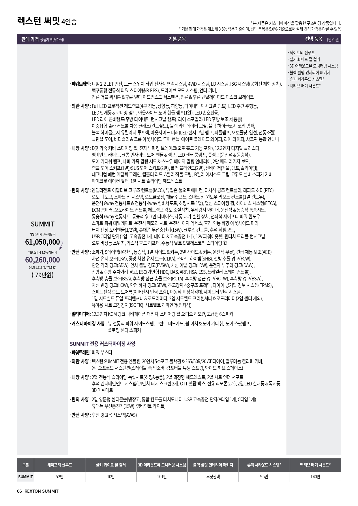 참고로, 4륜 구동 가격은 205만원 입니다.