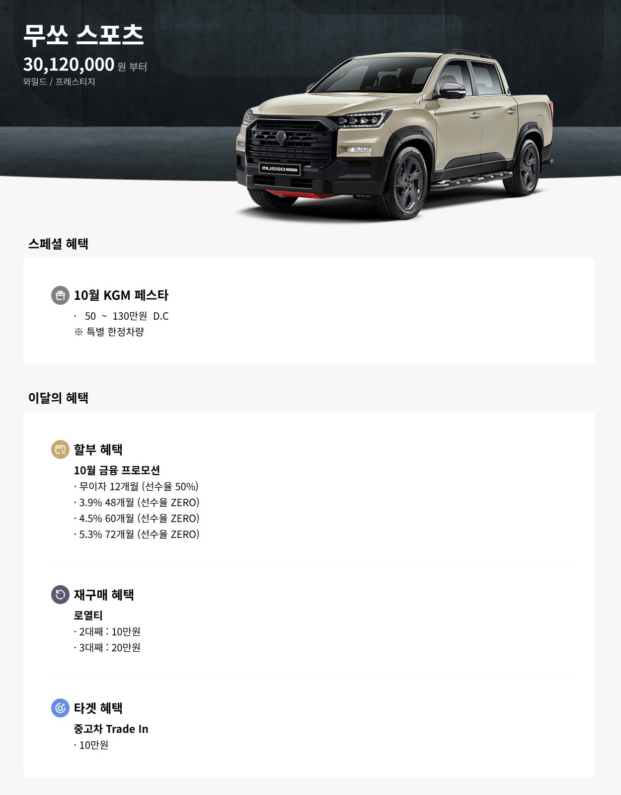 KGM 페스타 50 ~ 130만원 할인 있습니다.